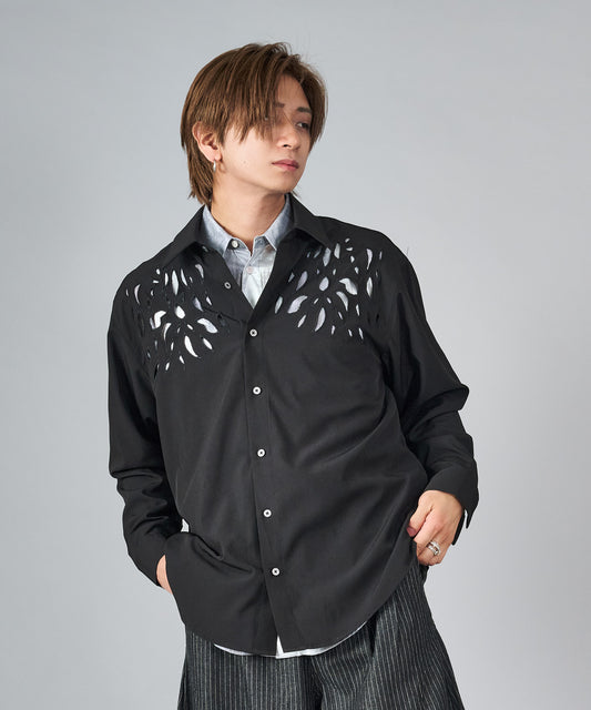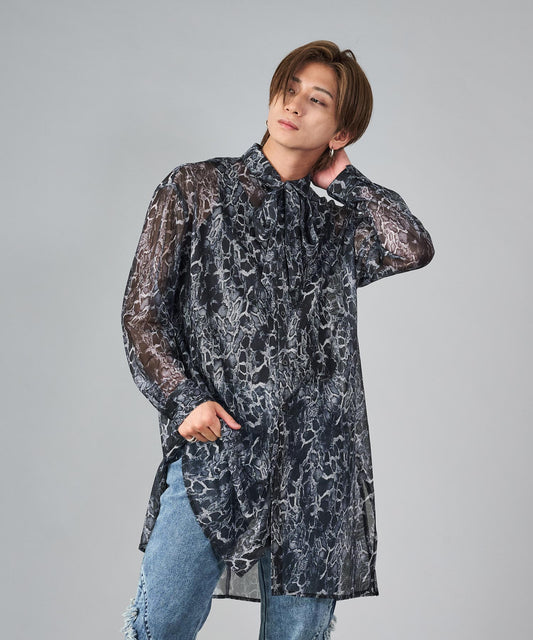 総プリントメッシュロングシャツ