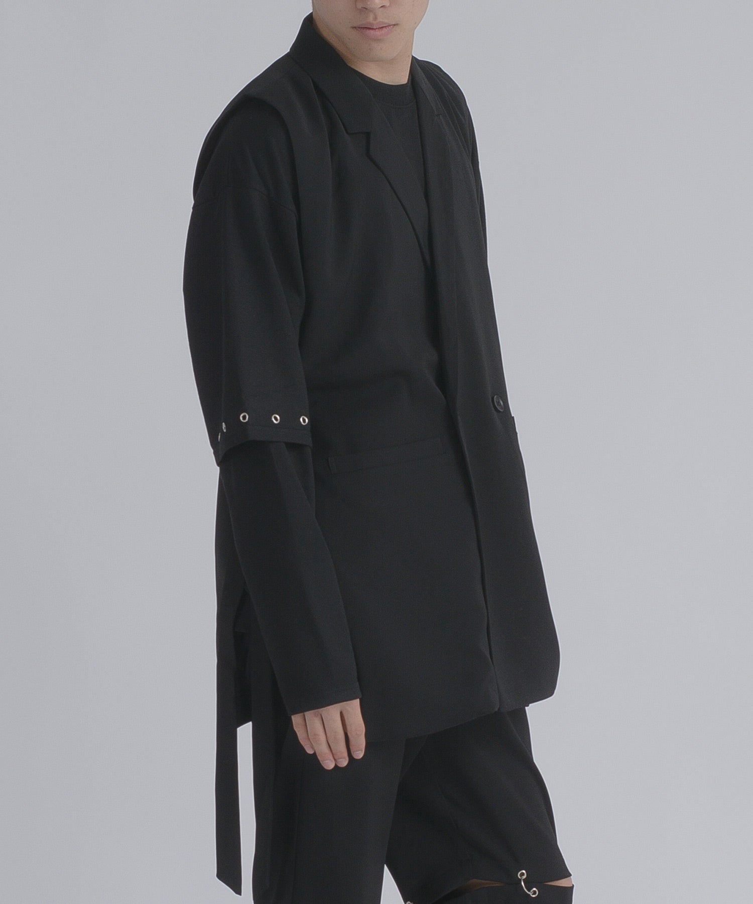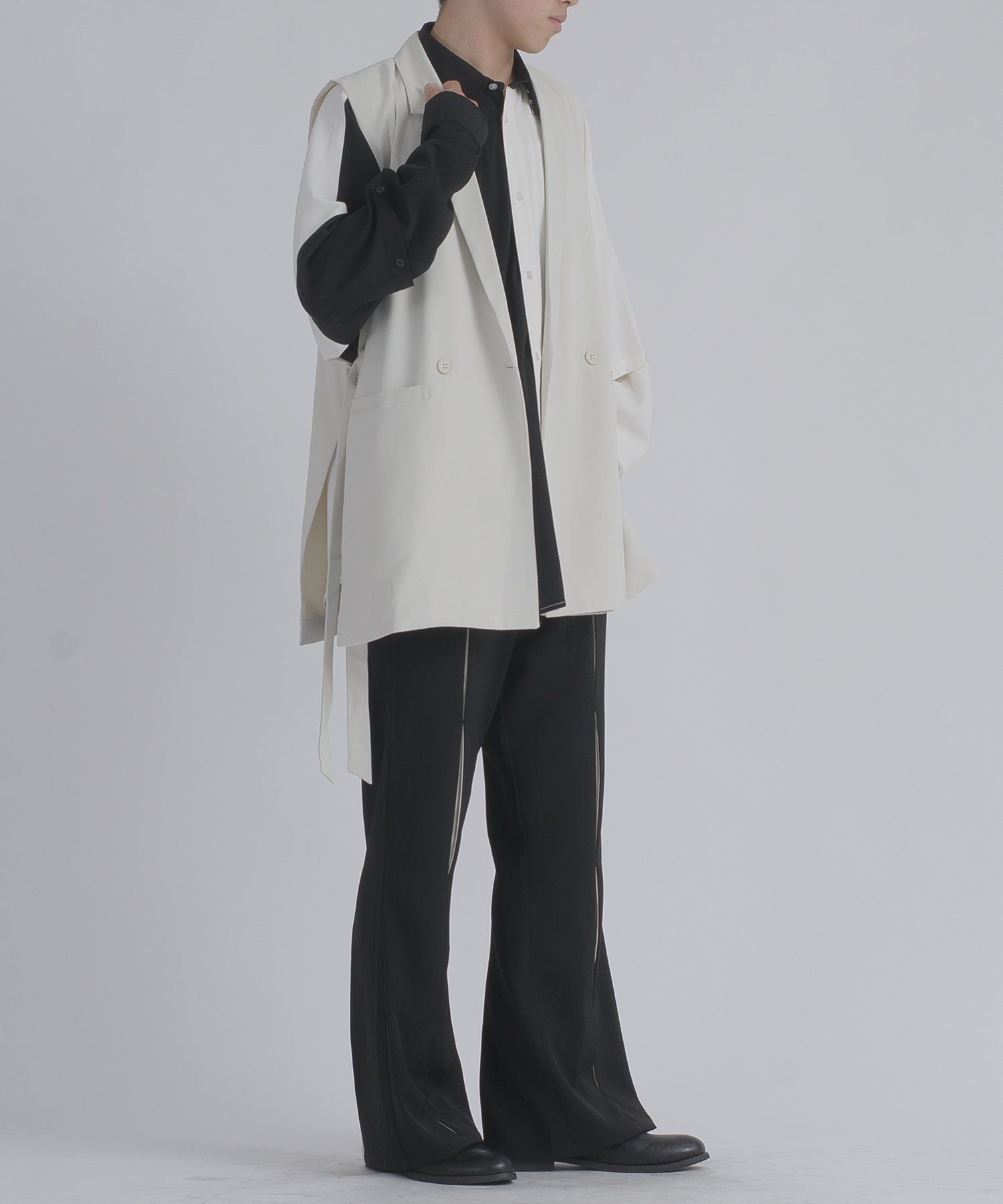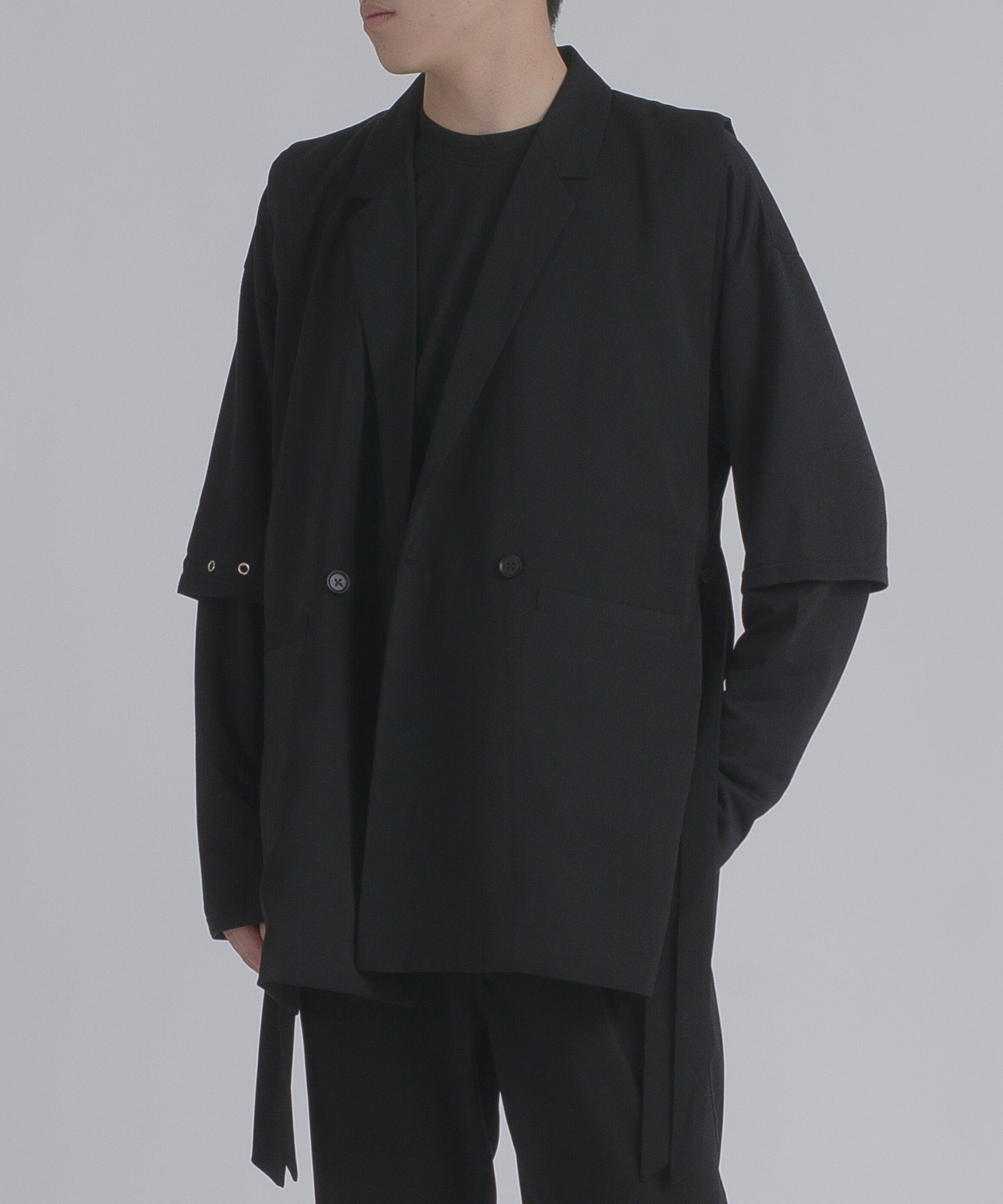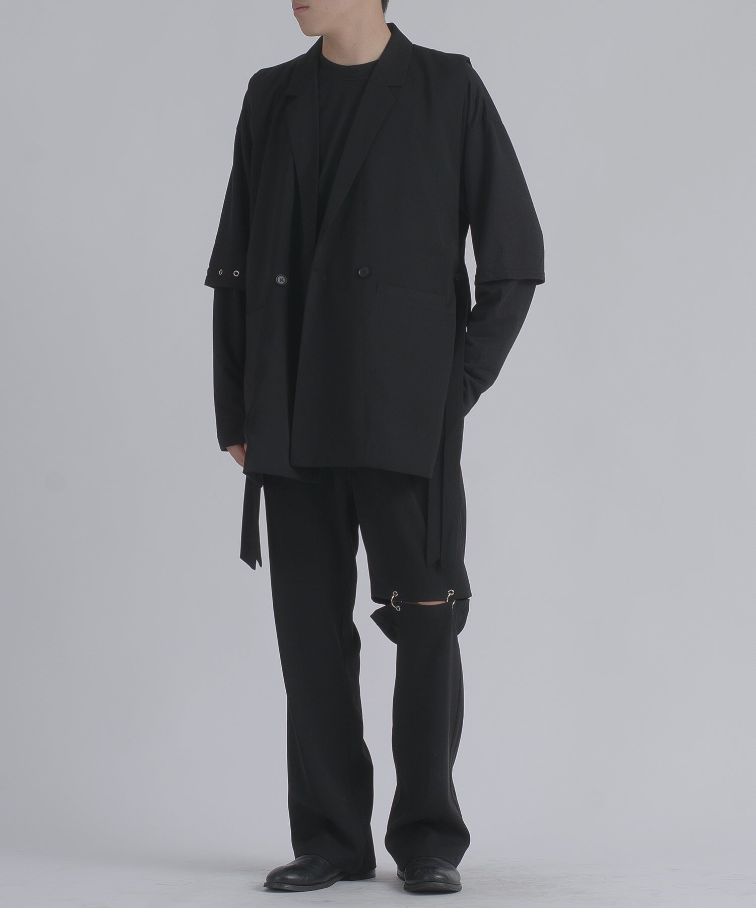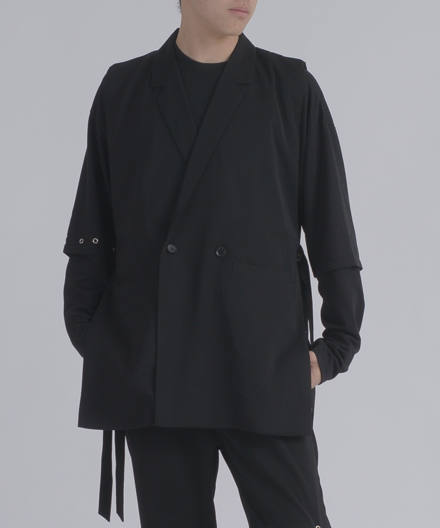 そして、その長い着丈とダブルフロントが、ジャケット的な雰囲気をより感じさせるデザインです。