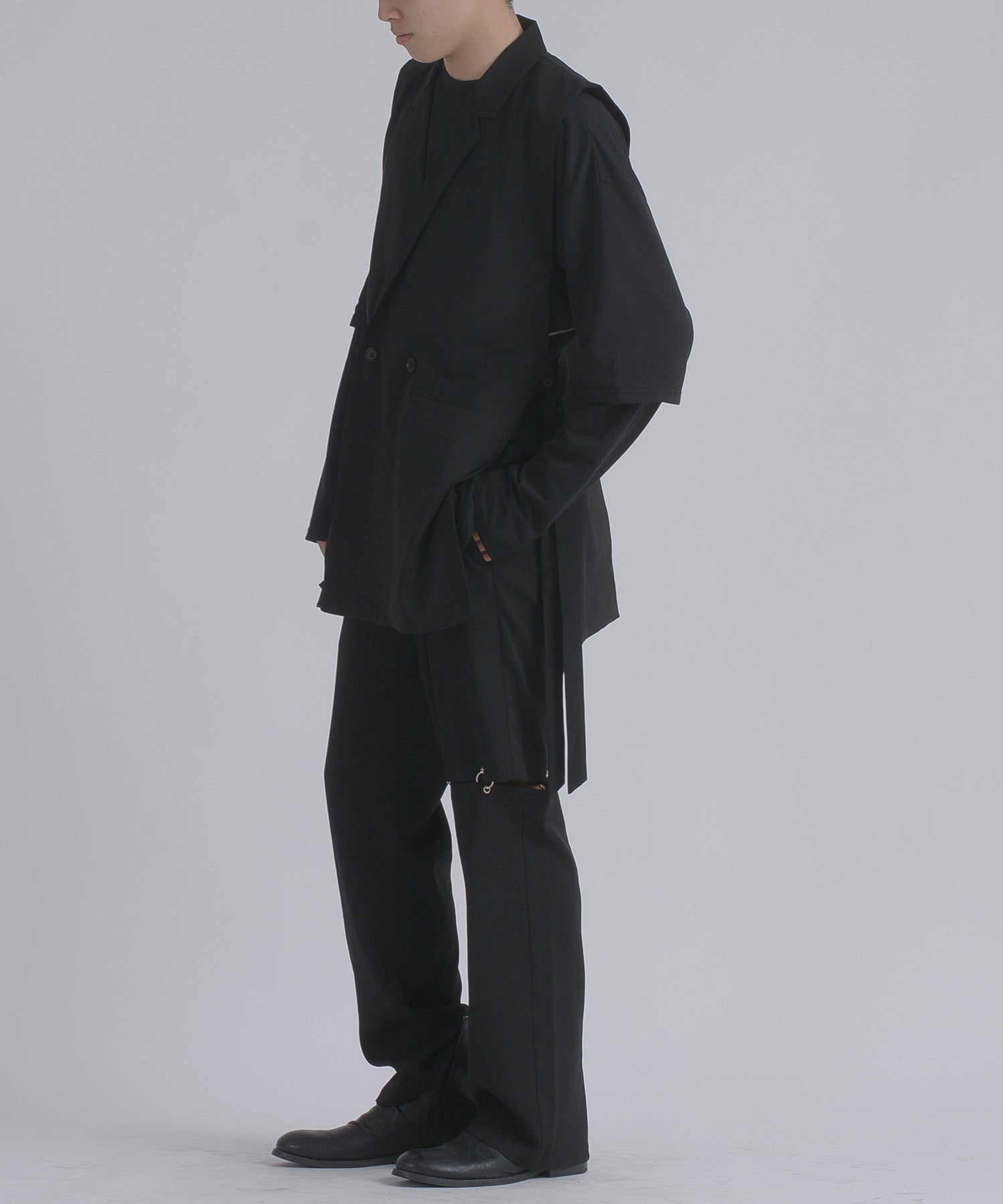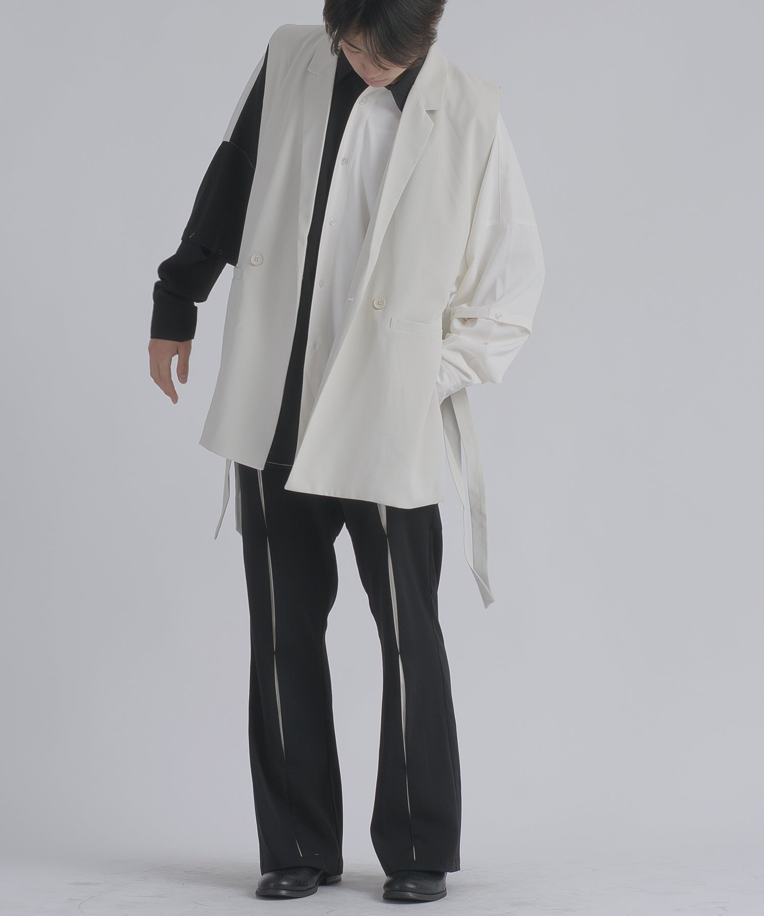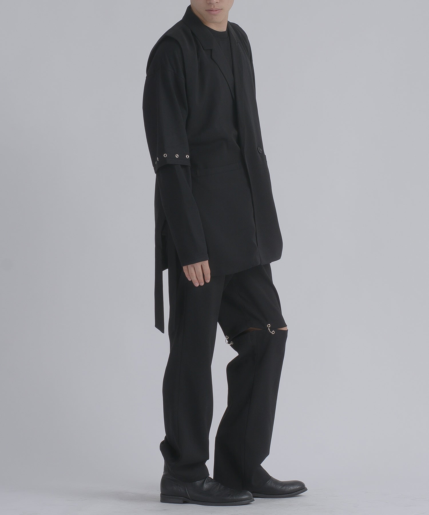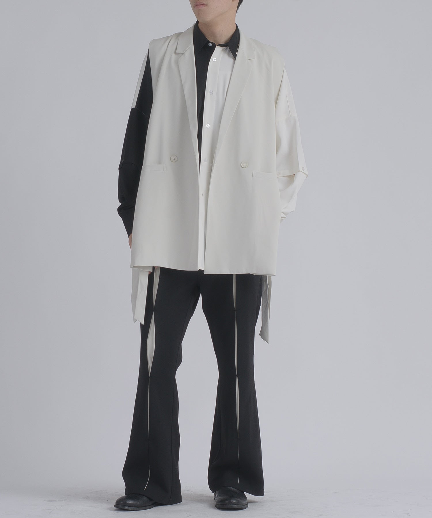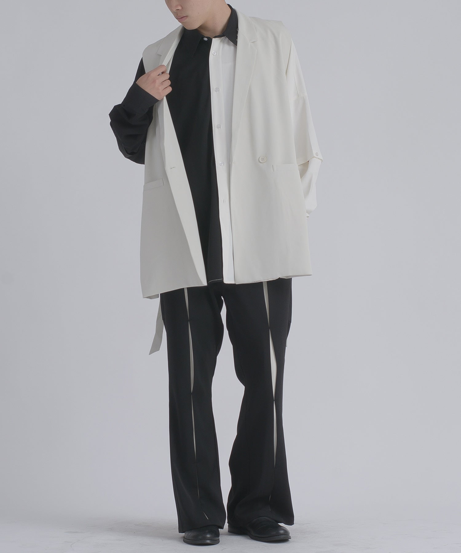 そして、その長い着丈とダブルフロントが、ジャケット的な雰囲気をより感じさせるデザインです。