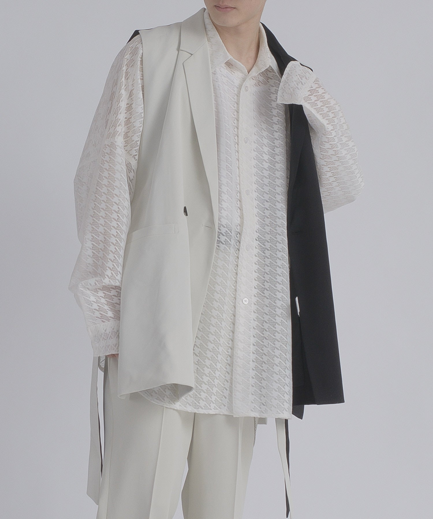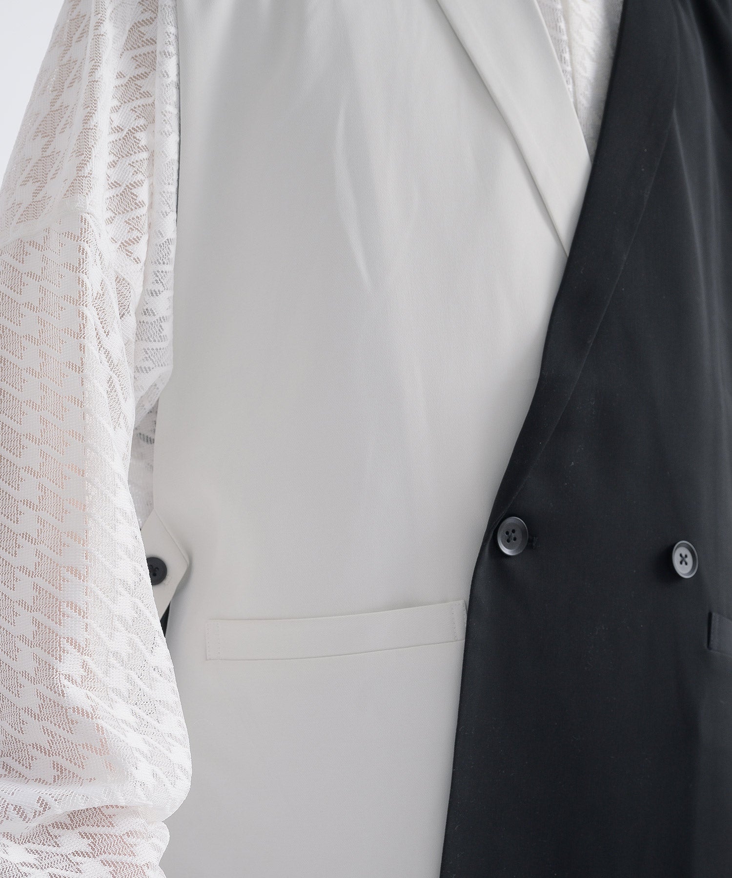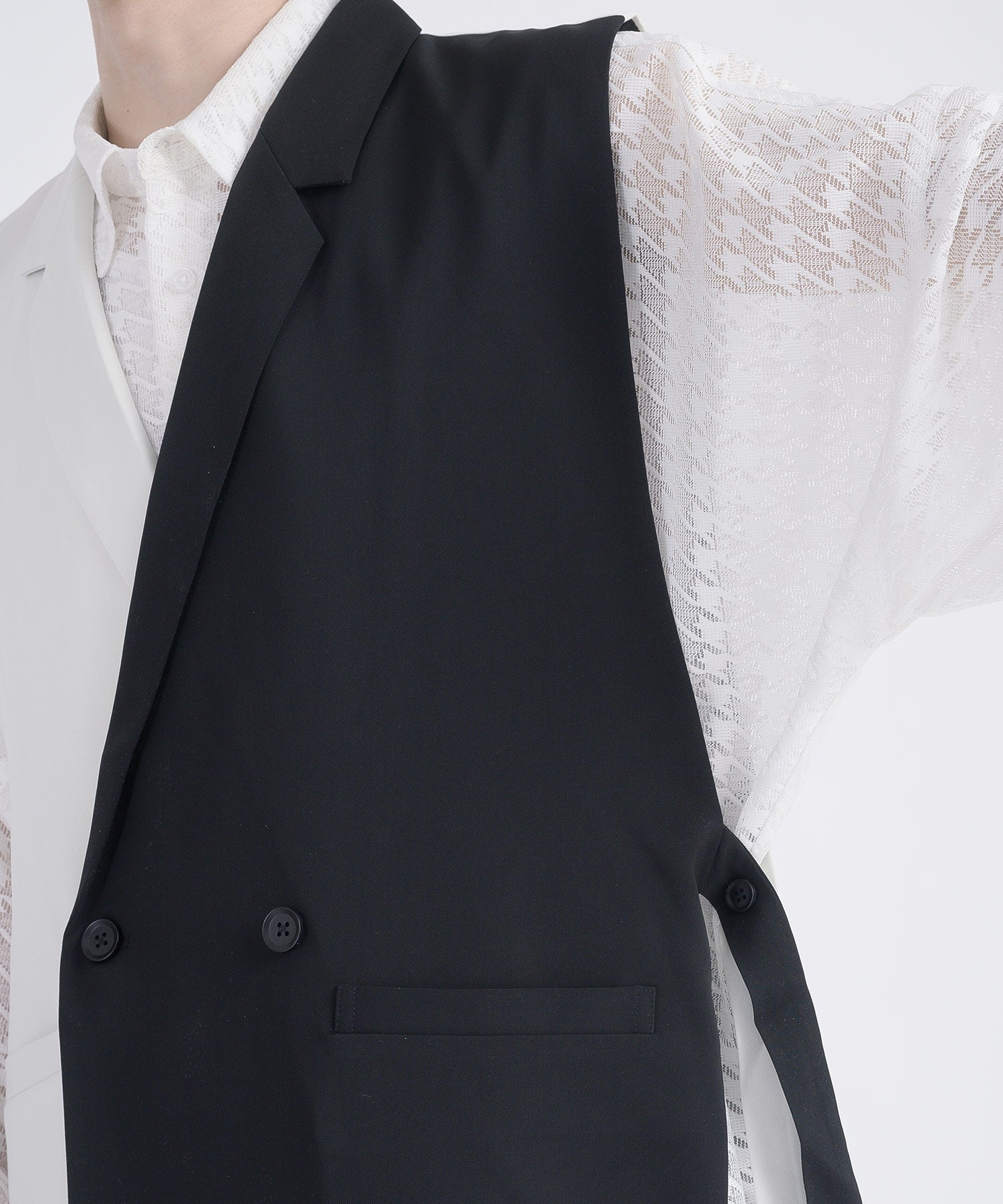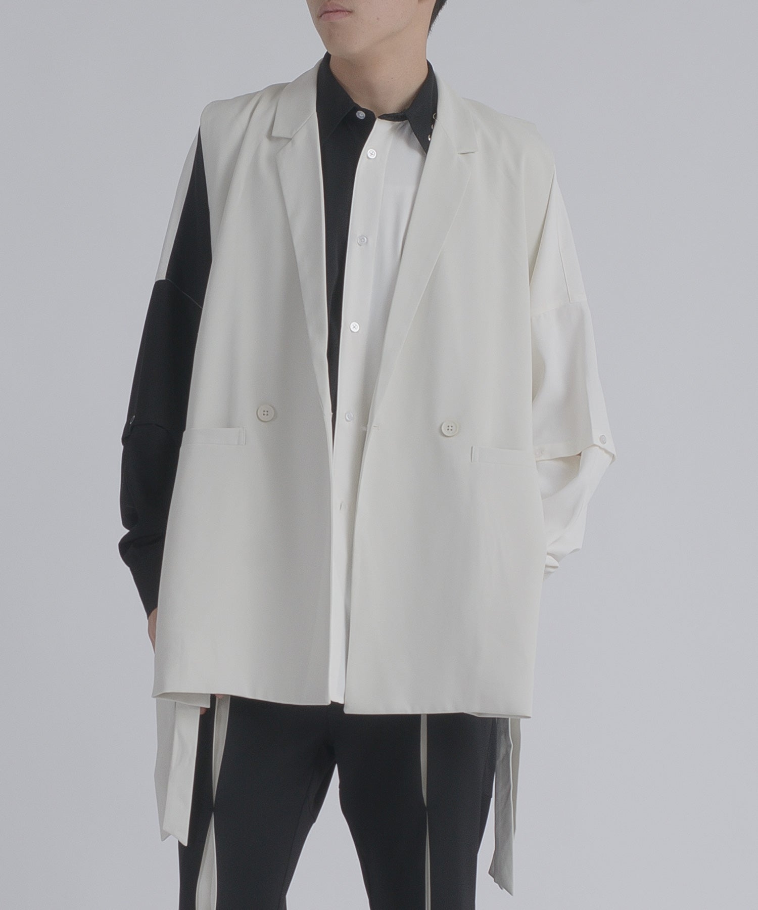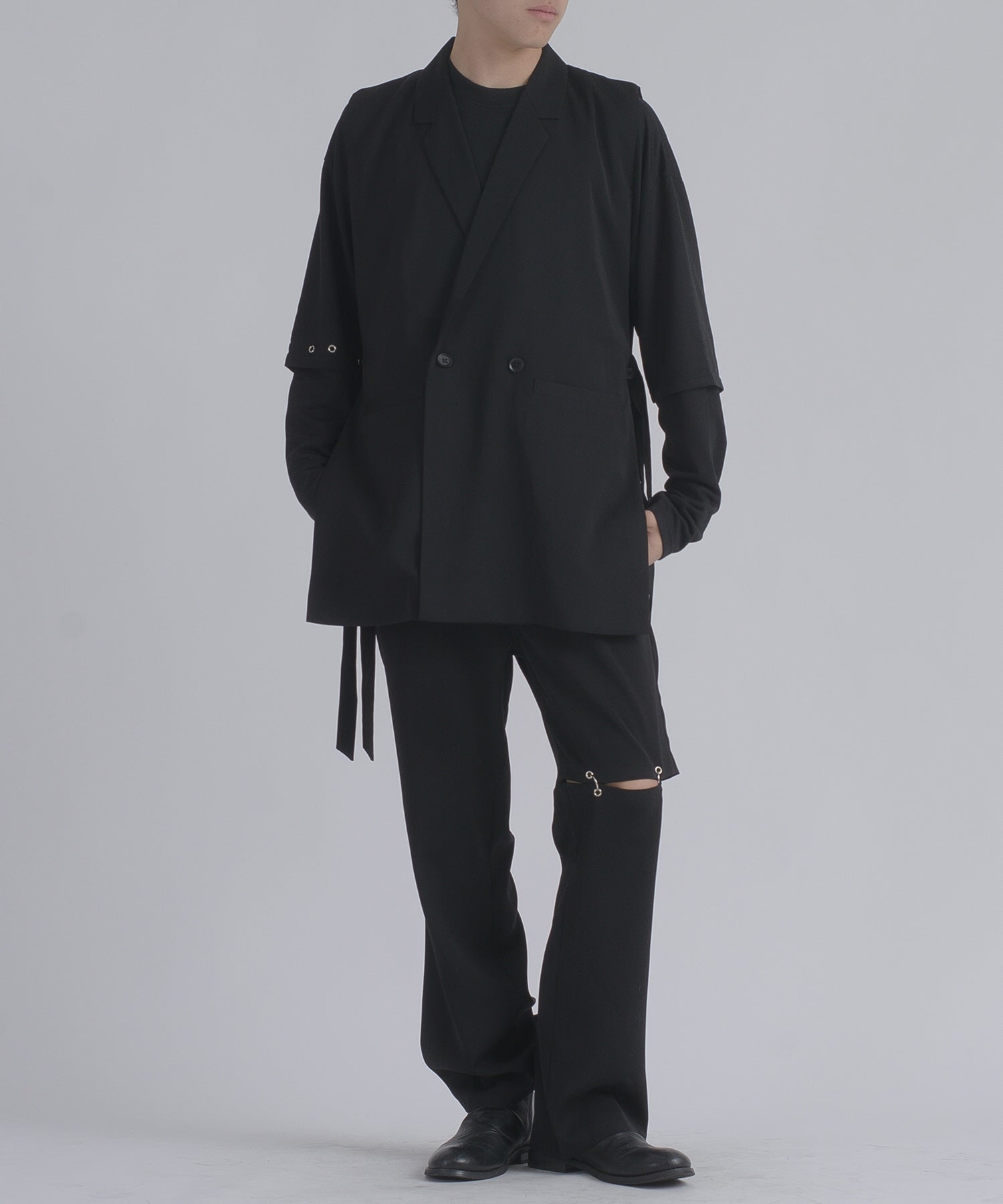 そして、その長い着丈とダブルフロントが、ジャケット的な雰囲気をより感じさせるデザインです。