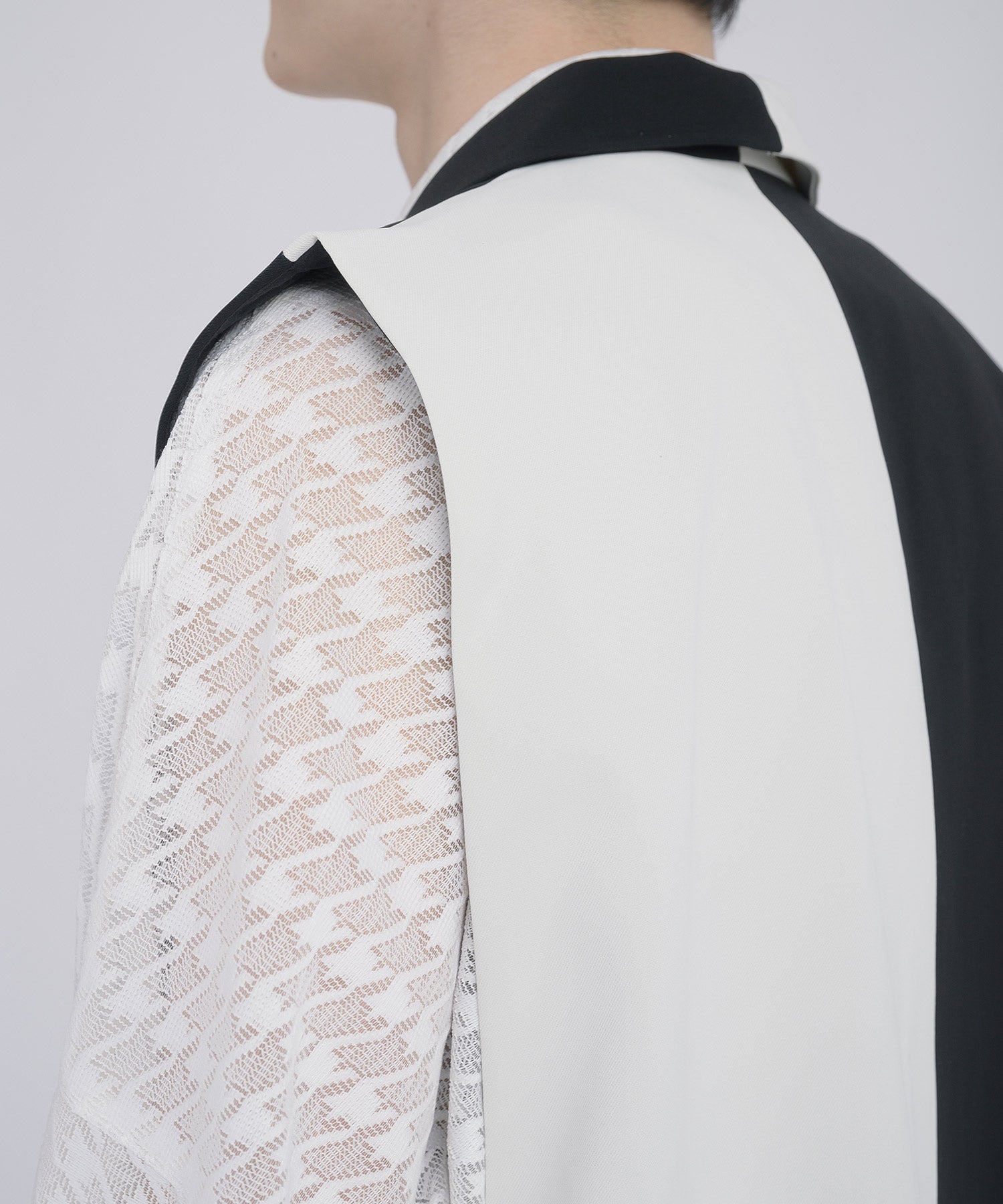大きく開いた腕周りは、近年のオーバーサイズなインナーもスマートに着こなすことができるデザインで、風通しも良いので涼しく着られます。