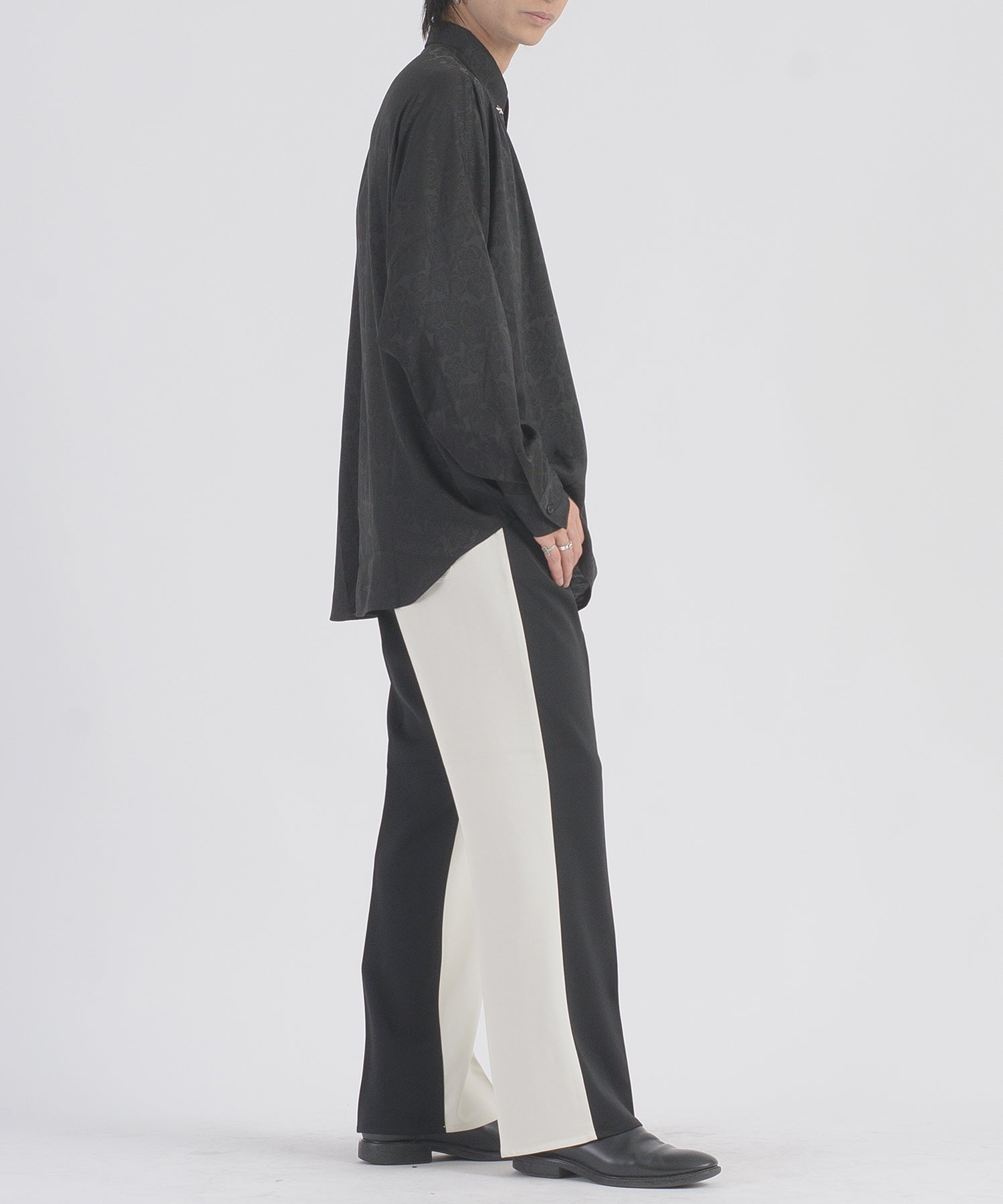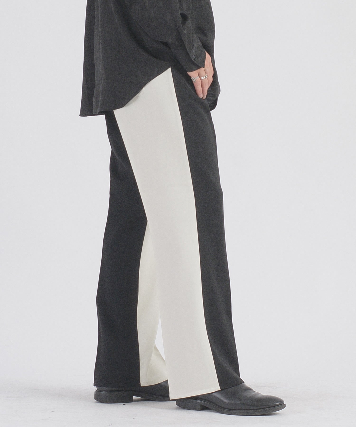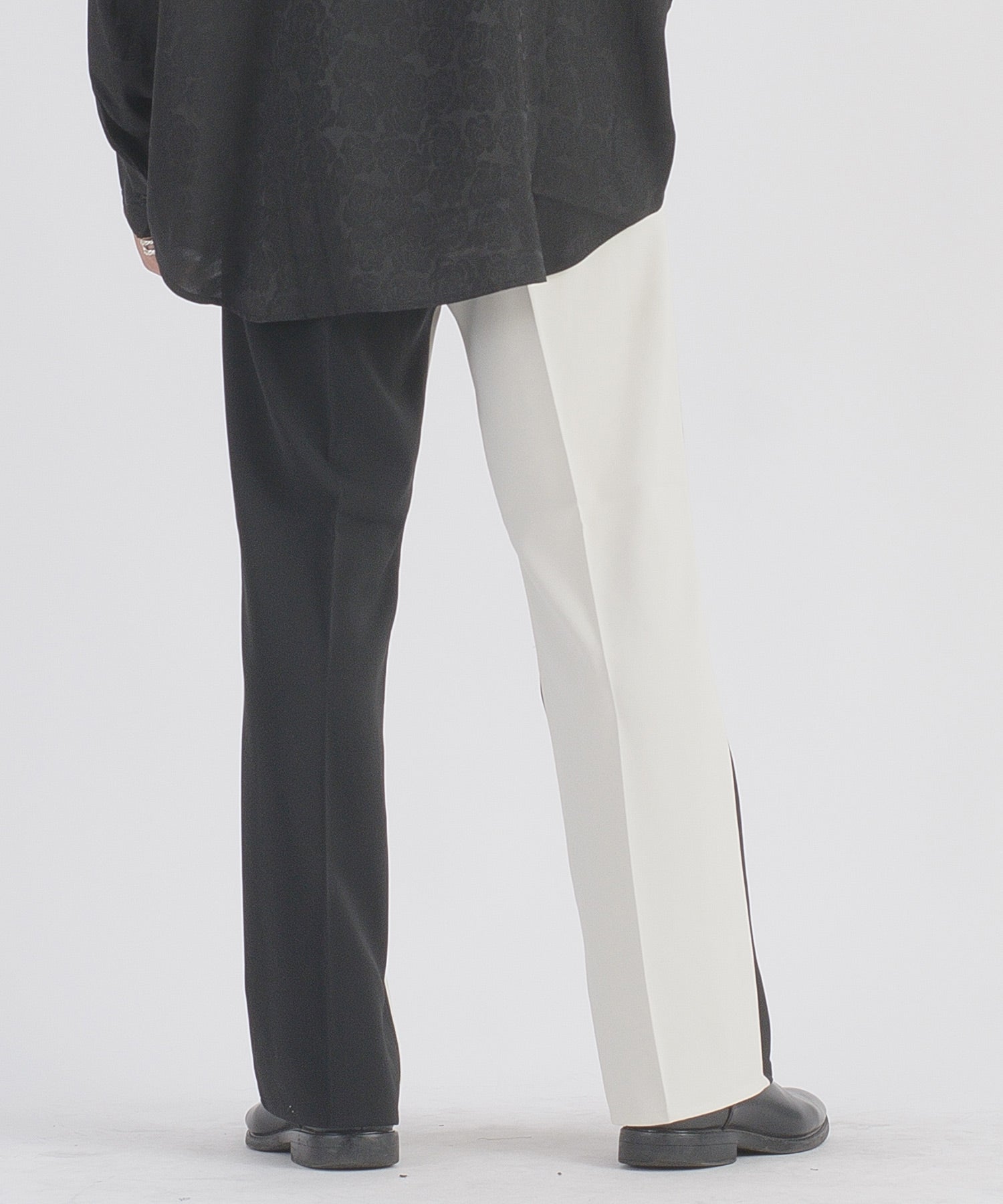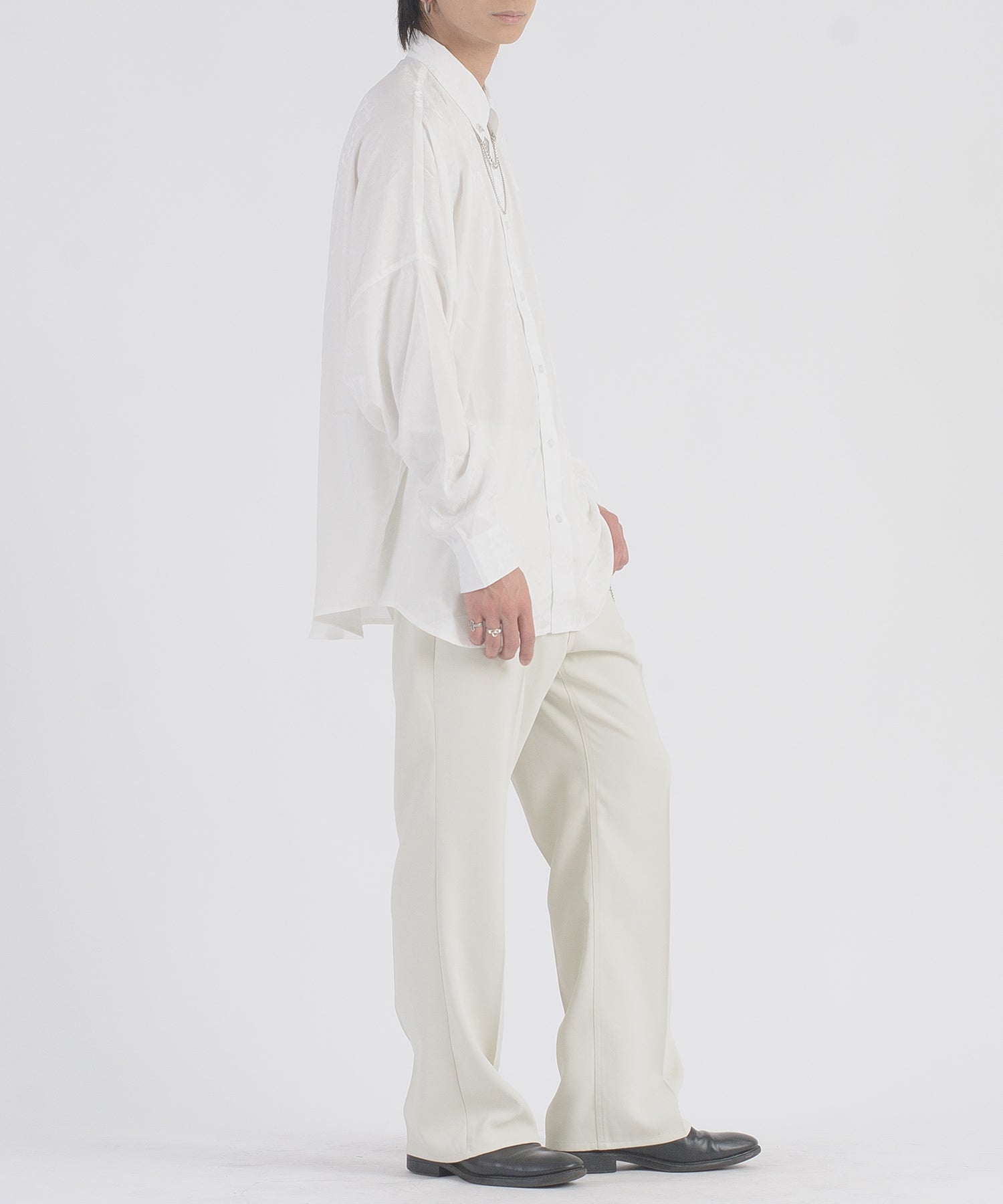 ポリエステル素材を使用し、センタープリーツをつけたスラックス仕様にすることでエレガントな雰囲気を表現できます。