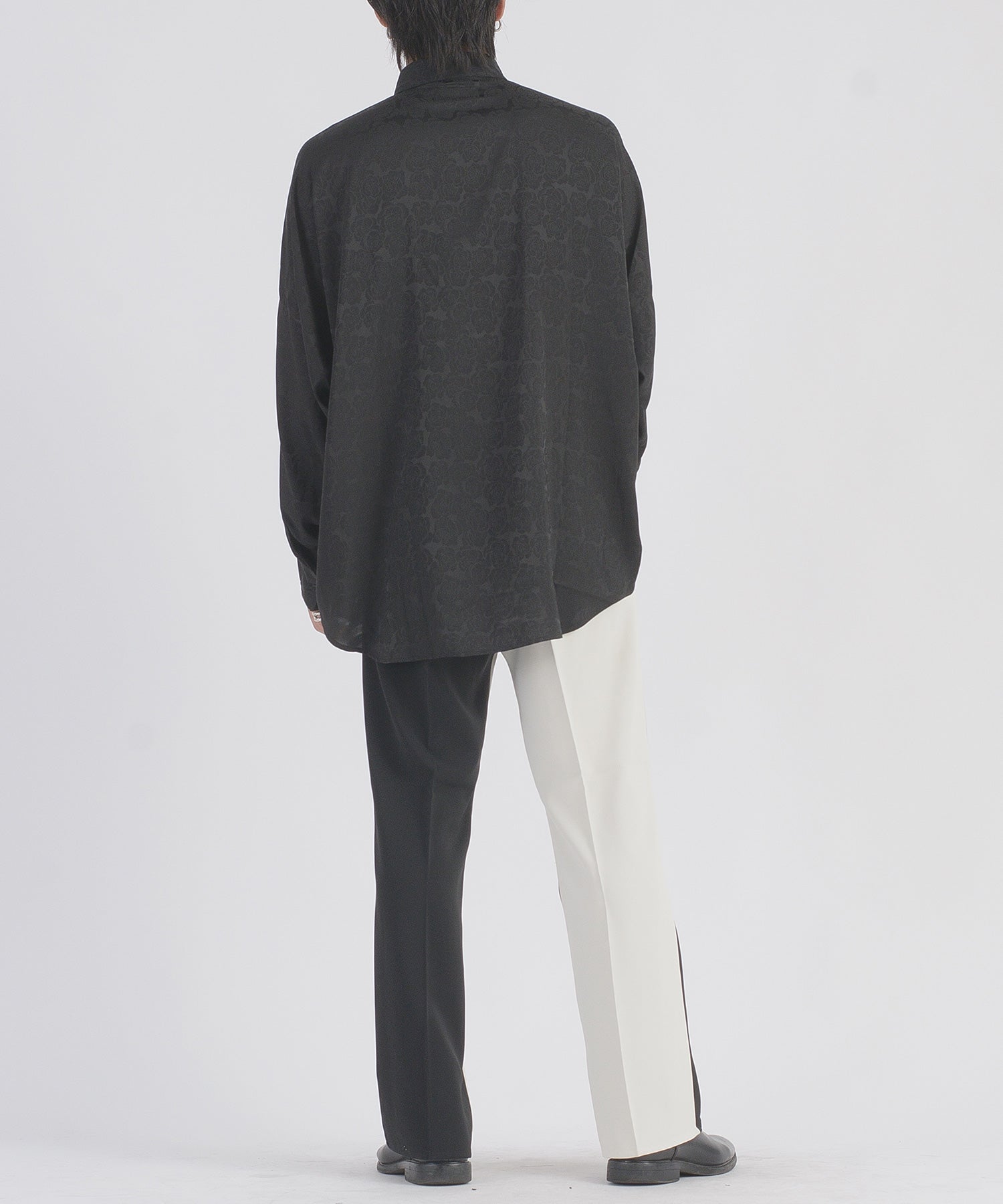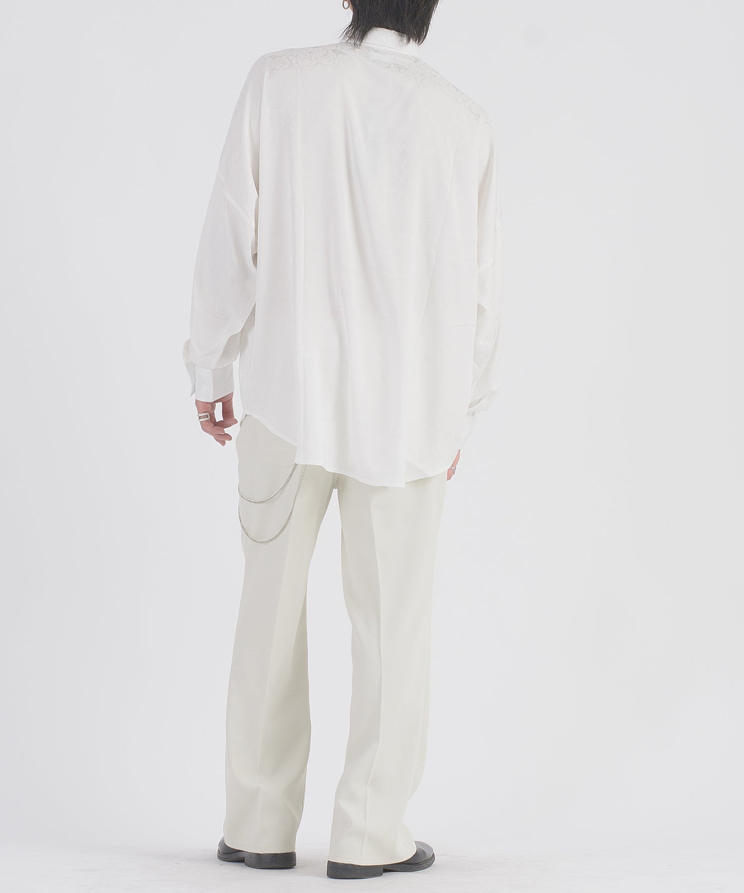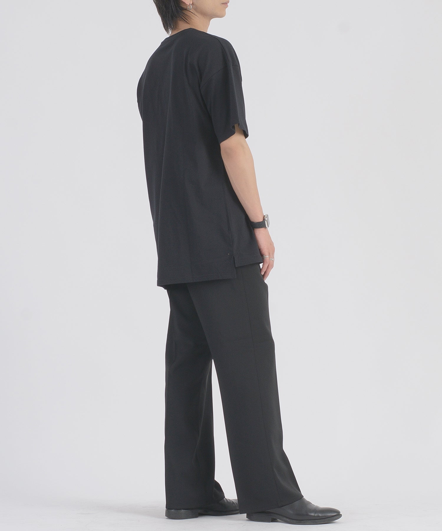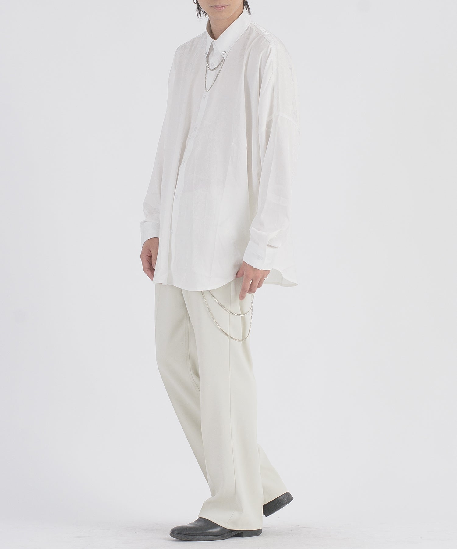 ポリエステル素材を使用し、センタープリーツをつけたスラックス仕様にすることでエレガントな雰囲気を表現できます。