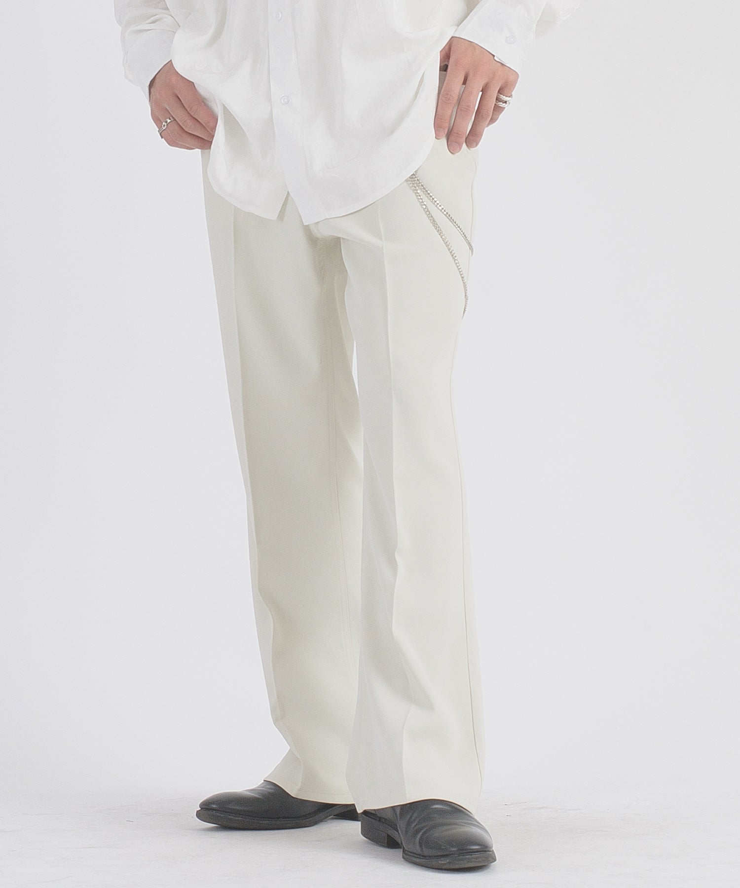また、ウォレットチェーンをイメージするチャームがアクセントとしてコーデを引き立ててくれ、腰回りは5ポケットにすることでカジュアルな着こなしにもマッチします。