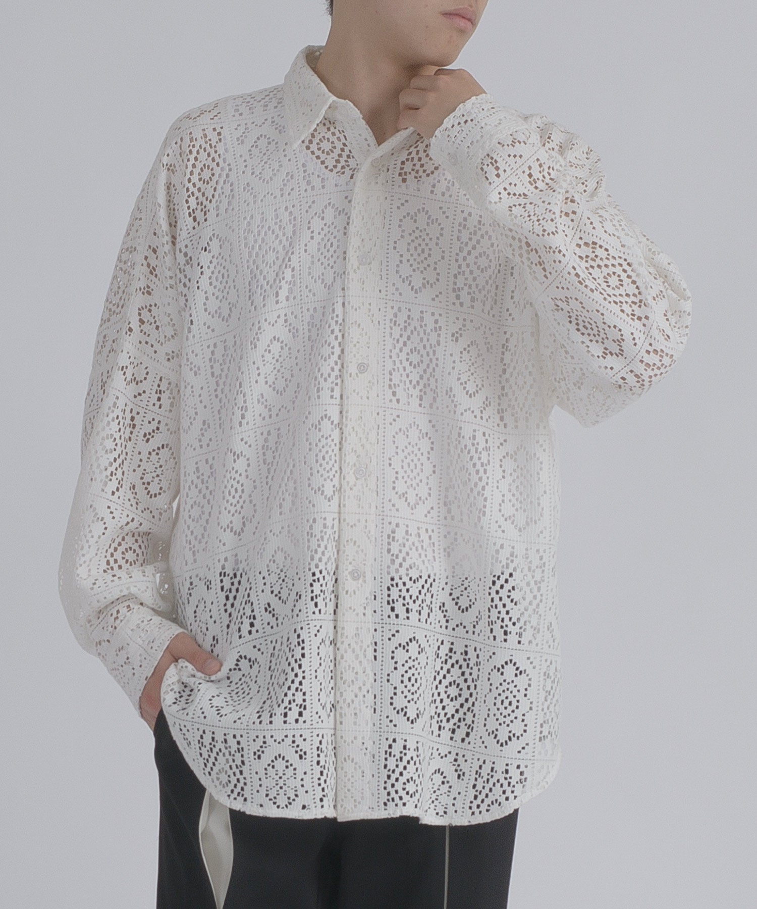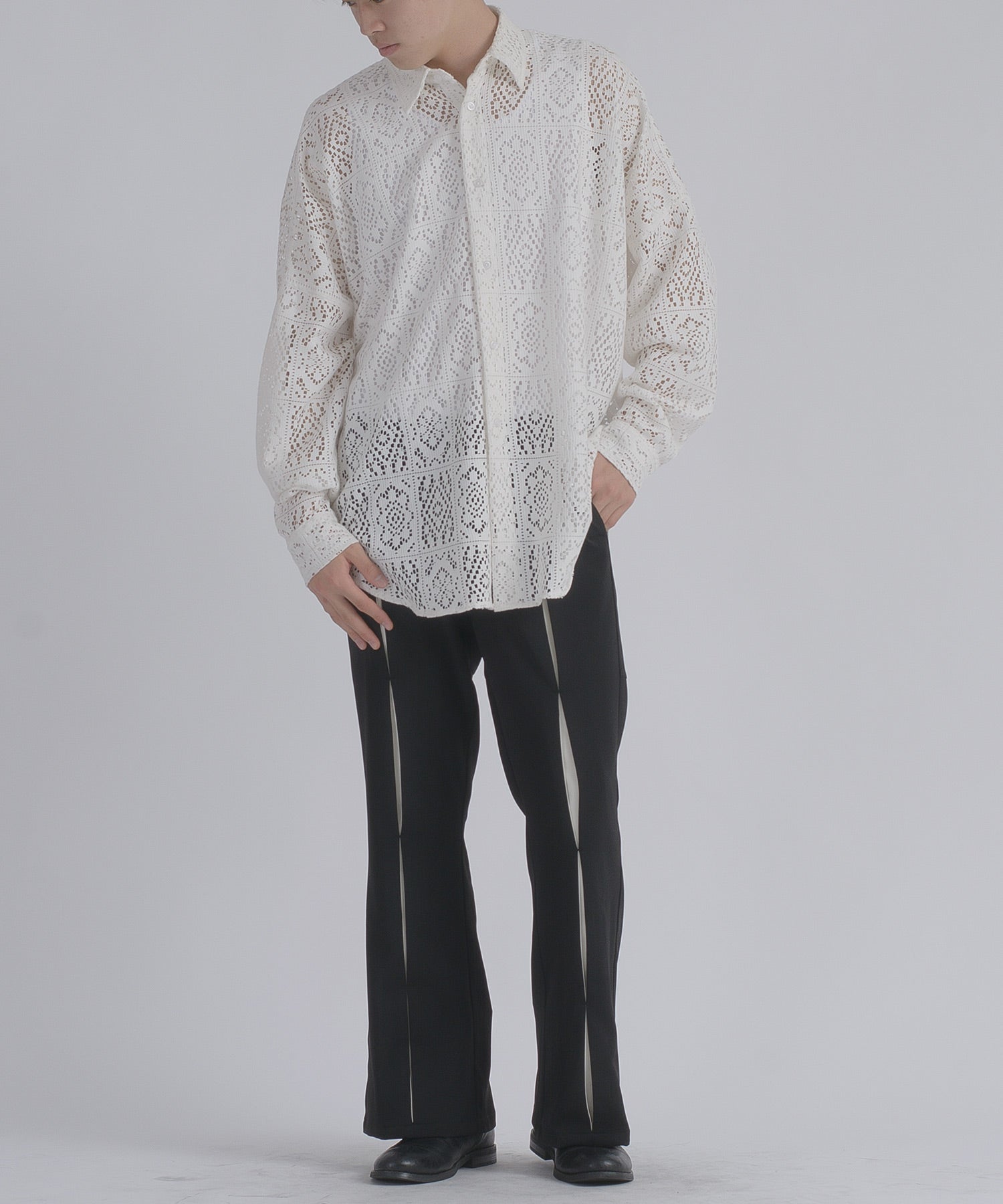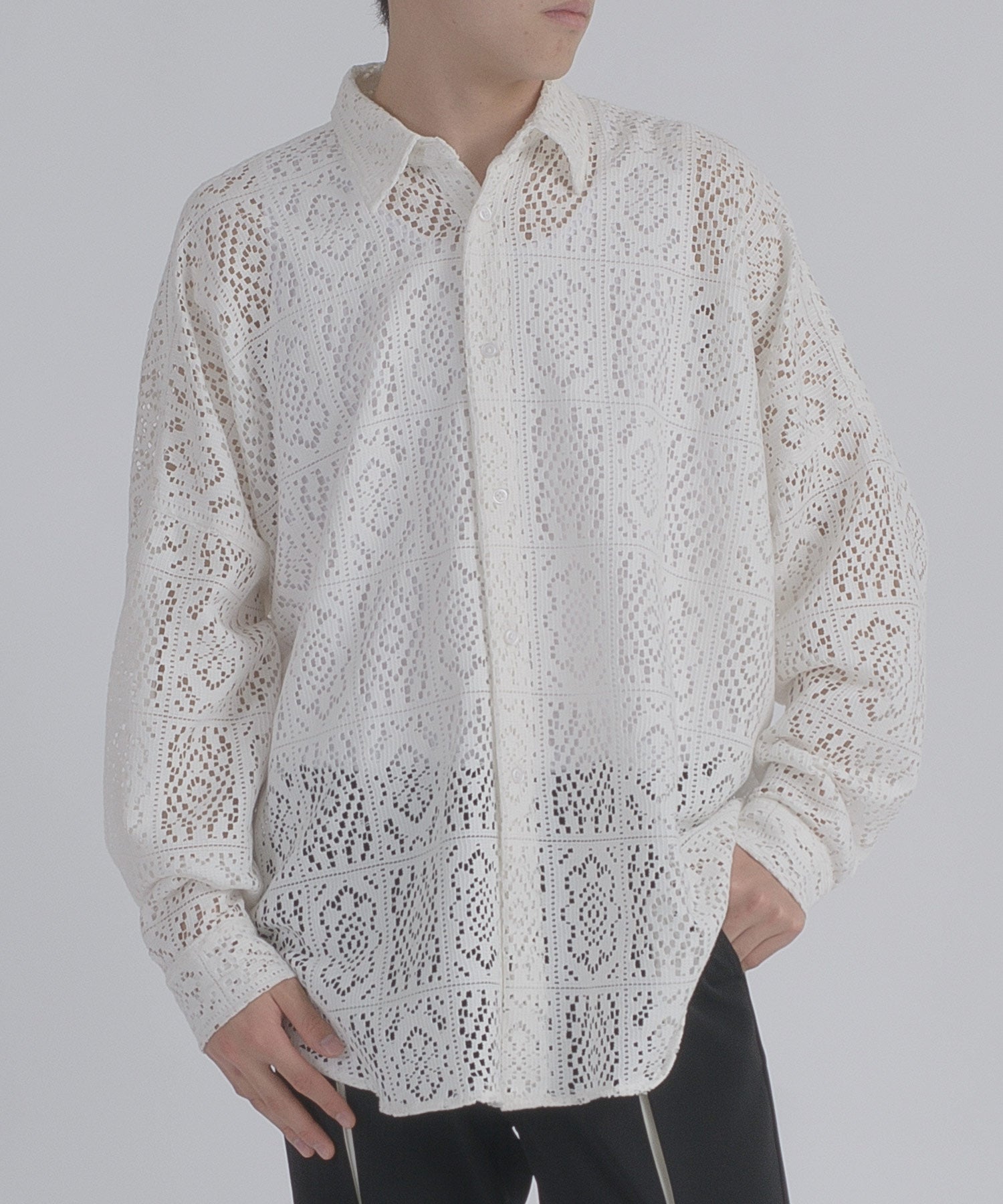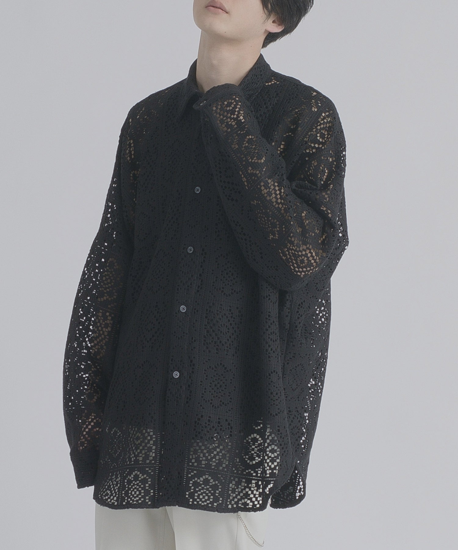 レース編みの様なメッシュ生地は正にファッション性が際立つデザインです。