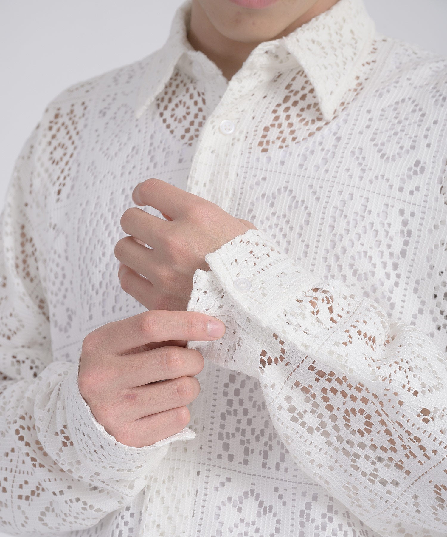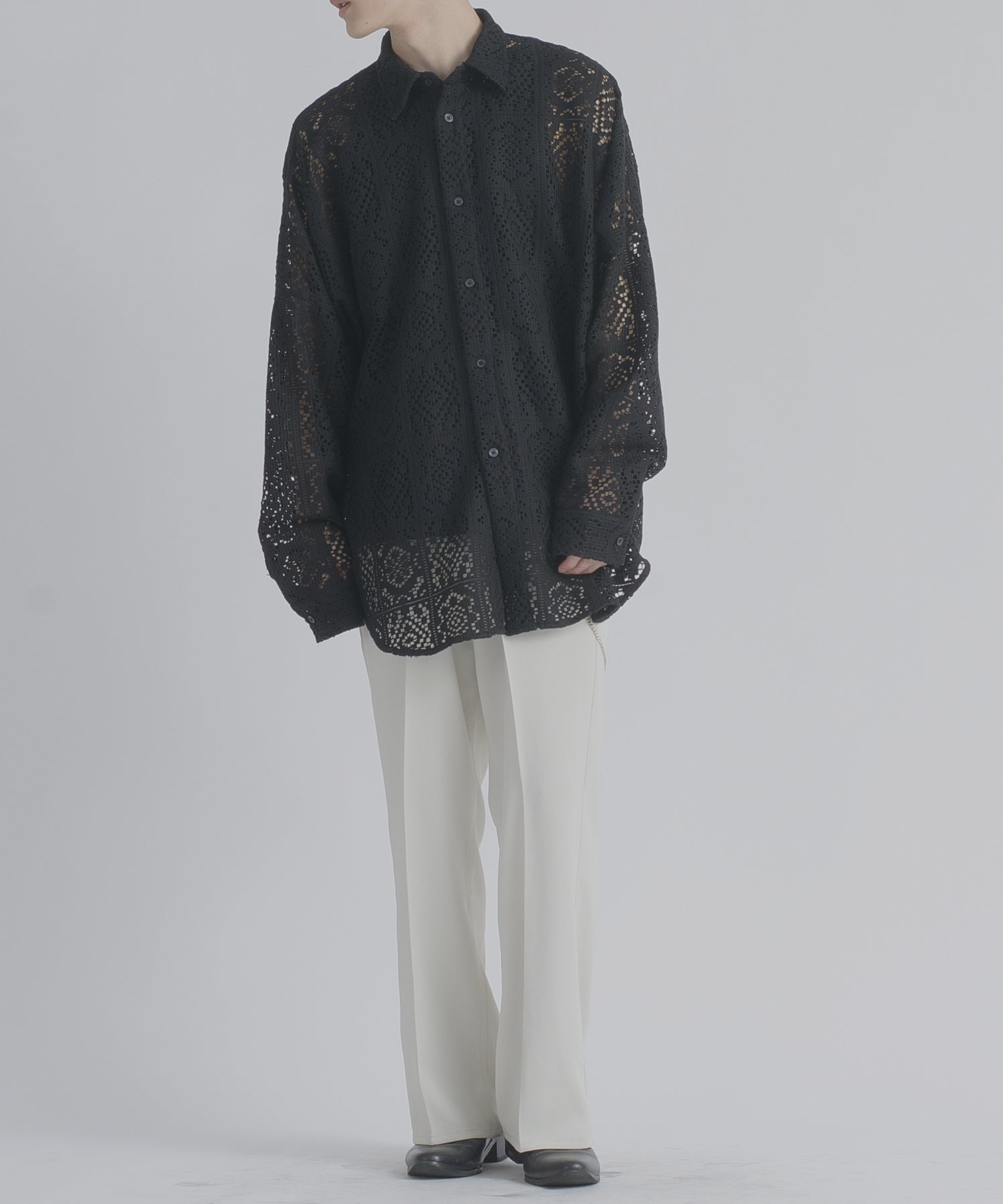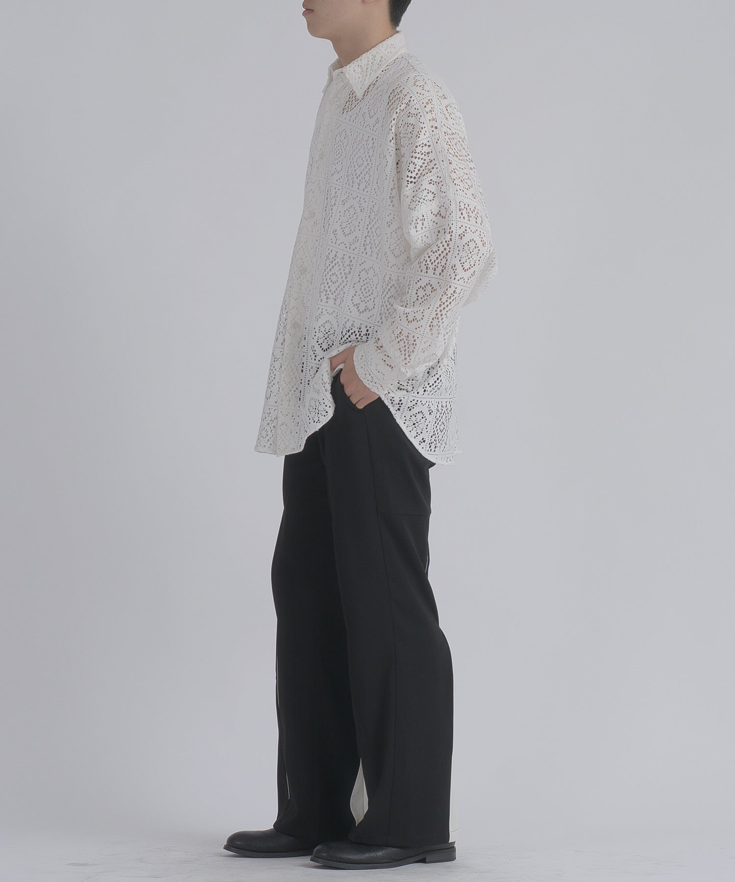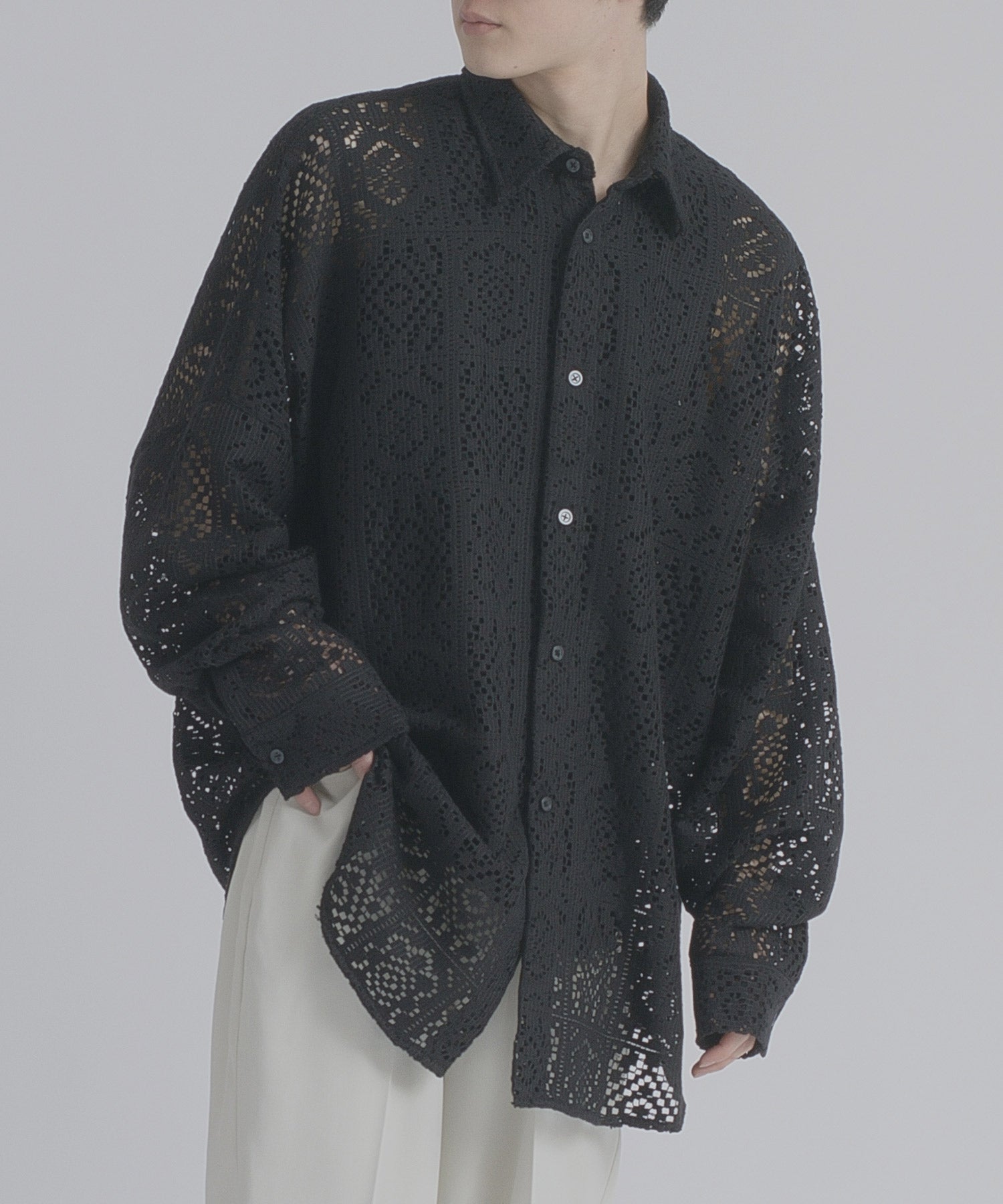 レース編みの様なメッシュ生地は正にファッション性が際立つデザインです。