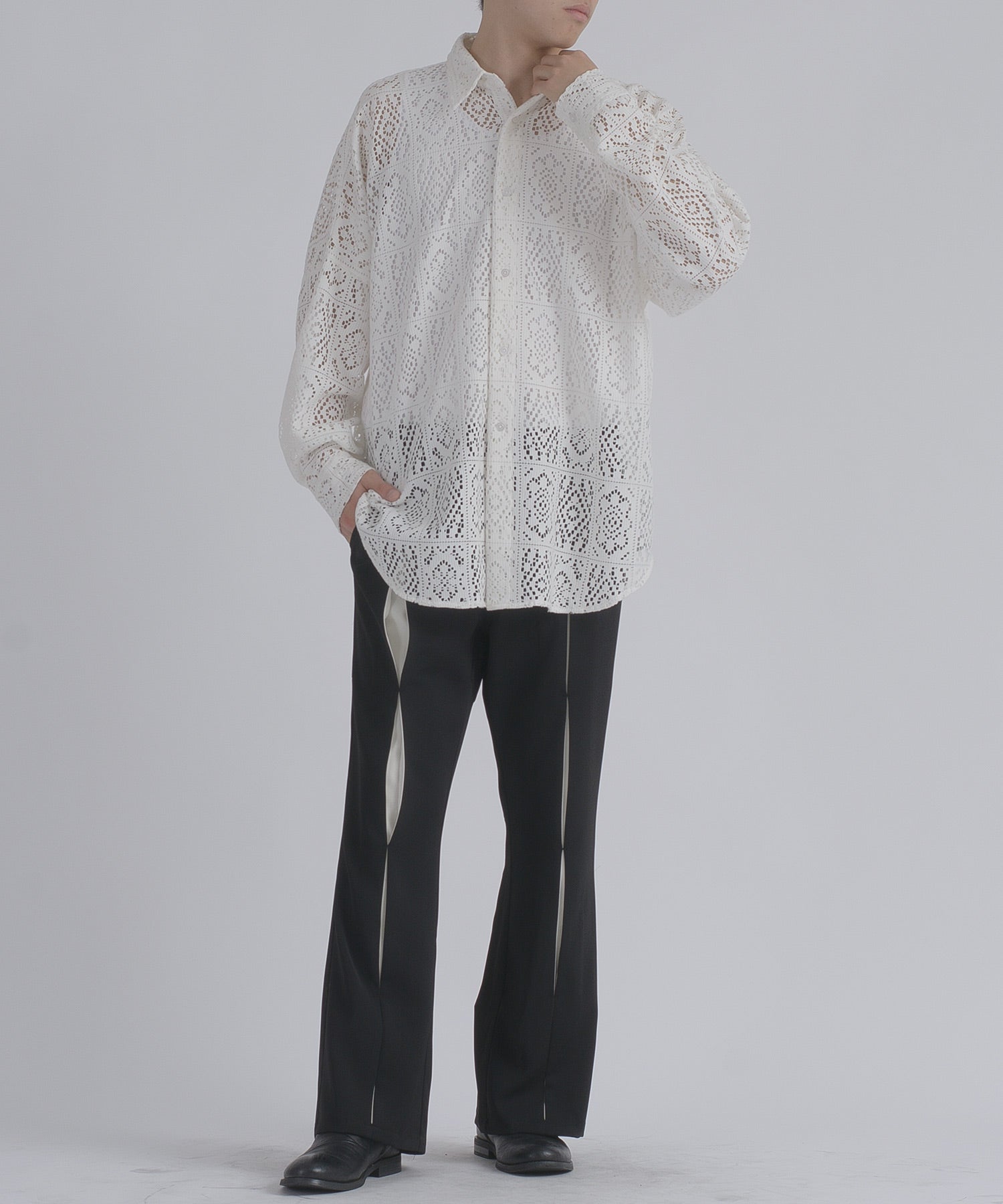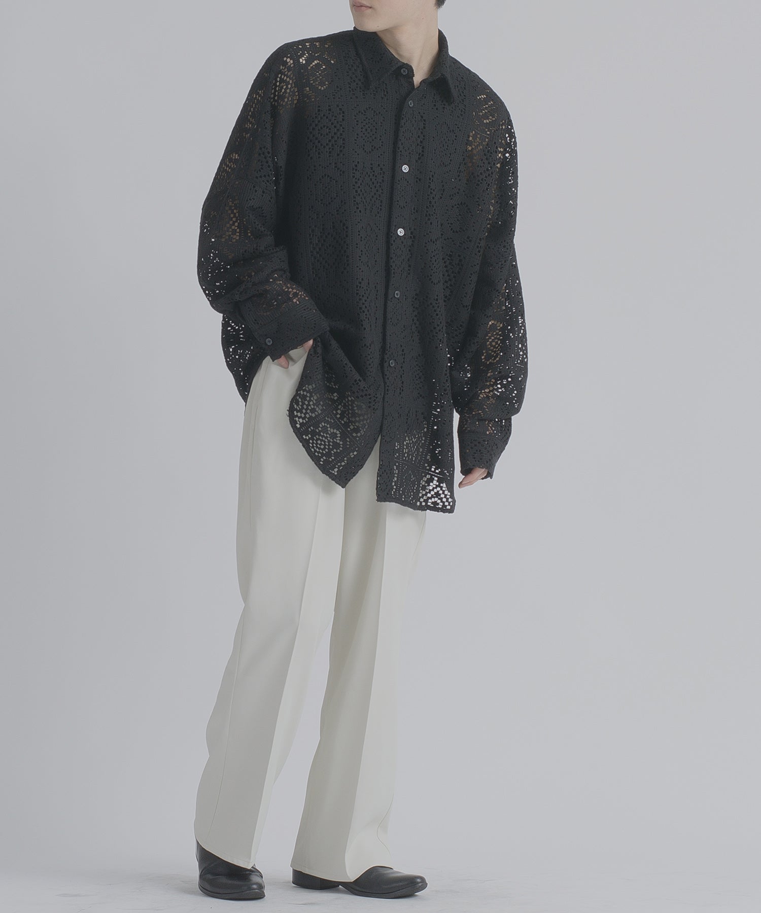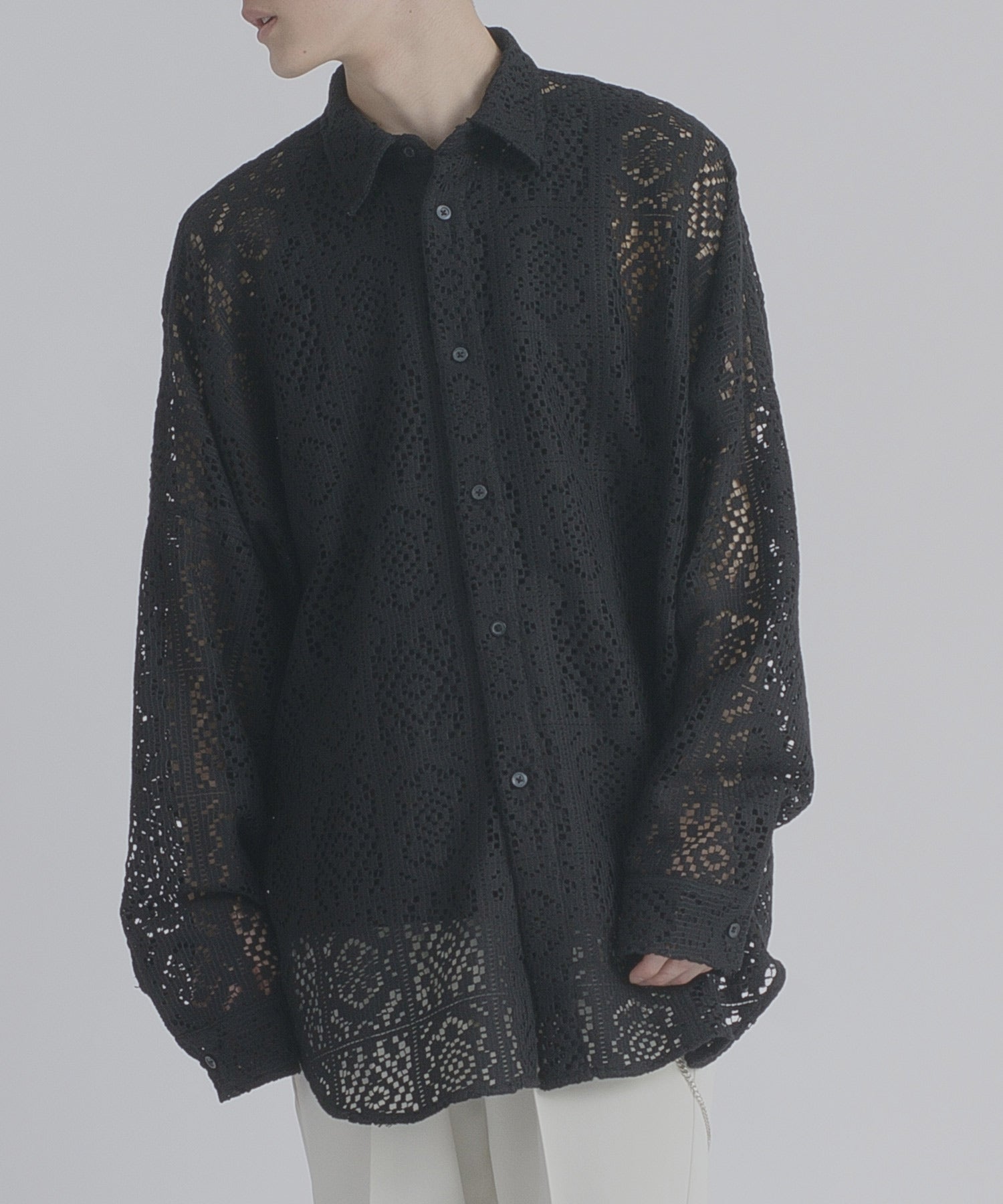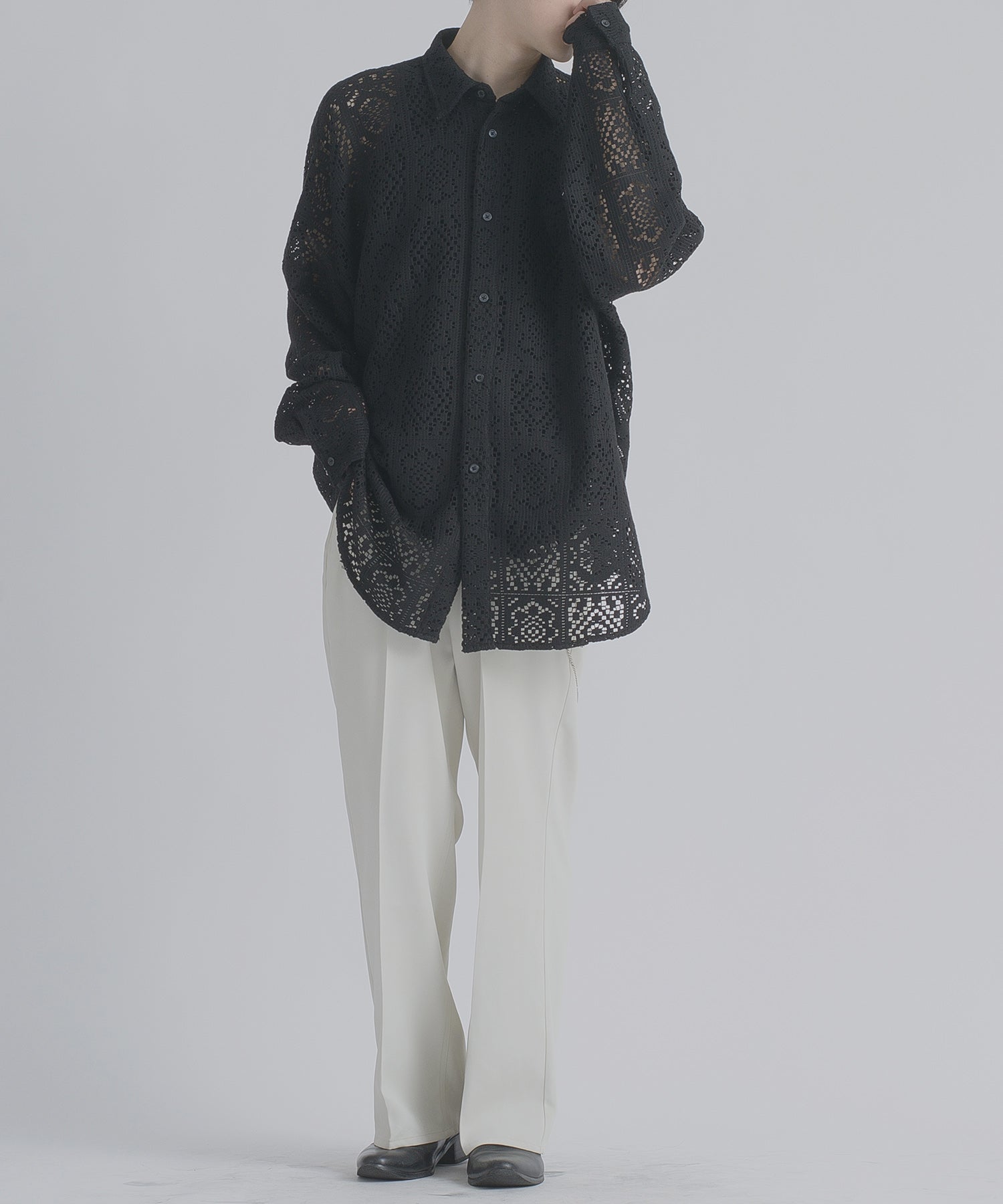 レース編みの様なメッシュ生地は正にファッション性が際立つデザインです。