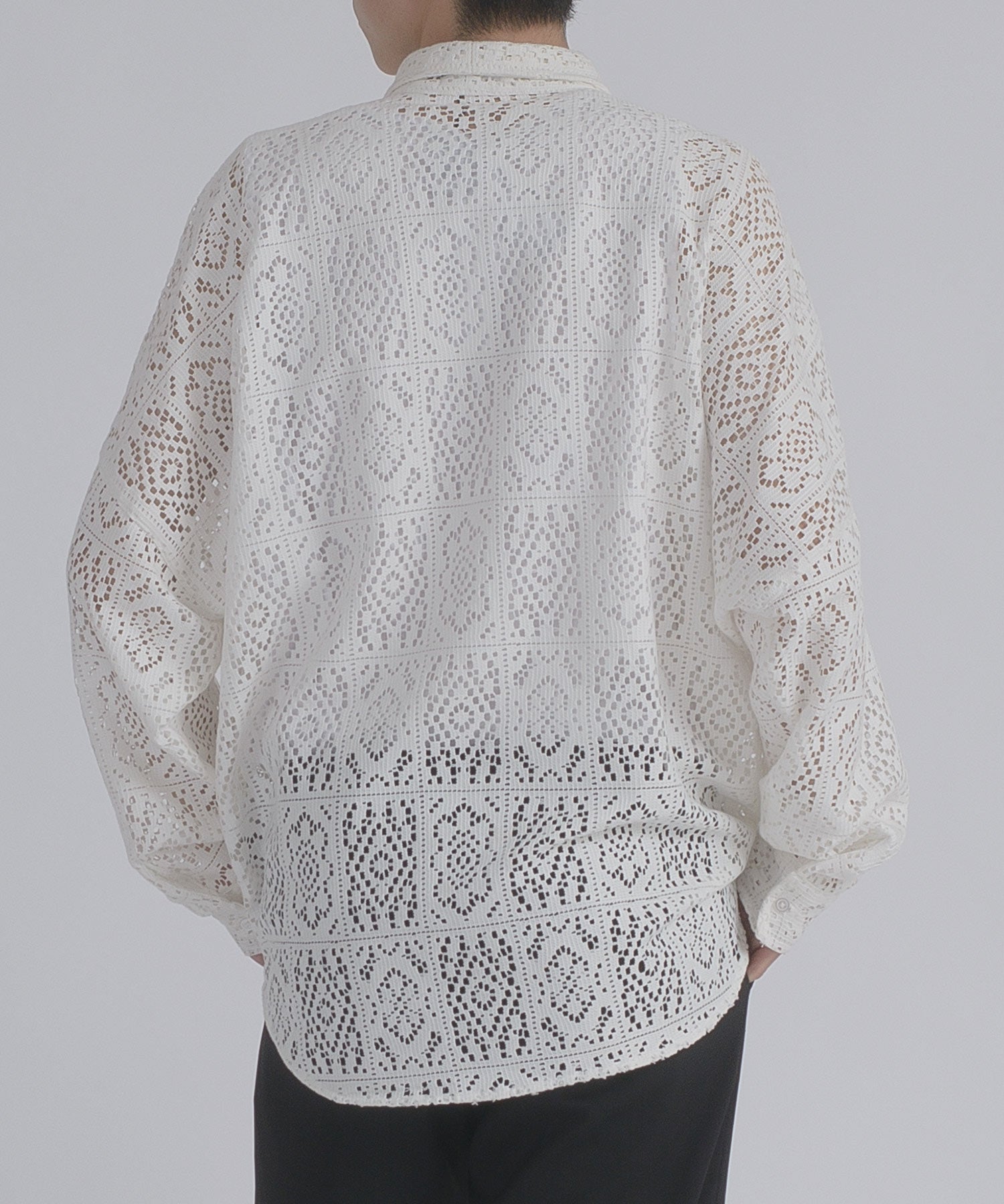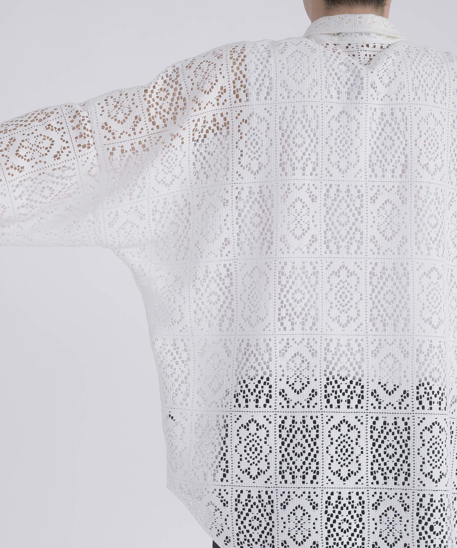 メッシュのバティック柄ドルマンスリーブシャツです。