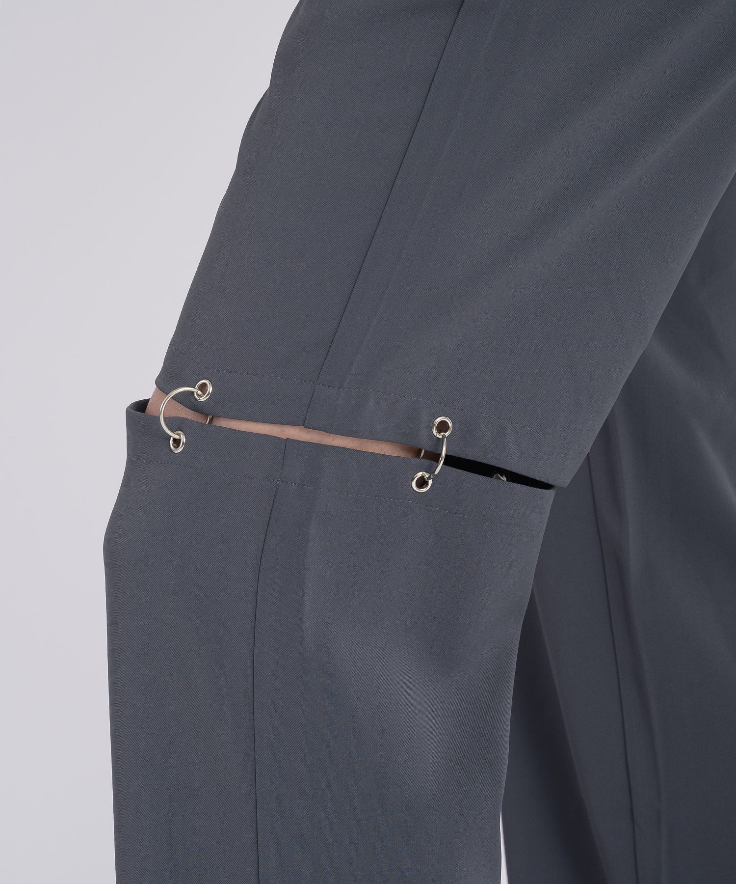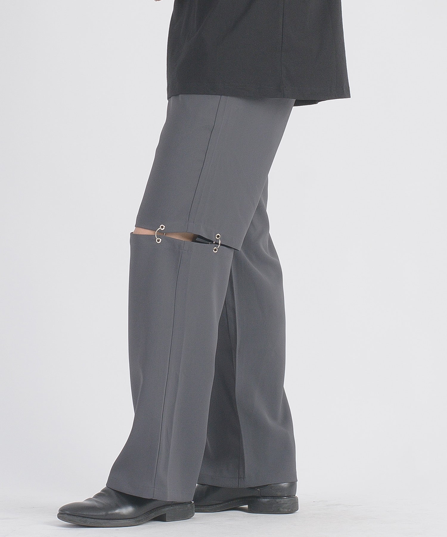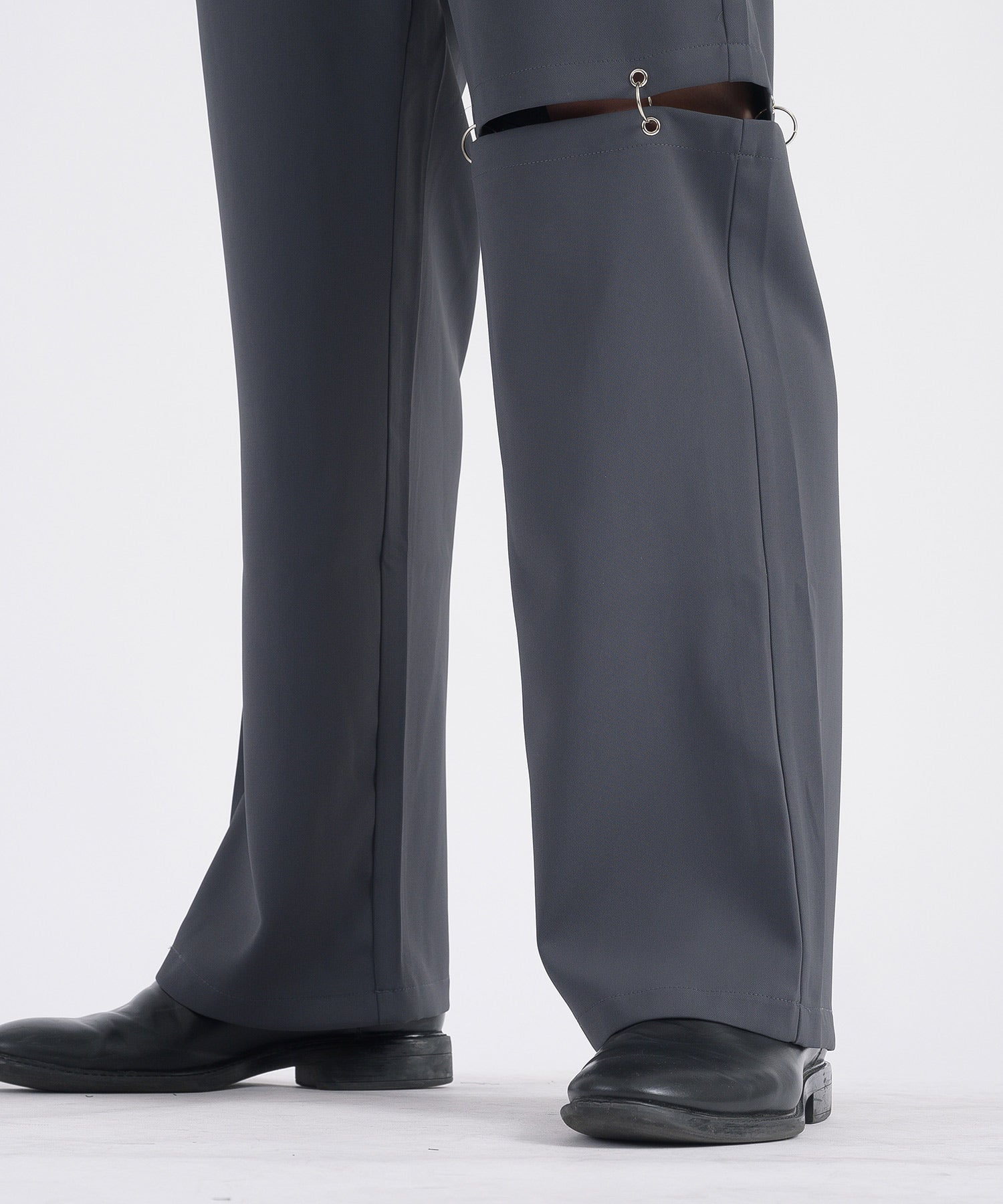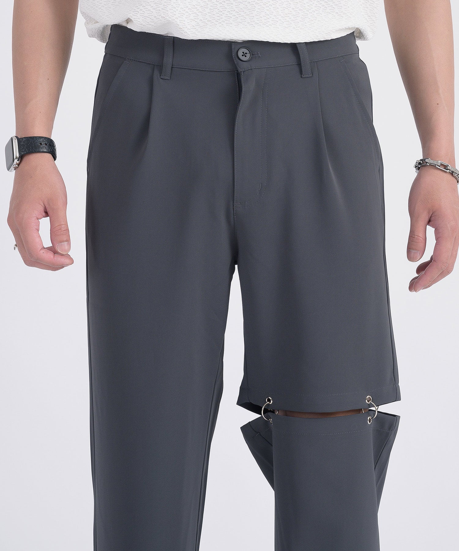上品なスラックスタイプでありながら、リングで繋いだデザインがカジュアルな印象を感じさせてくれます。