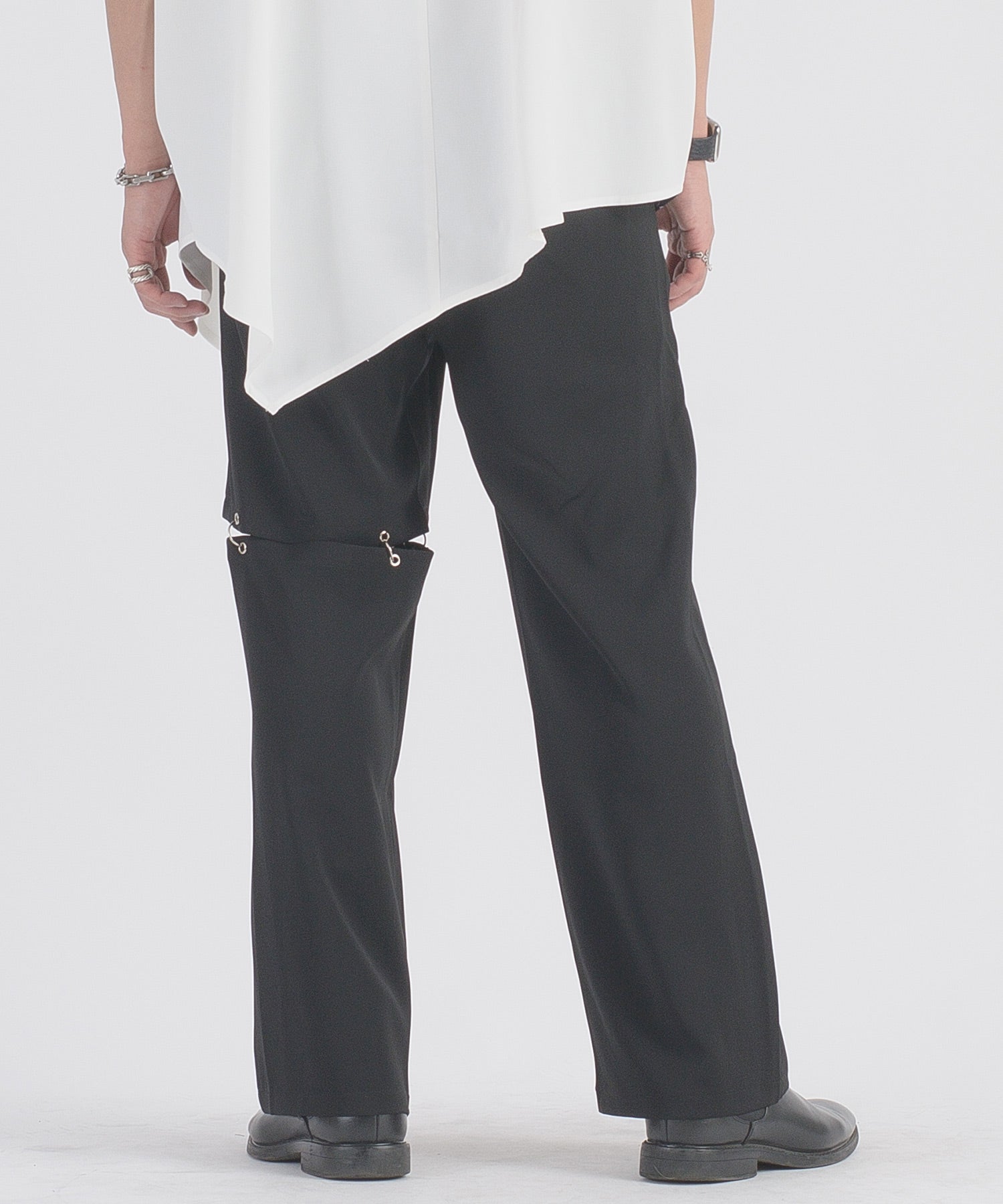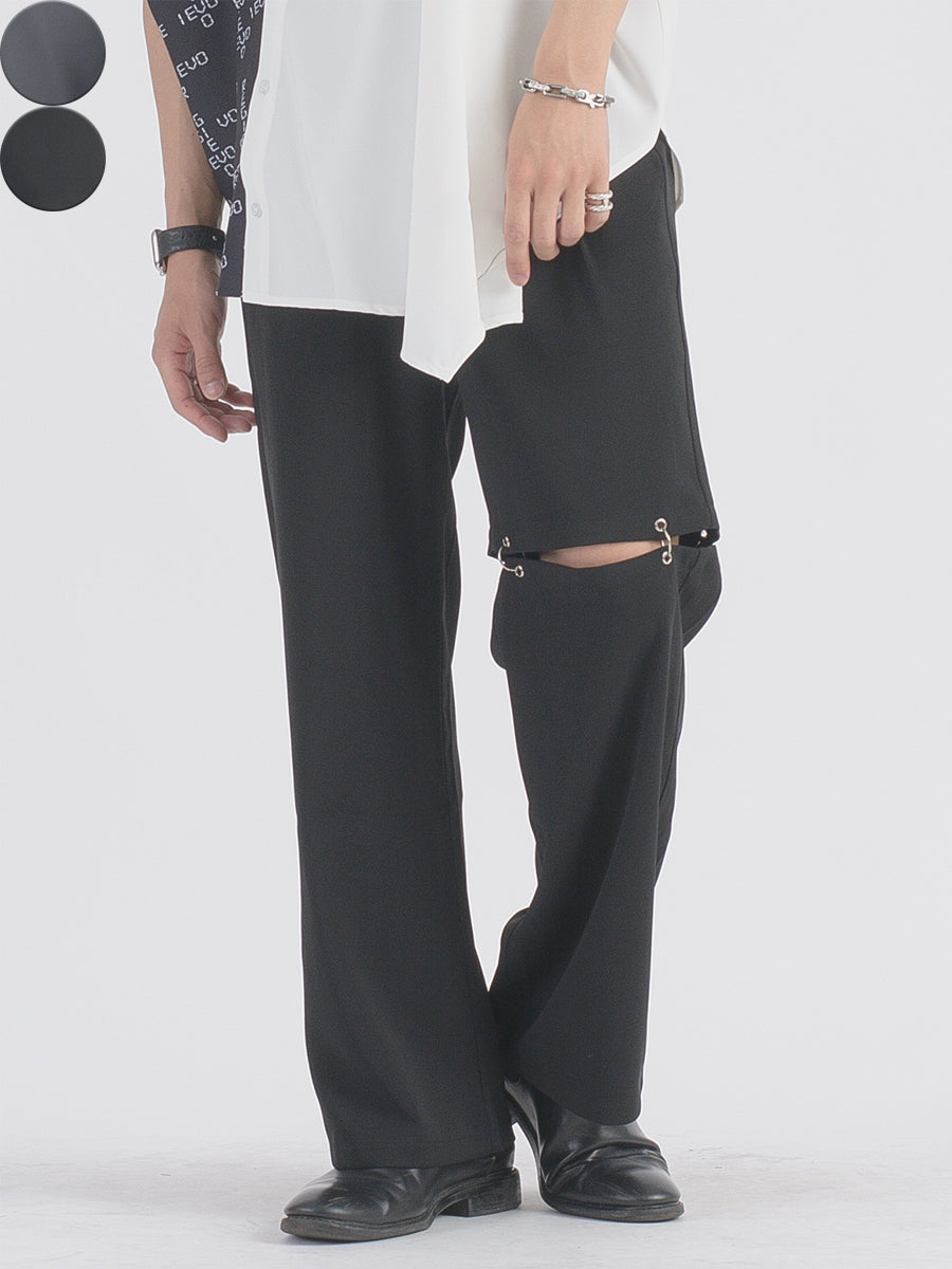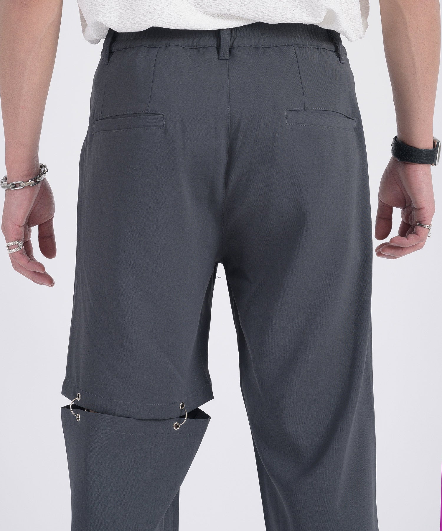 上品なスラックスタイプでありながら、リングで繋いだデザインがカジュアルな印象を感じさせてくれます。