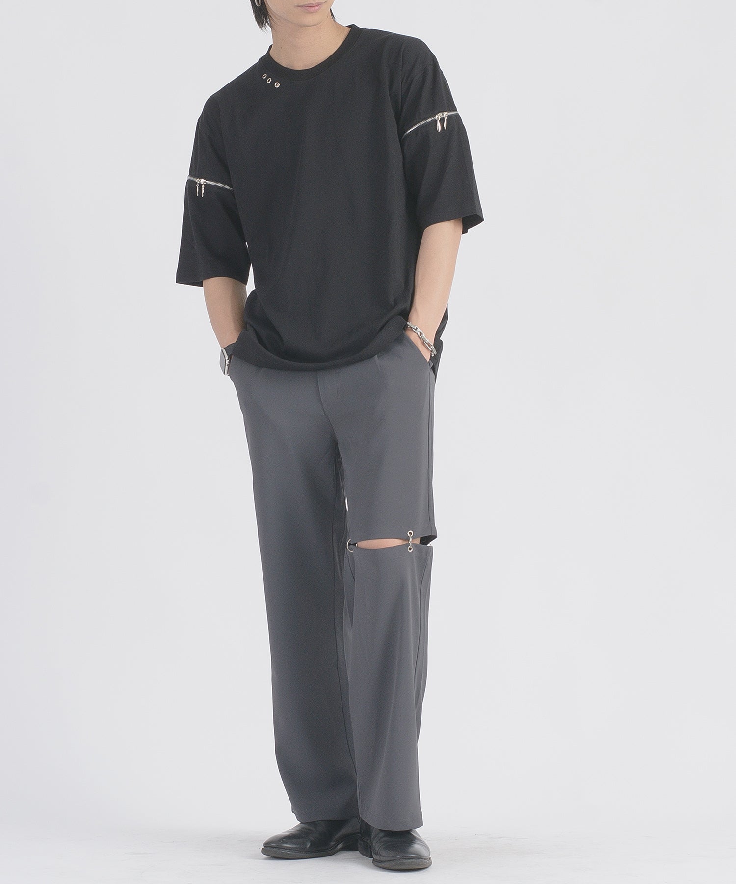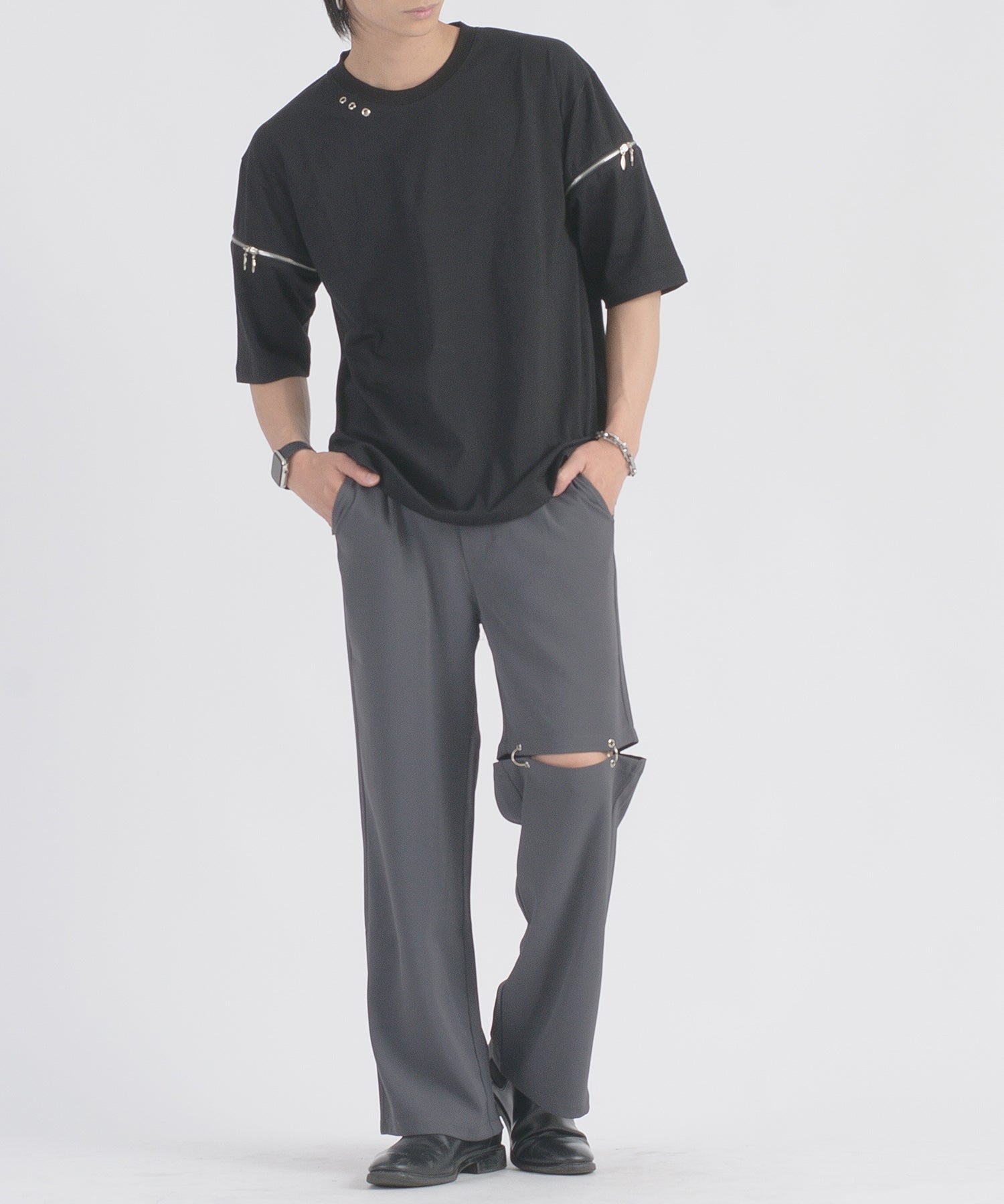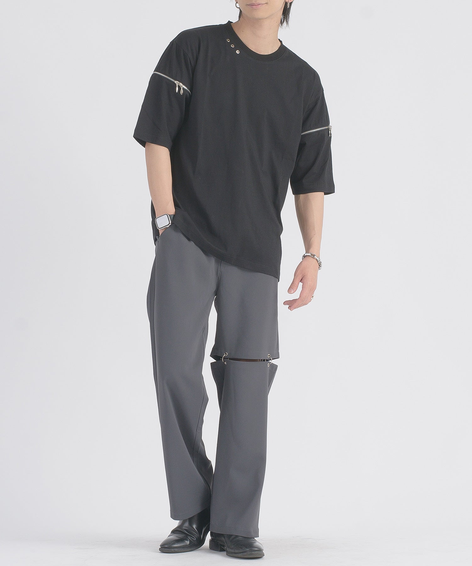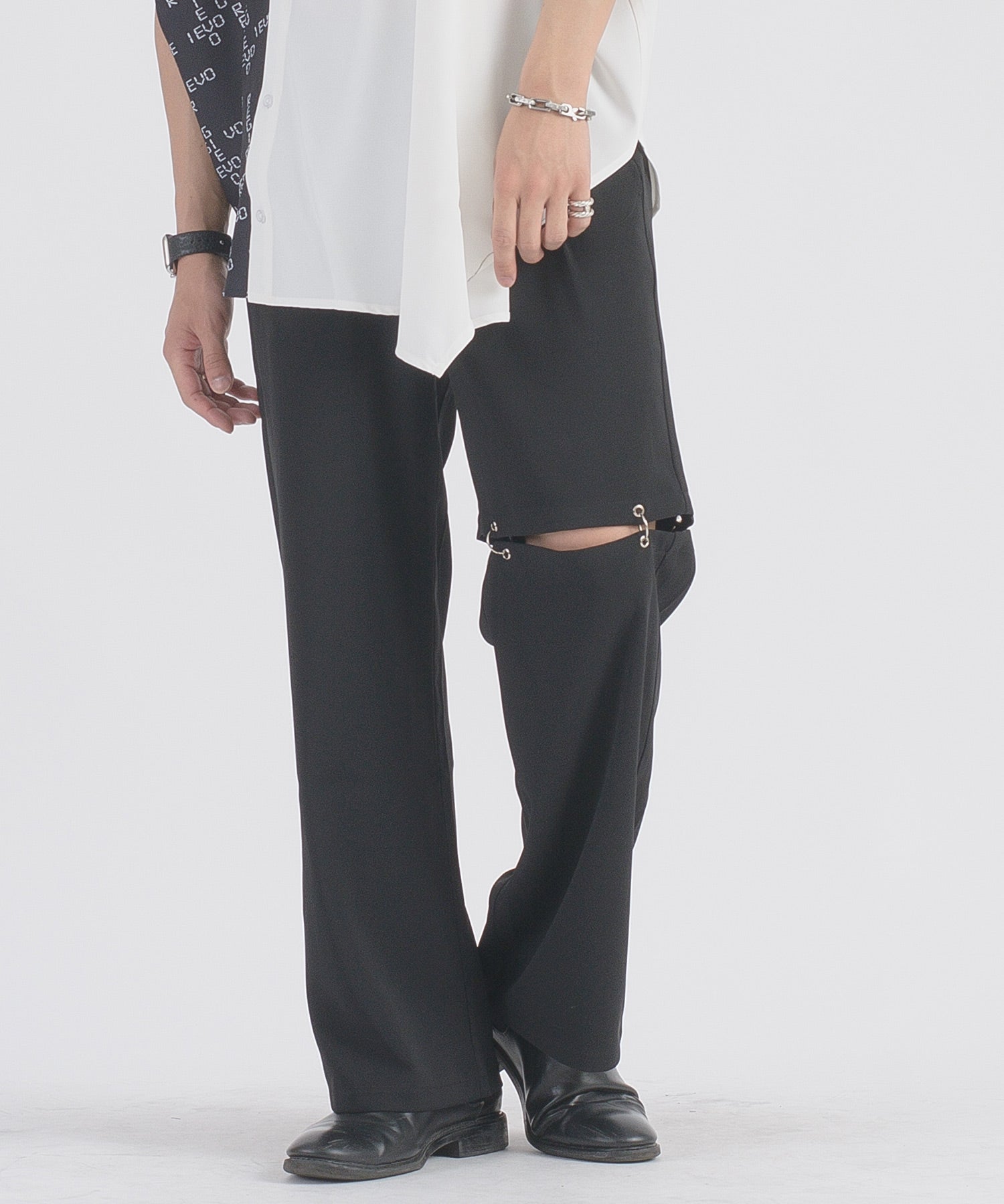 上品なスラックスタイプでありながら、リングで繋いだデザインがカジュアルな印象を感じさせてくれます。