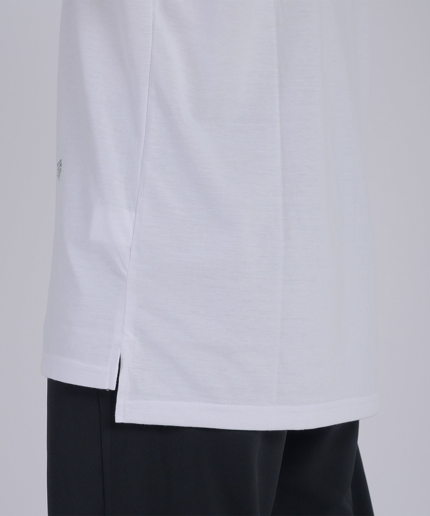 フロントとバックの着丈の長さに差をつけることで、胴長に見せず背中が見えることもないバランスの取れたシルエットです。