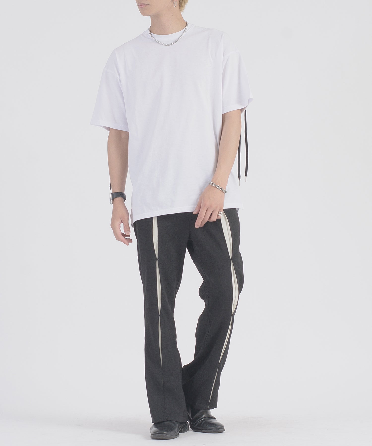 端を敢えて結ばないことでフロントから見てもその垂れ下がったコードがチラついてアクセントになります。