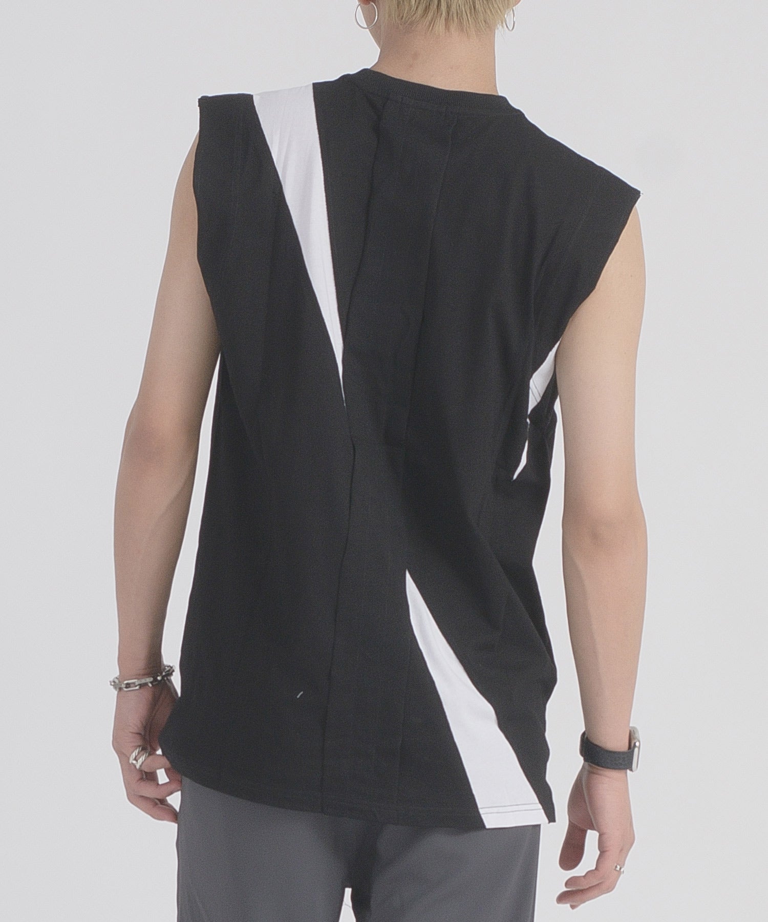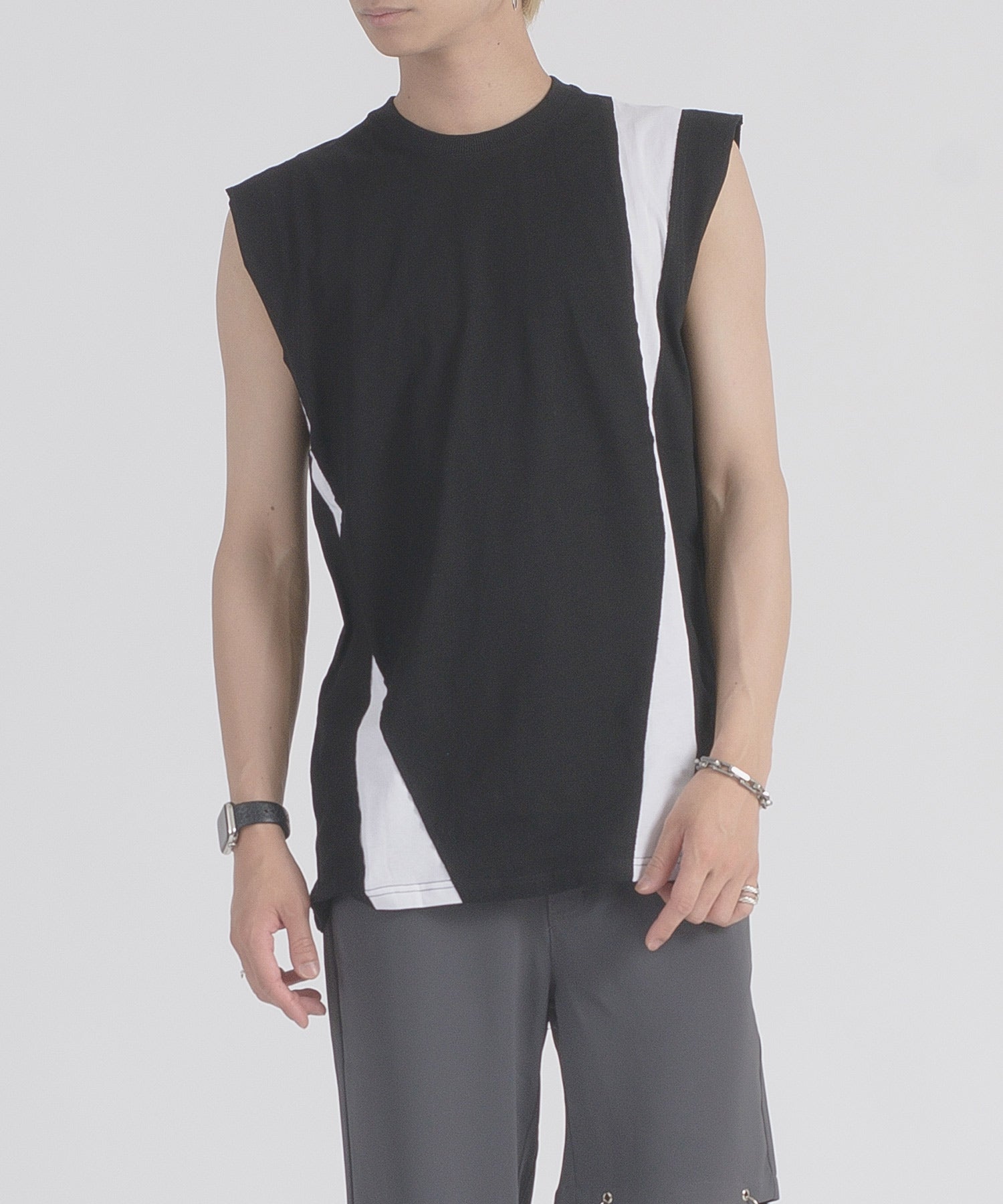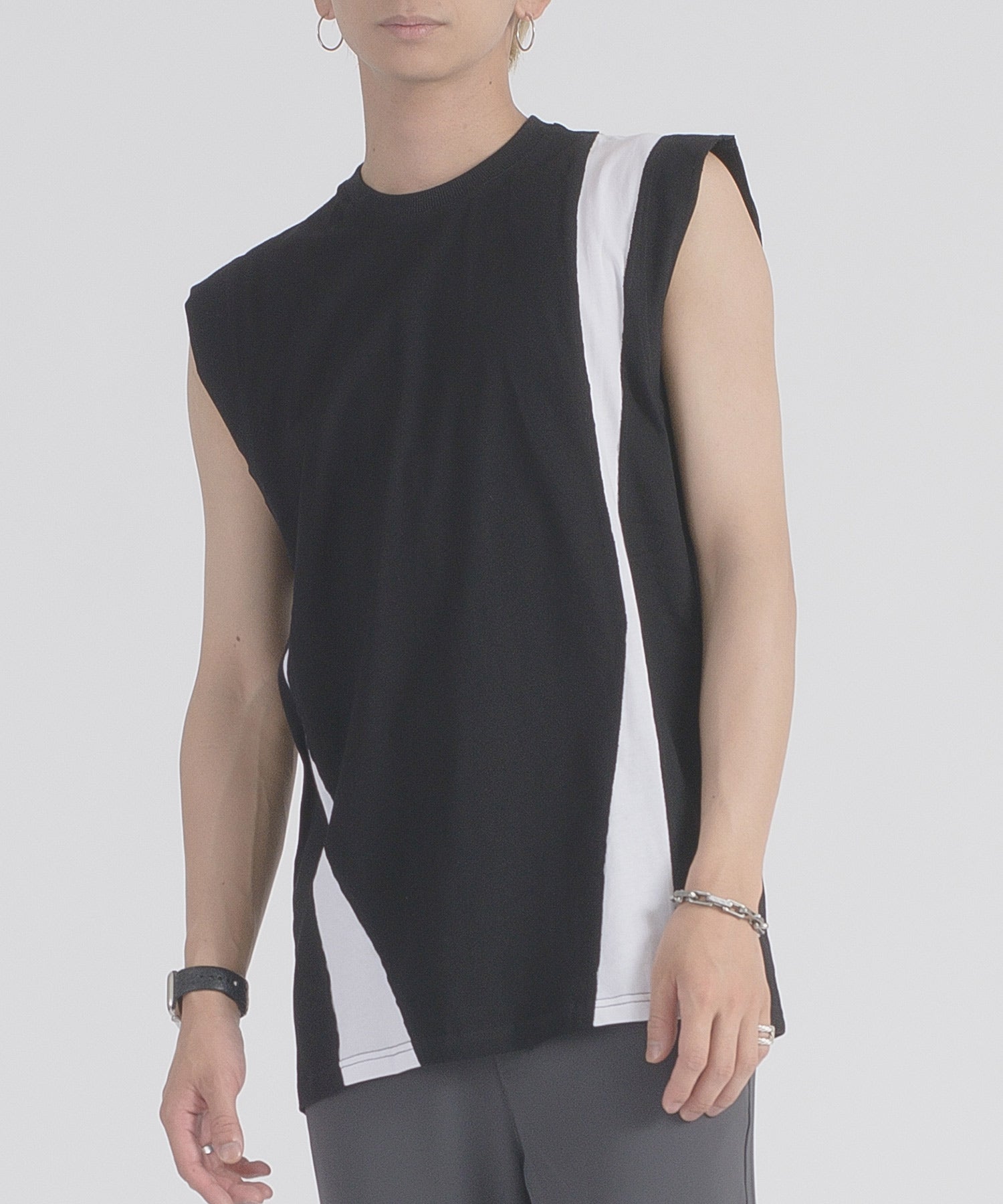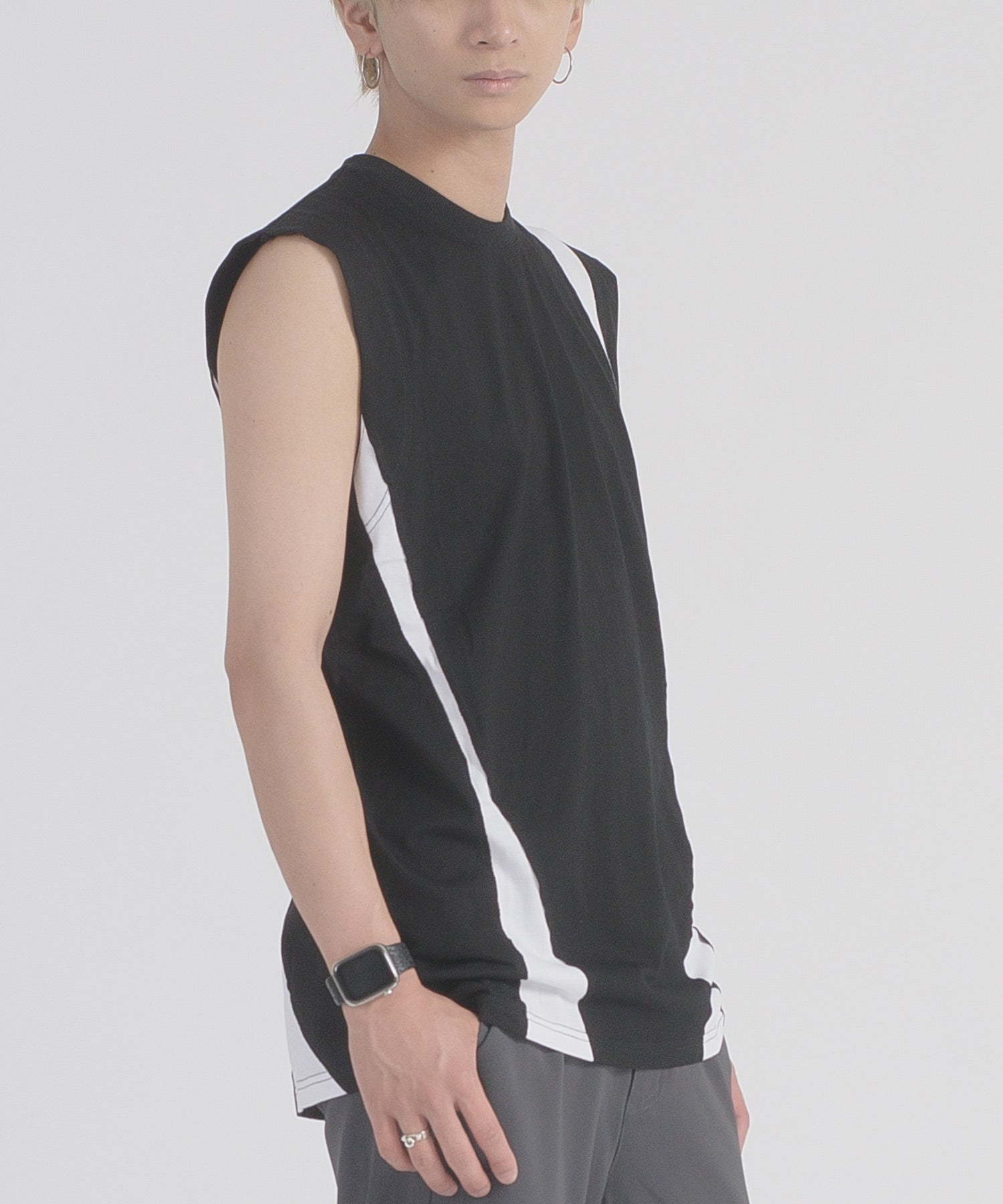 スポーティな印象の強いノースリーブですが、ゆとりのあるシルエットとクールな切り替えがスマートな印象を感じさせます。