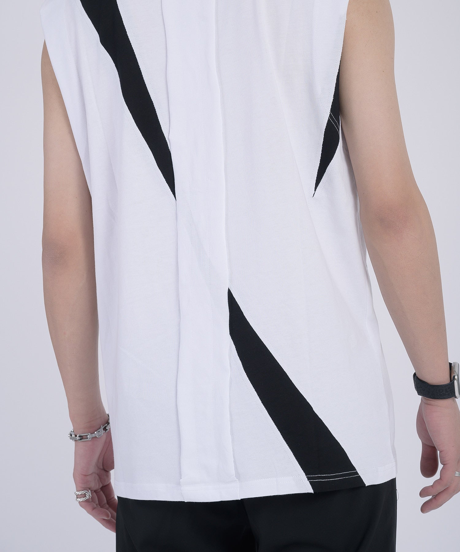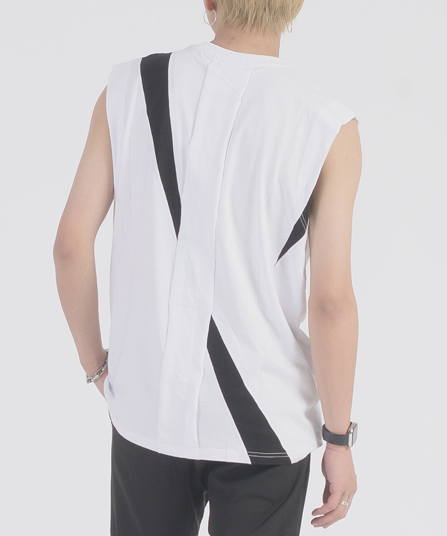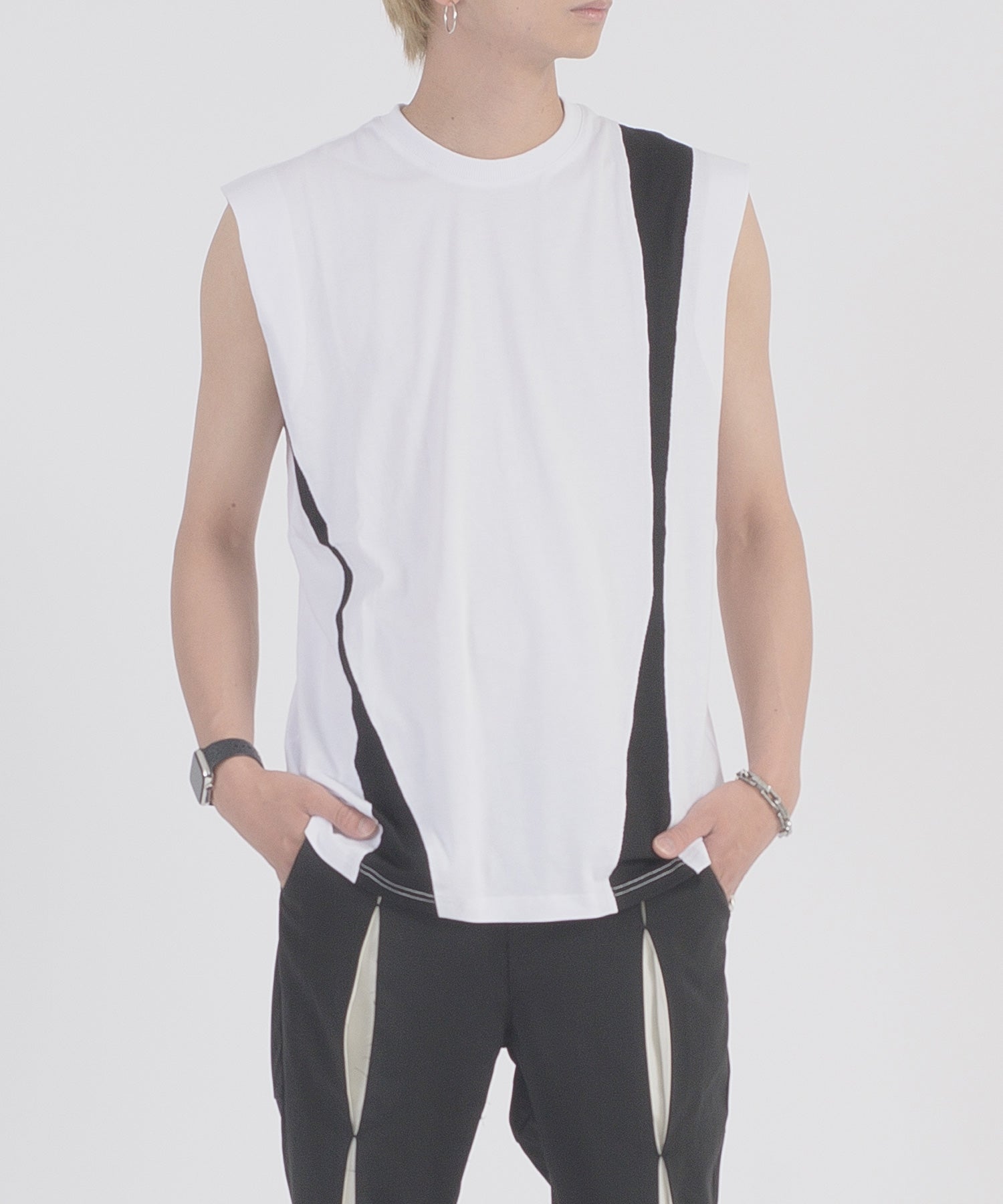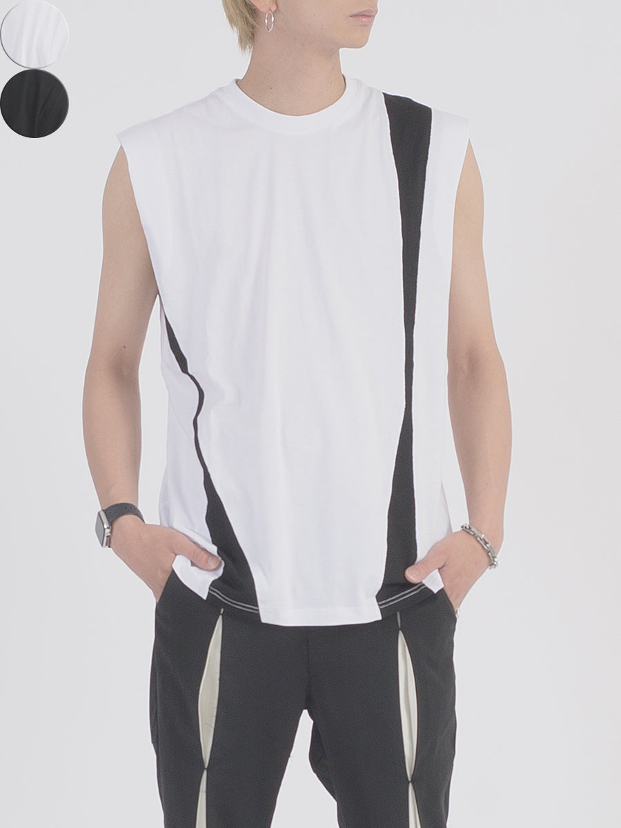 スポーティな印象の強いノースリーブですが、ゆとりのあるシルエットとクールな切り替えがスマートな印象を感じさせます。