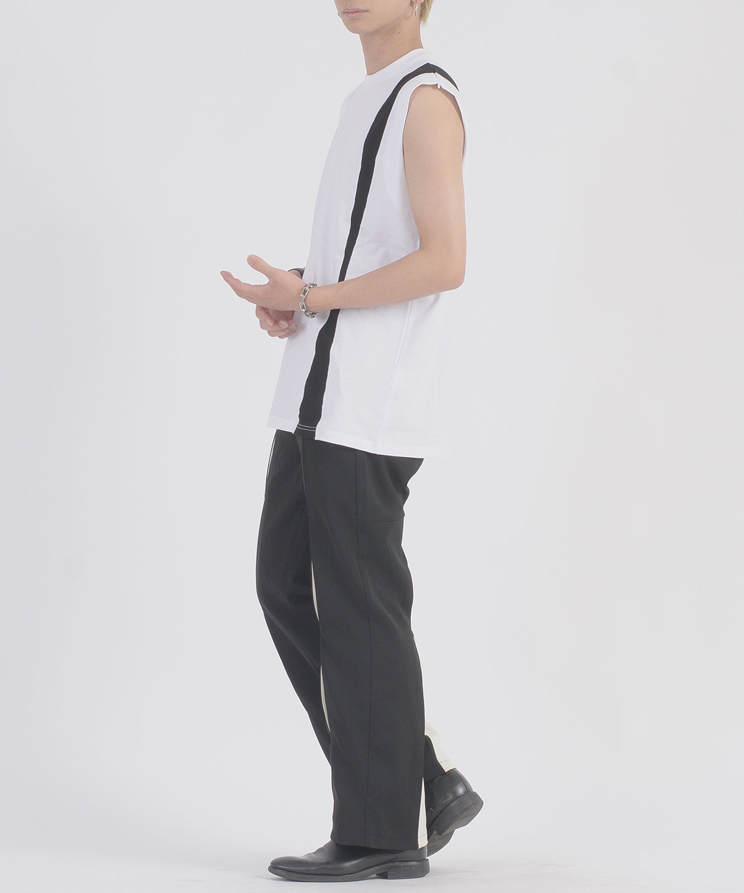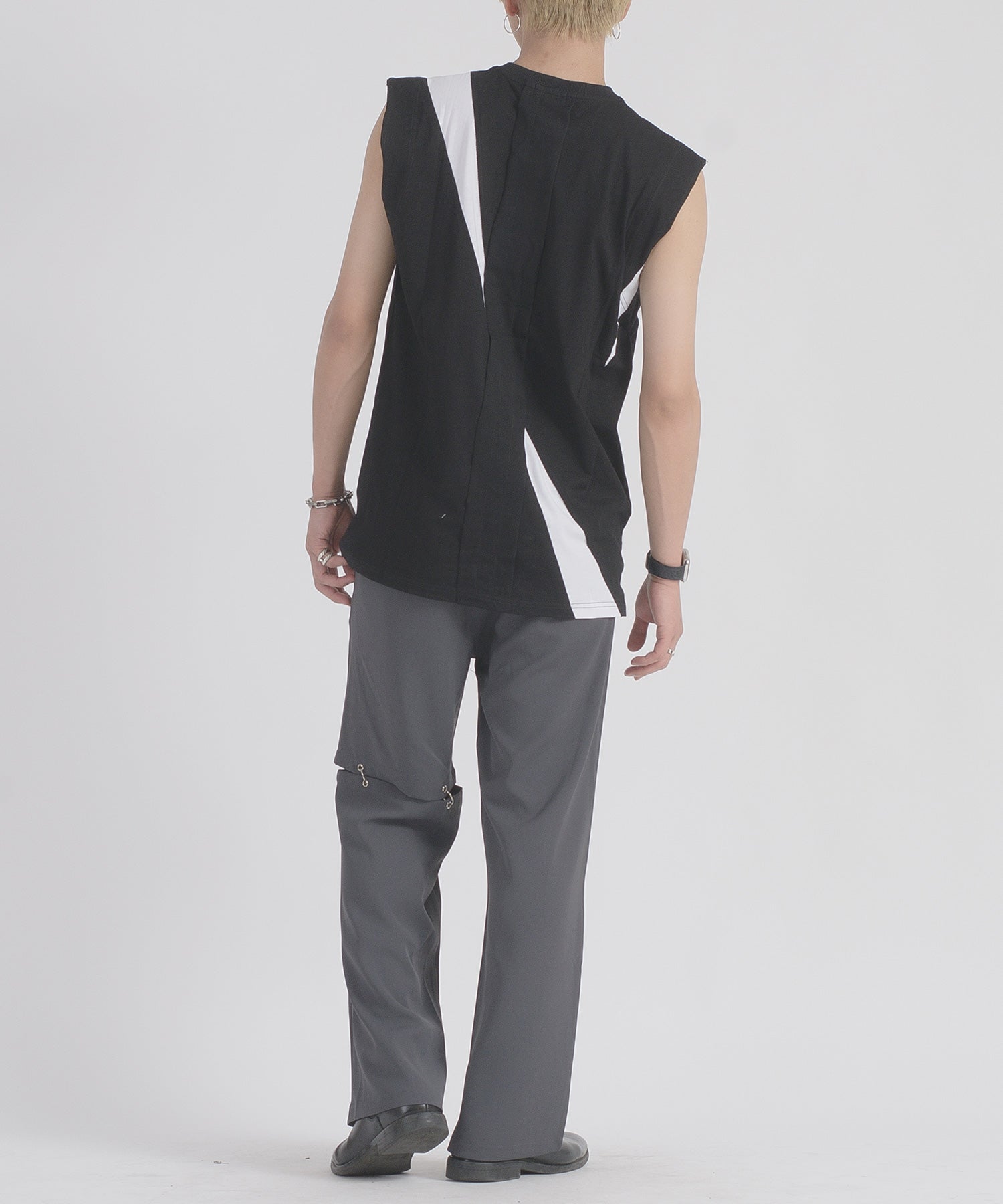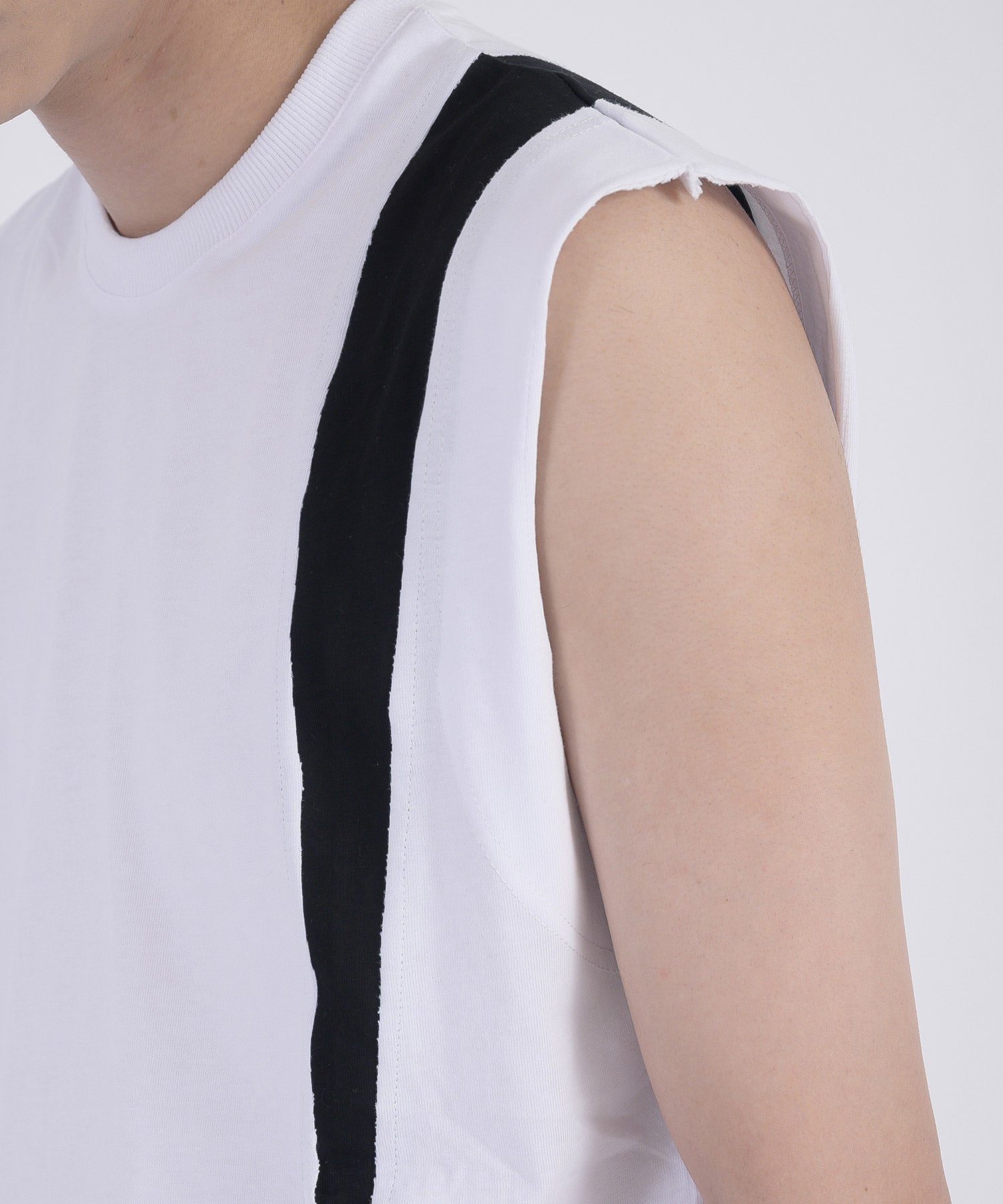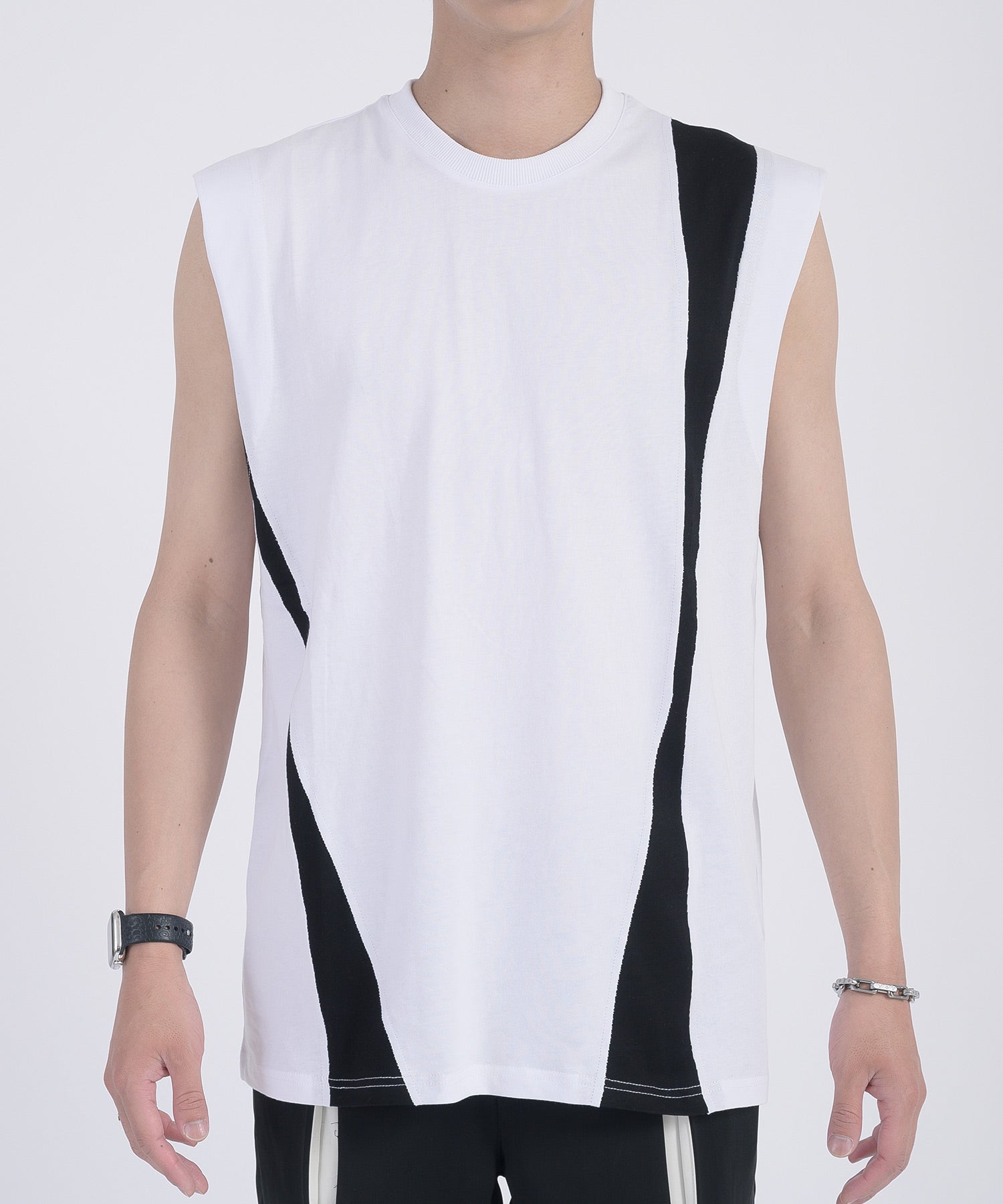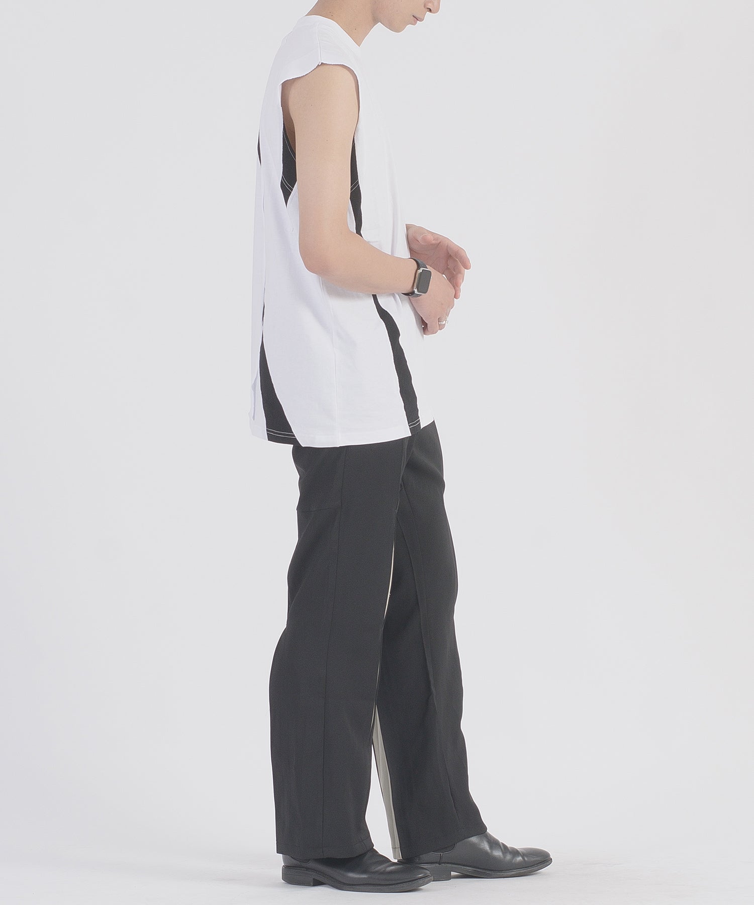 スポーティな印象の強いノースリーブですが、ゆとりのあるシルエットとクールな切り替えがスマートな印象を感じさせます。