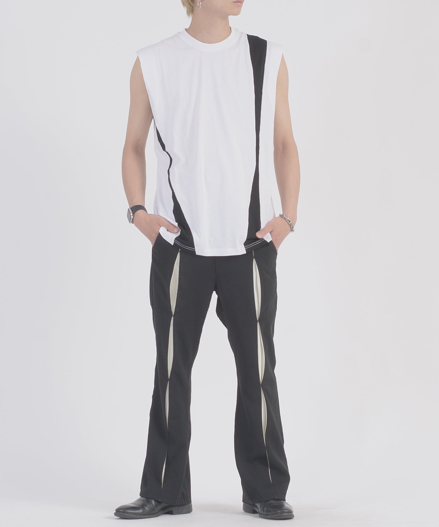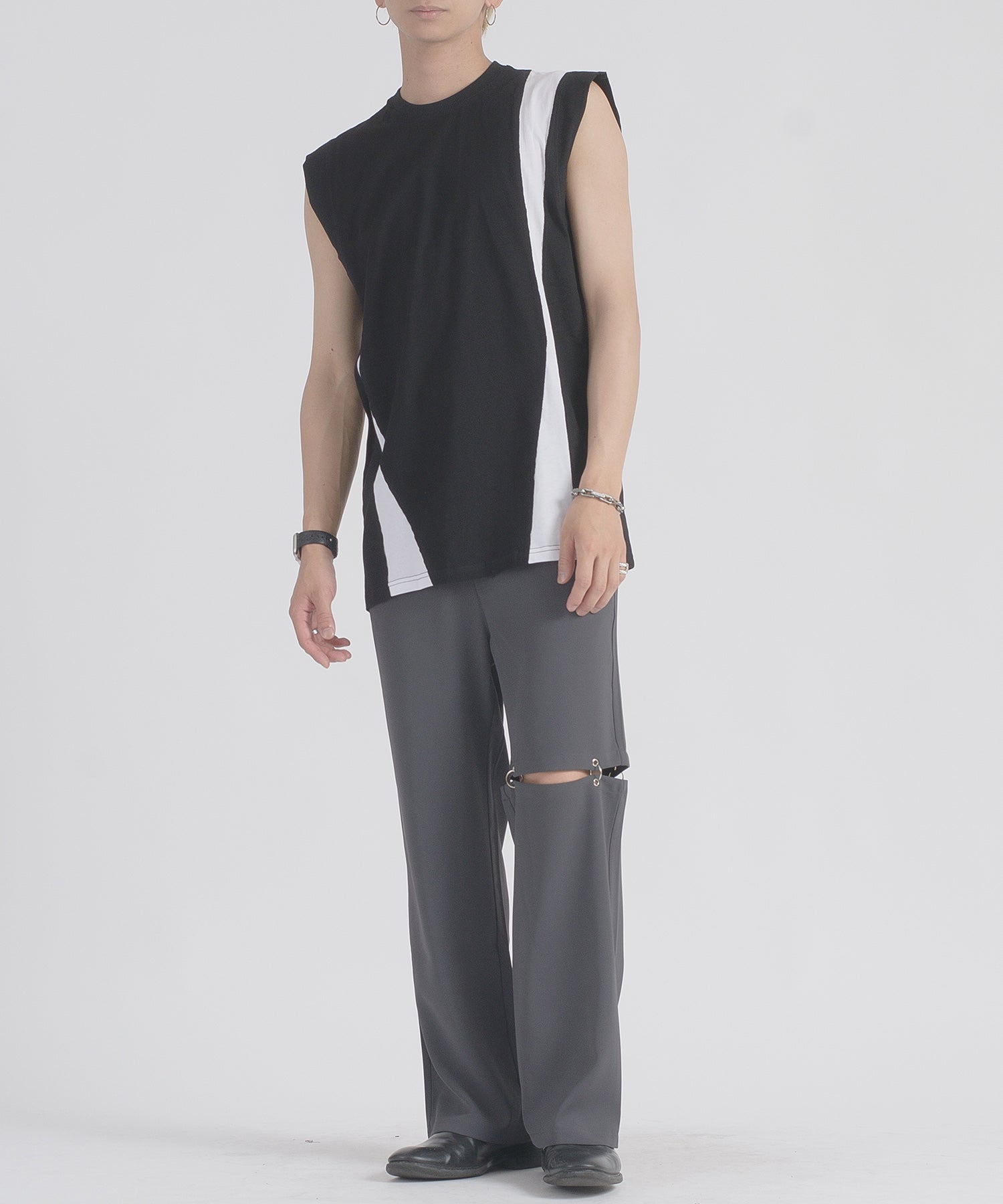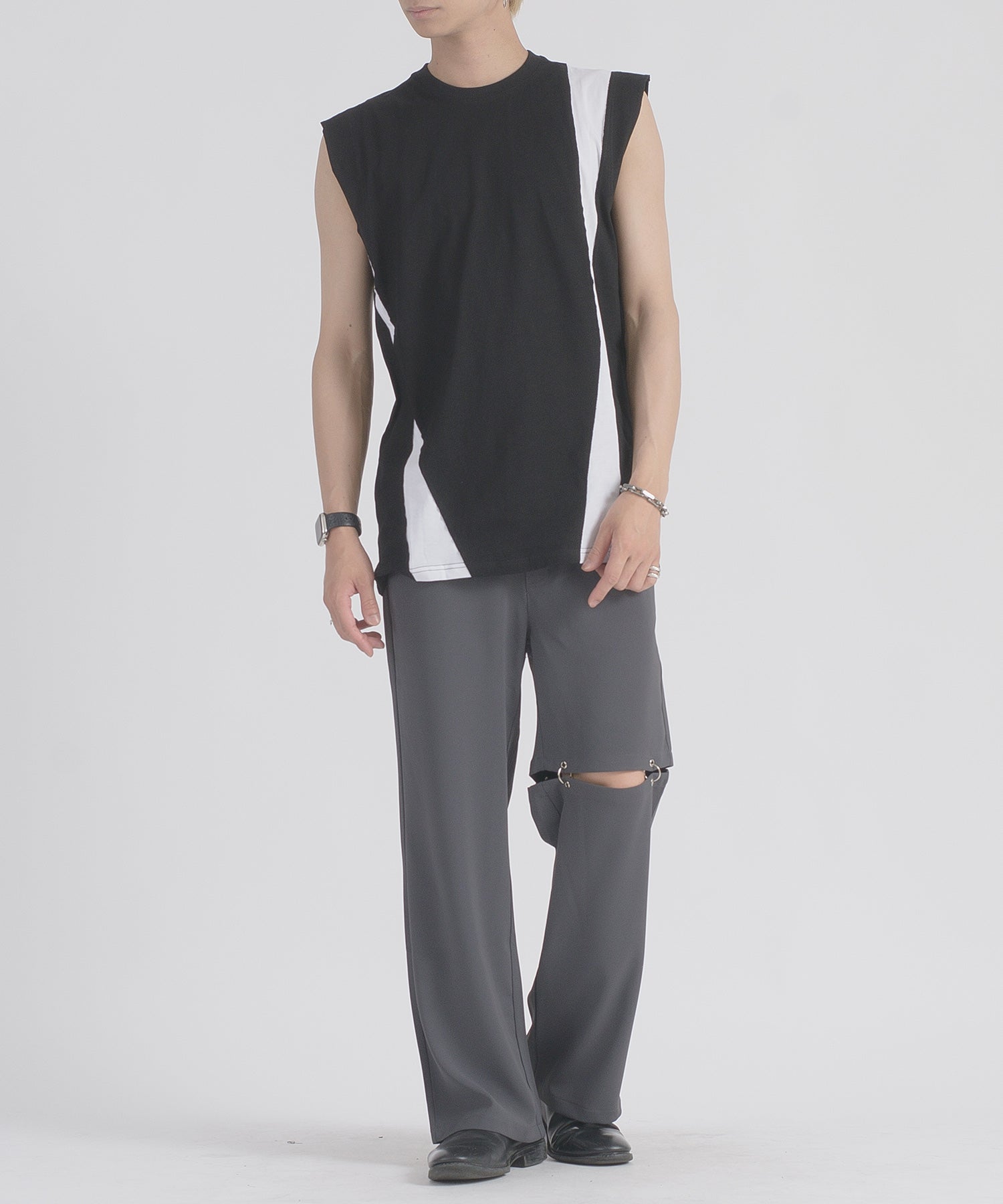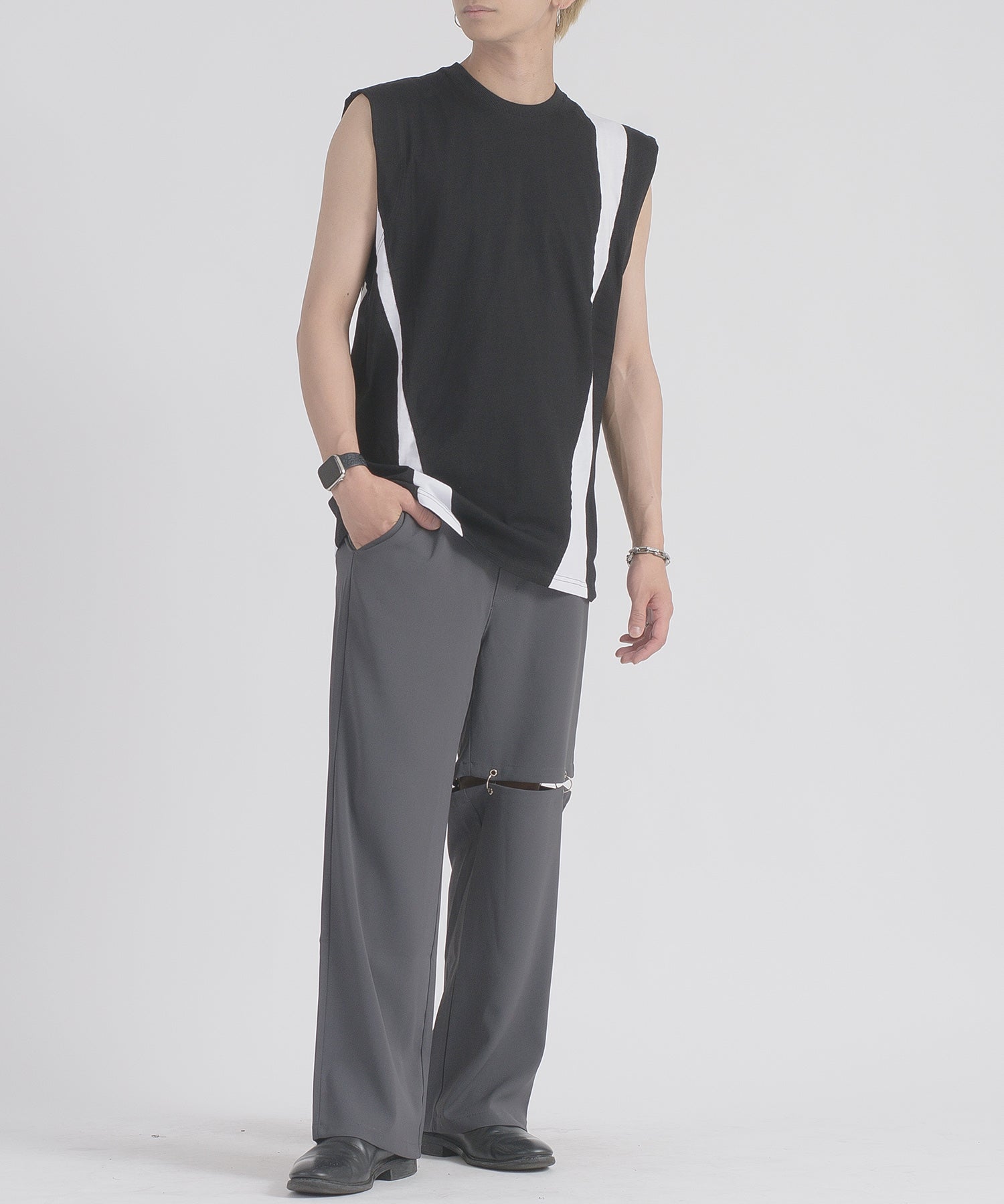 スポーティな印象の強いノースリーブですが、ゆとりのあるシルエットとクールな切り替えがスマートな印象を感じさせます。