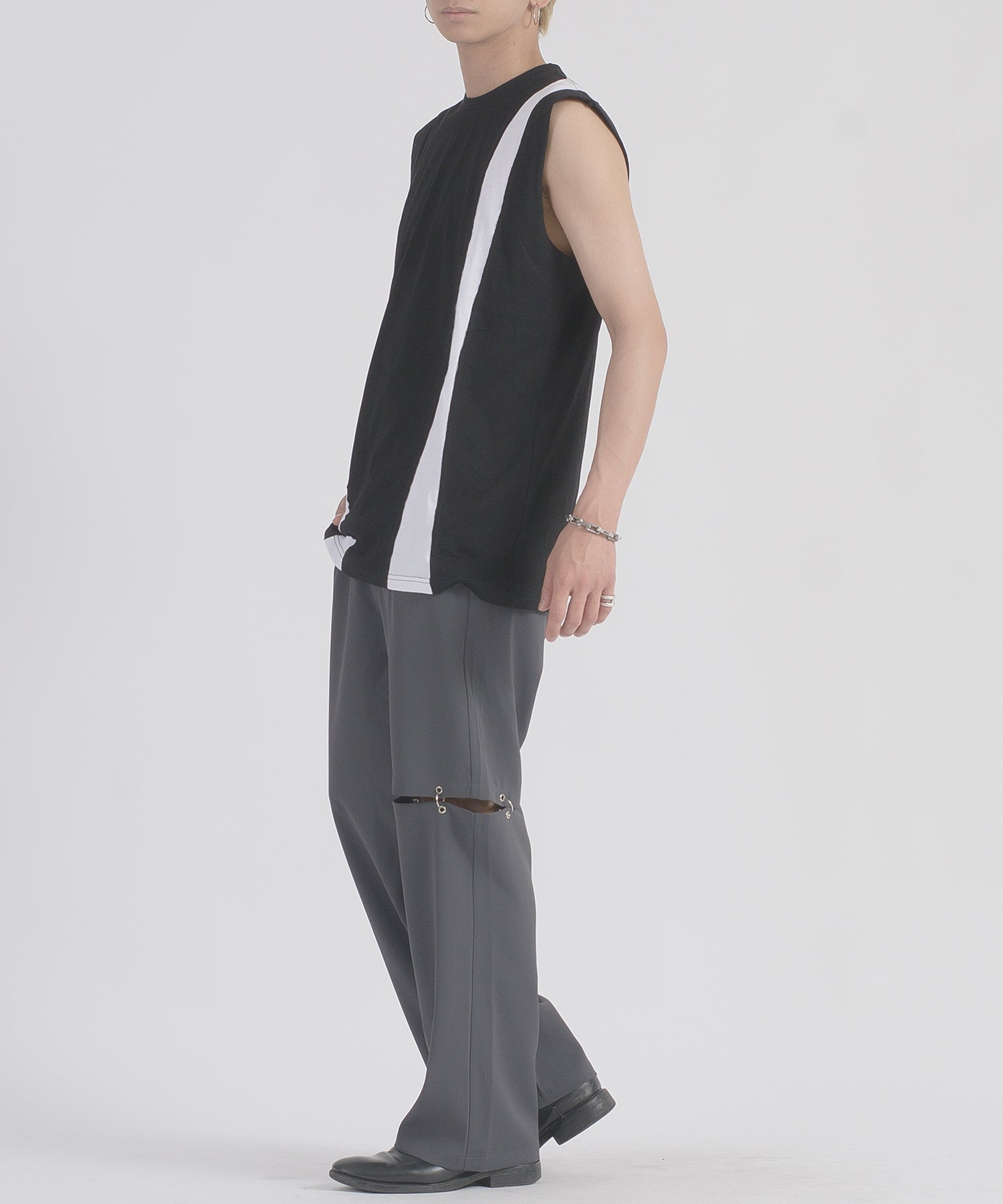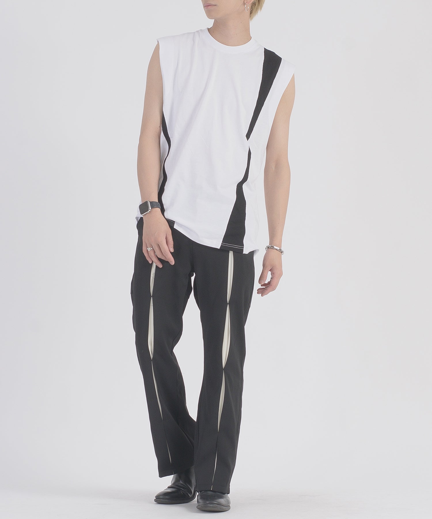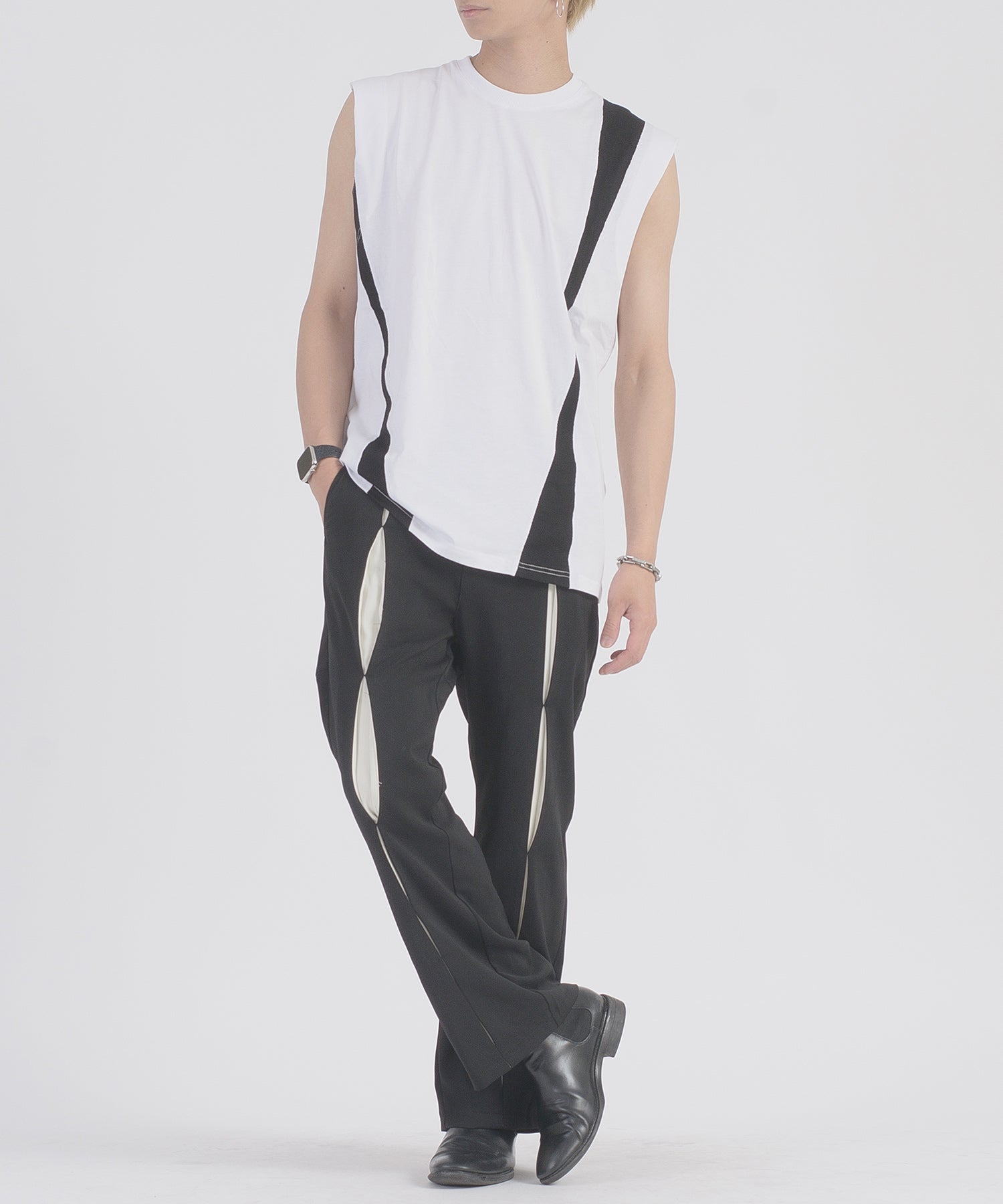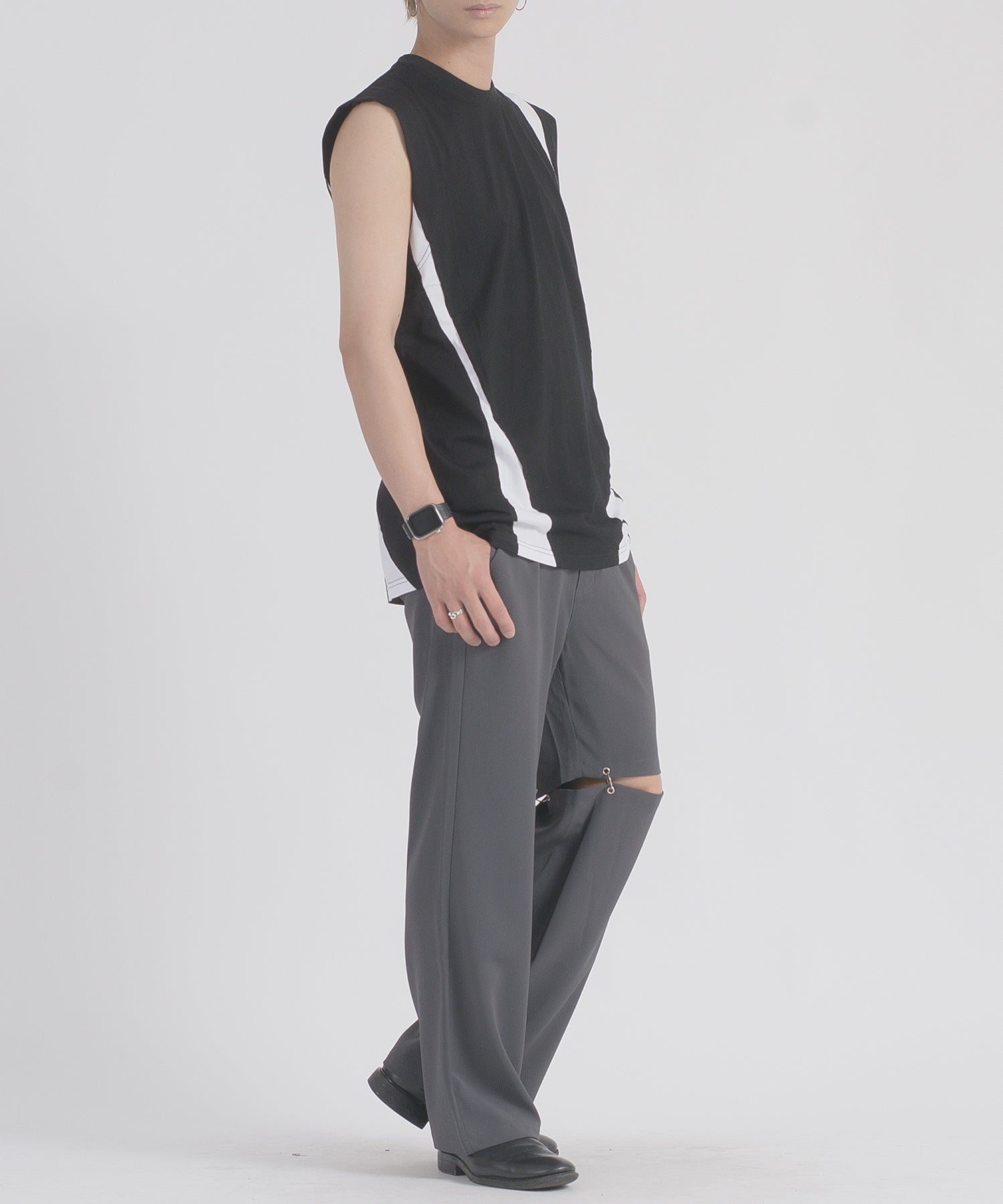 スポーティな印象の強いノースリーブですが、ゆとりのあるシルエットとクールな切り替えがスマートな印象を感じさせます。