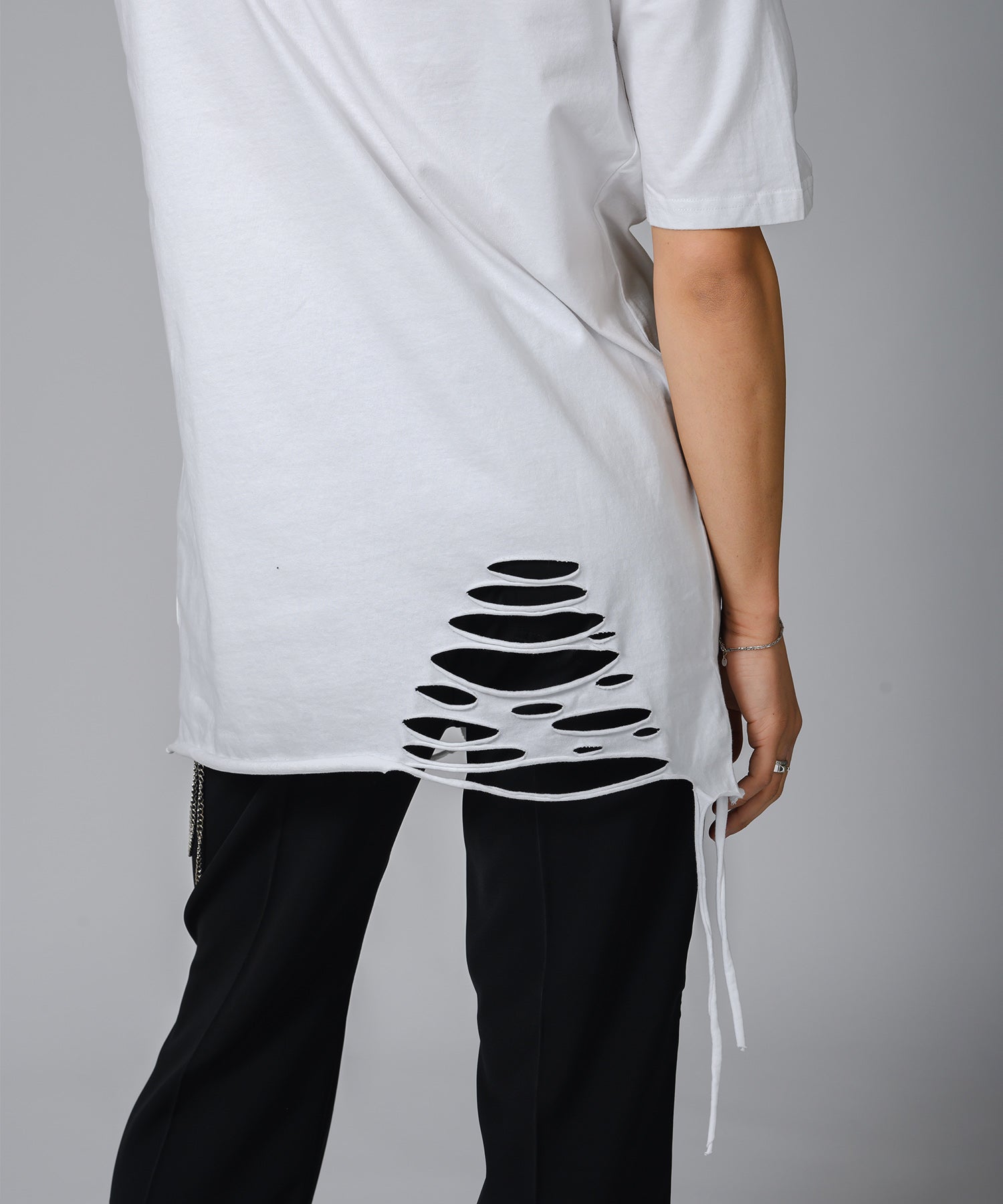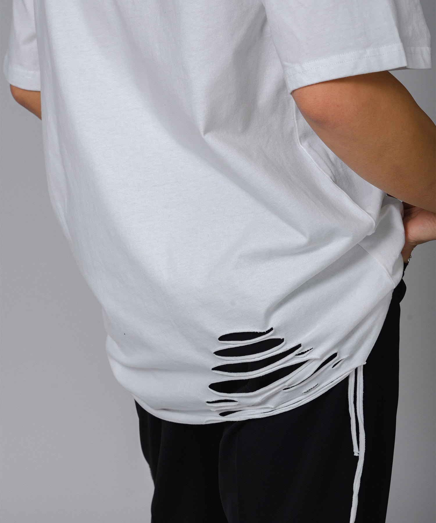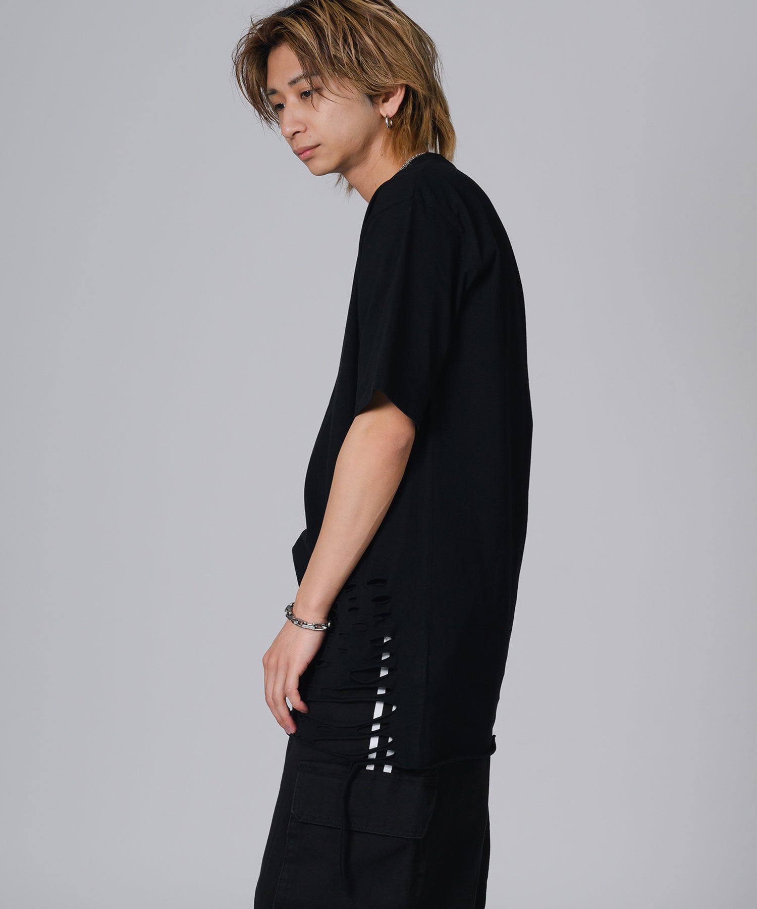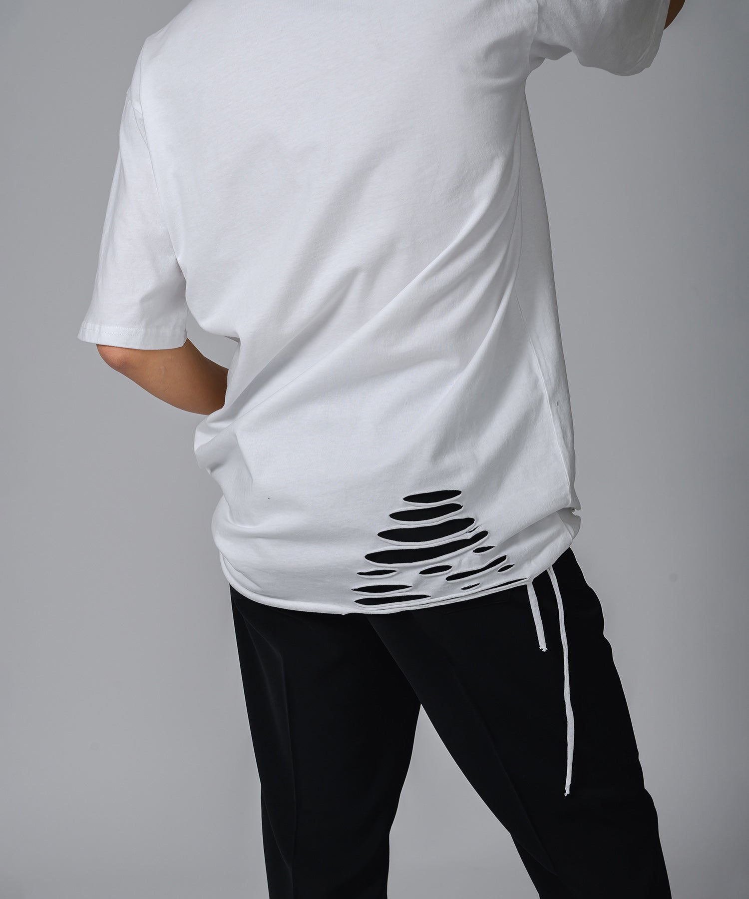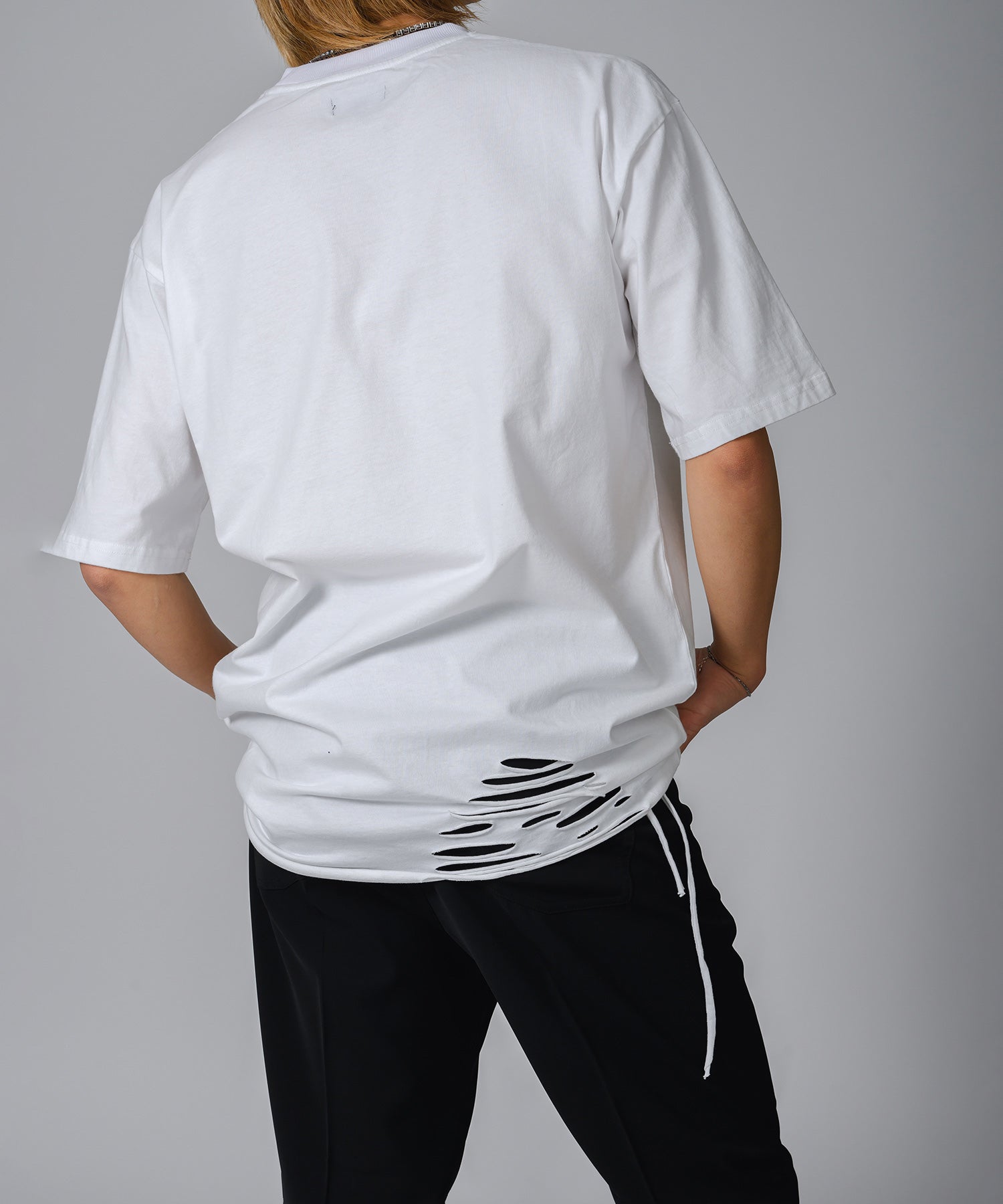 裾にダメージ加工したグランジスタイルのTシャツです。