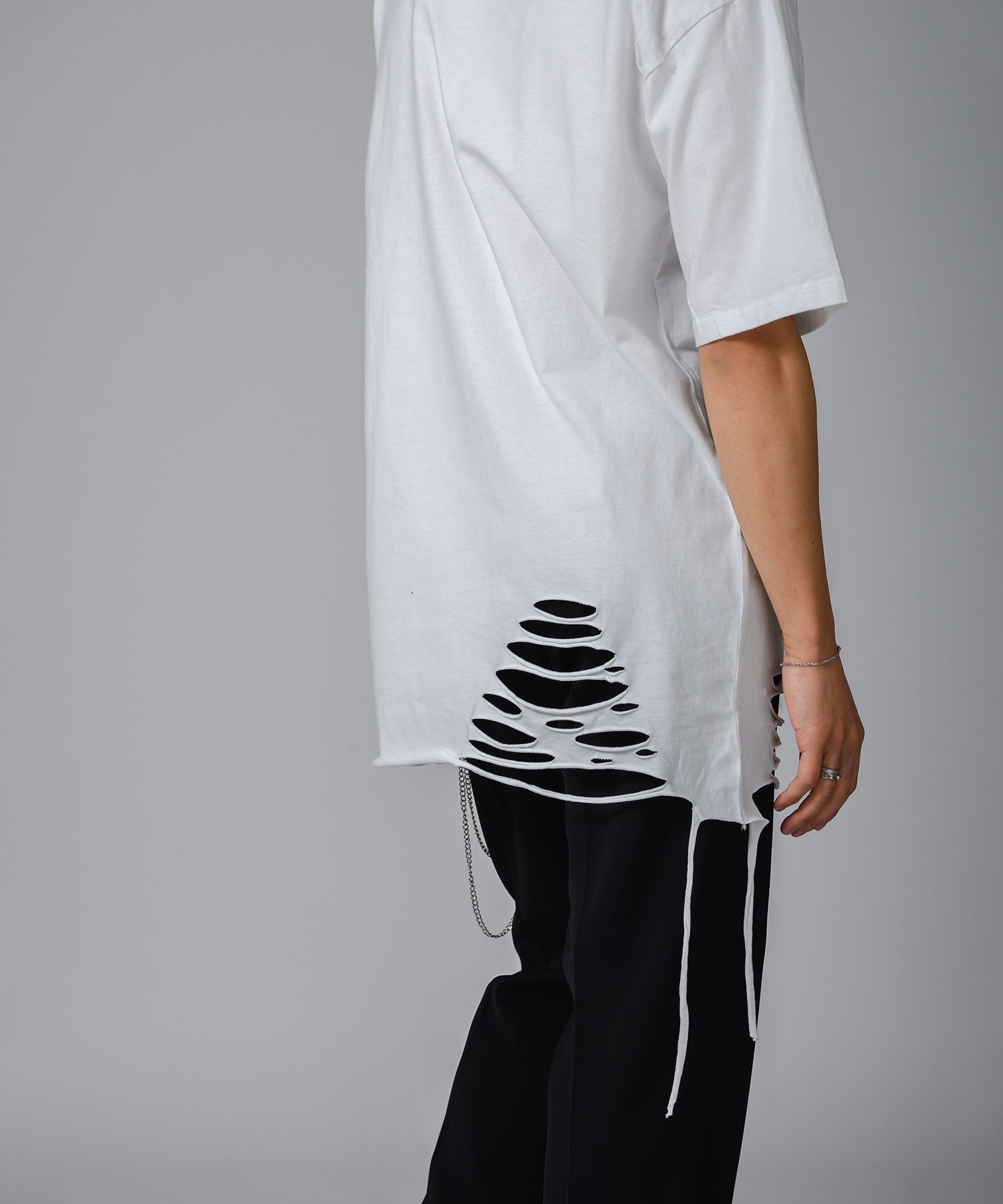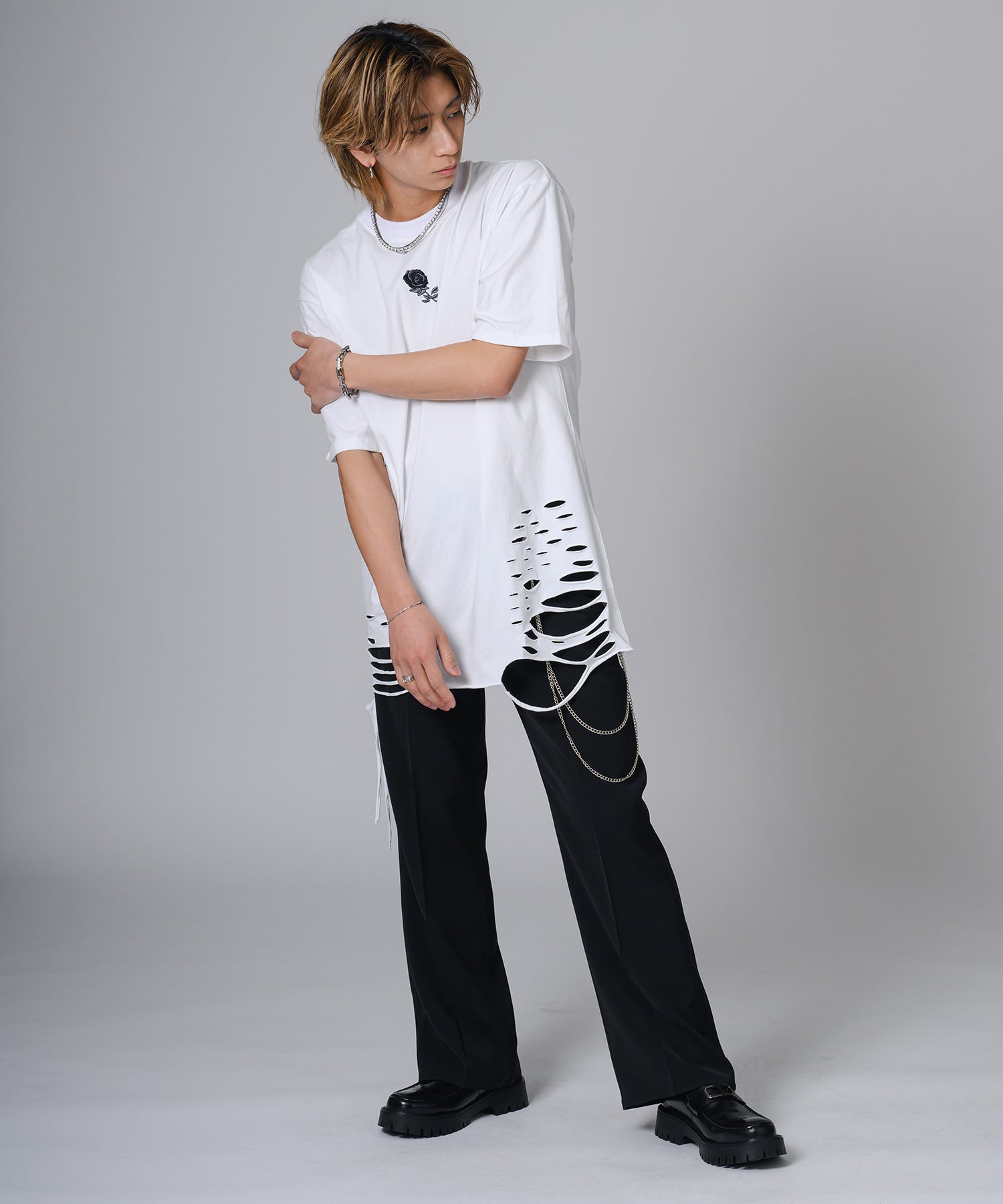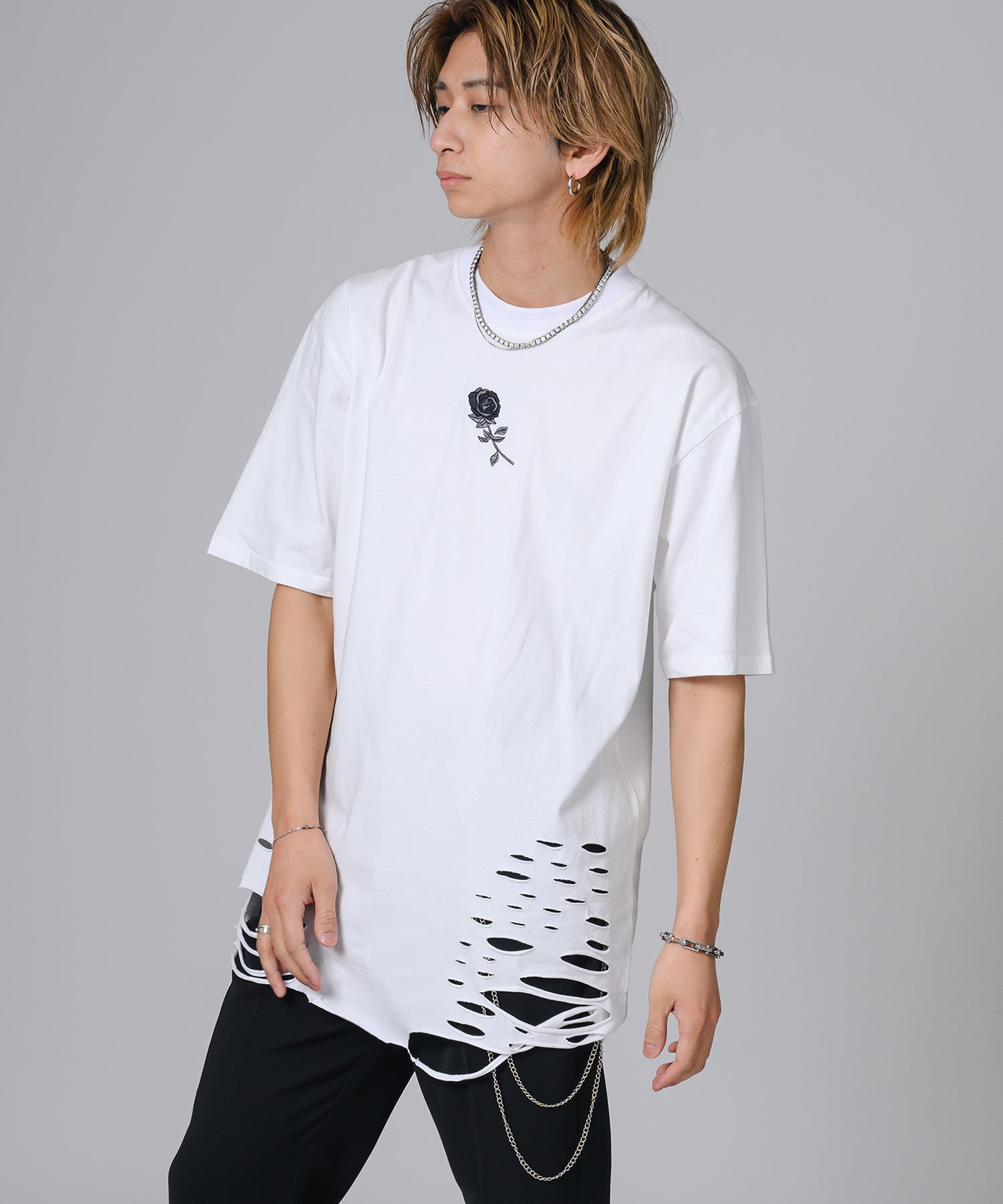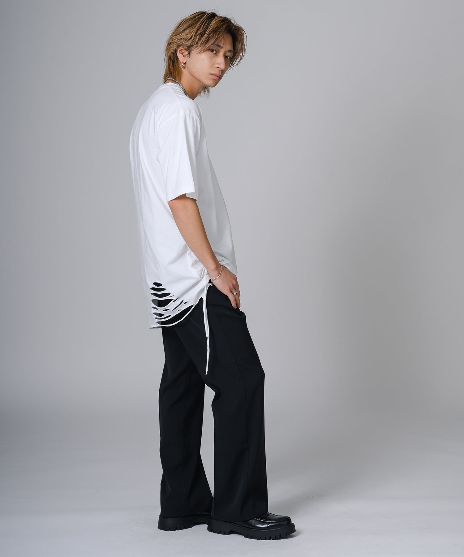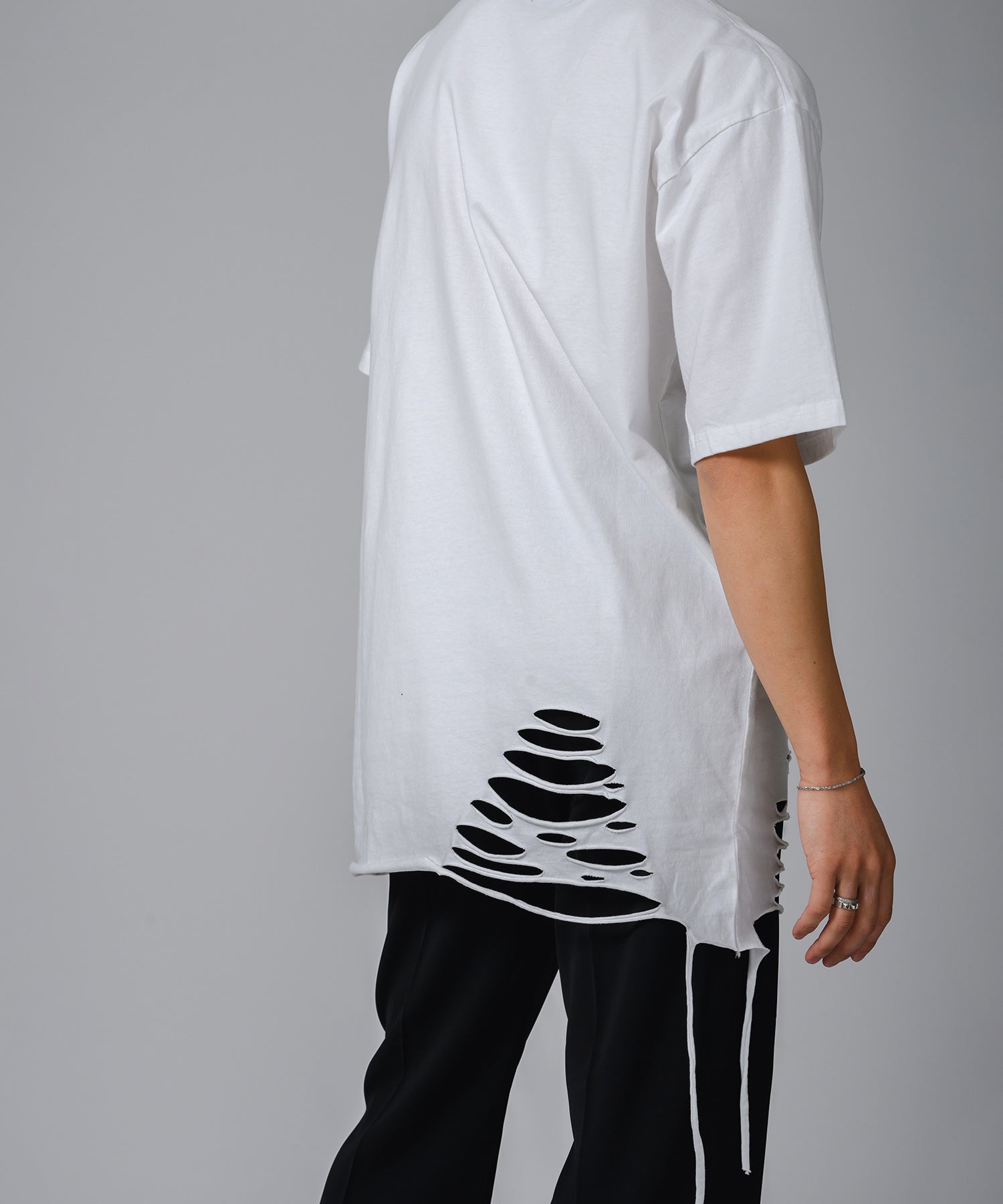 裾にダメージ加工したグランジスタイルのTシャツです。
