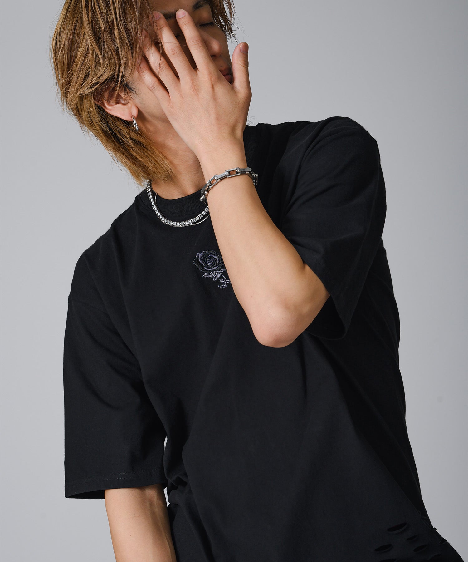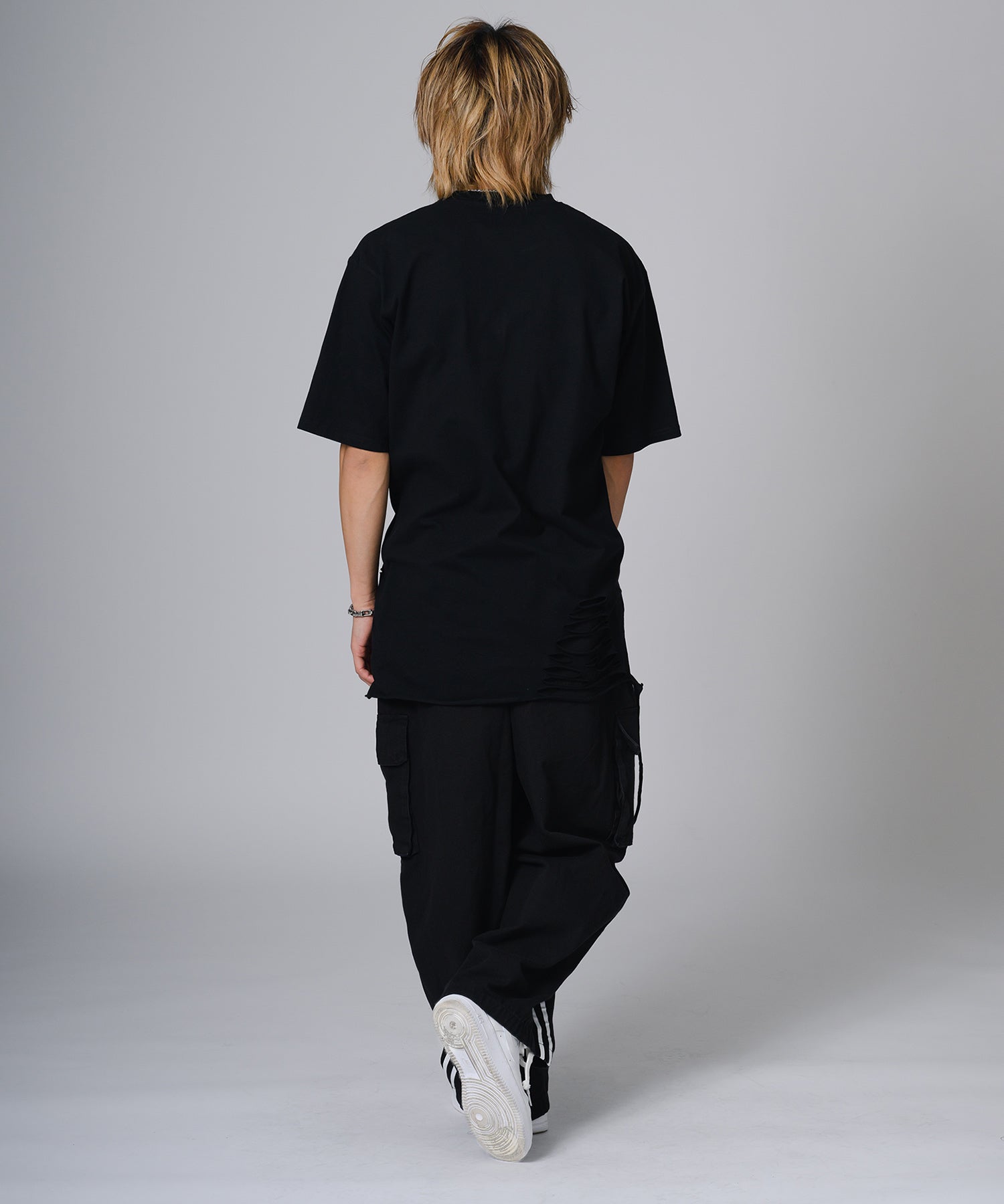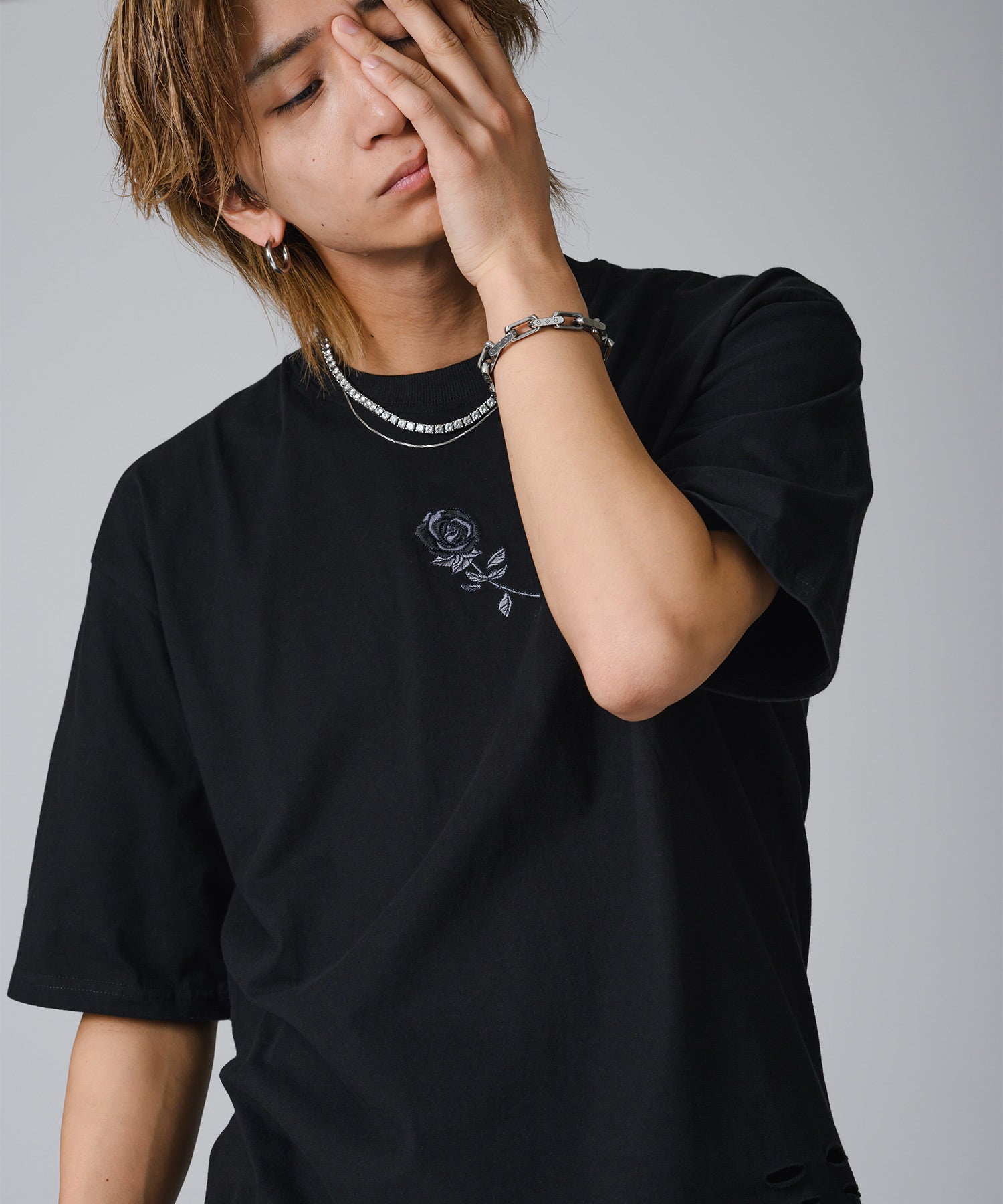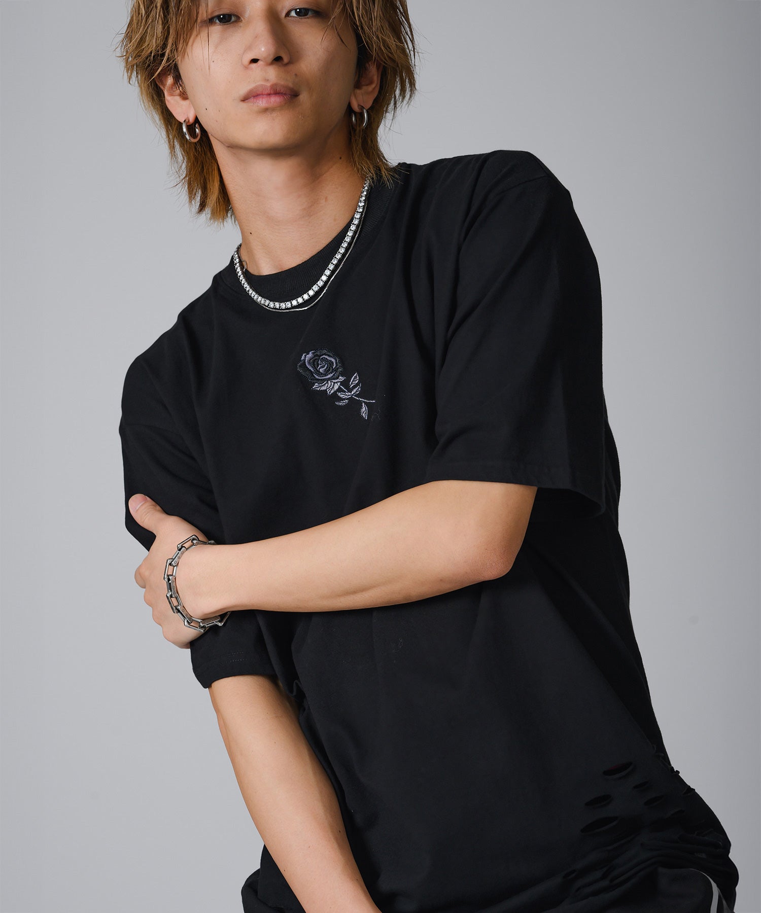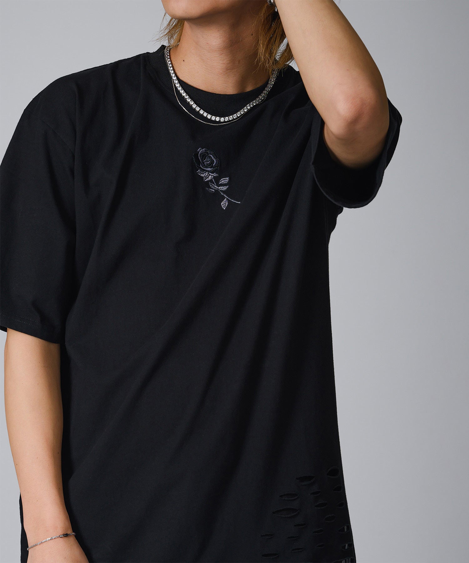 裾にダメージ加工したグランジスタイルのTシャツです。