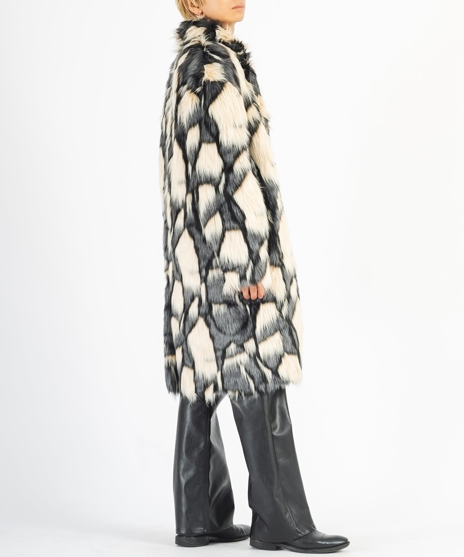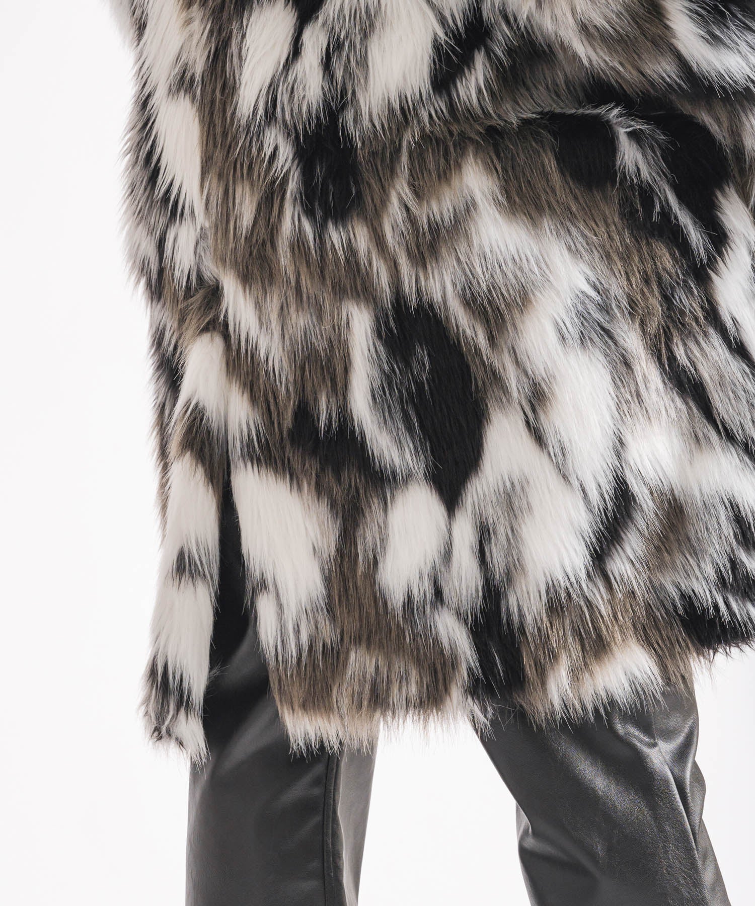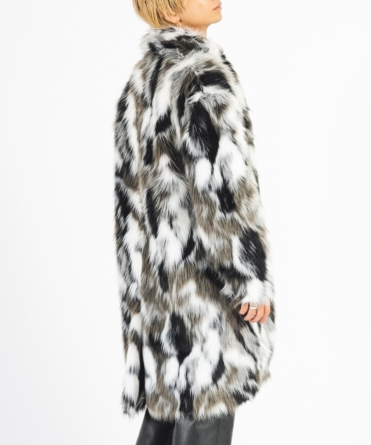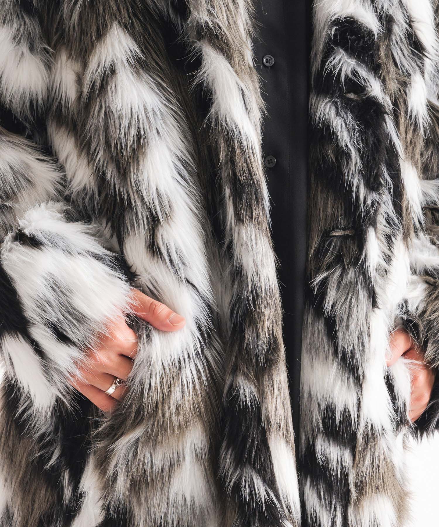 毛足の長いポリエステルのファーは、一本一本の繊維が細く滑らかな光沢感があり、エアリーな質感が暖かさとフワフワの肌触りの気持ちよさを実現しています。