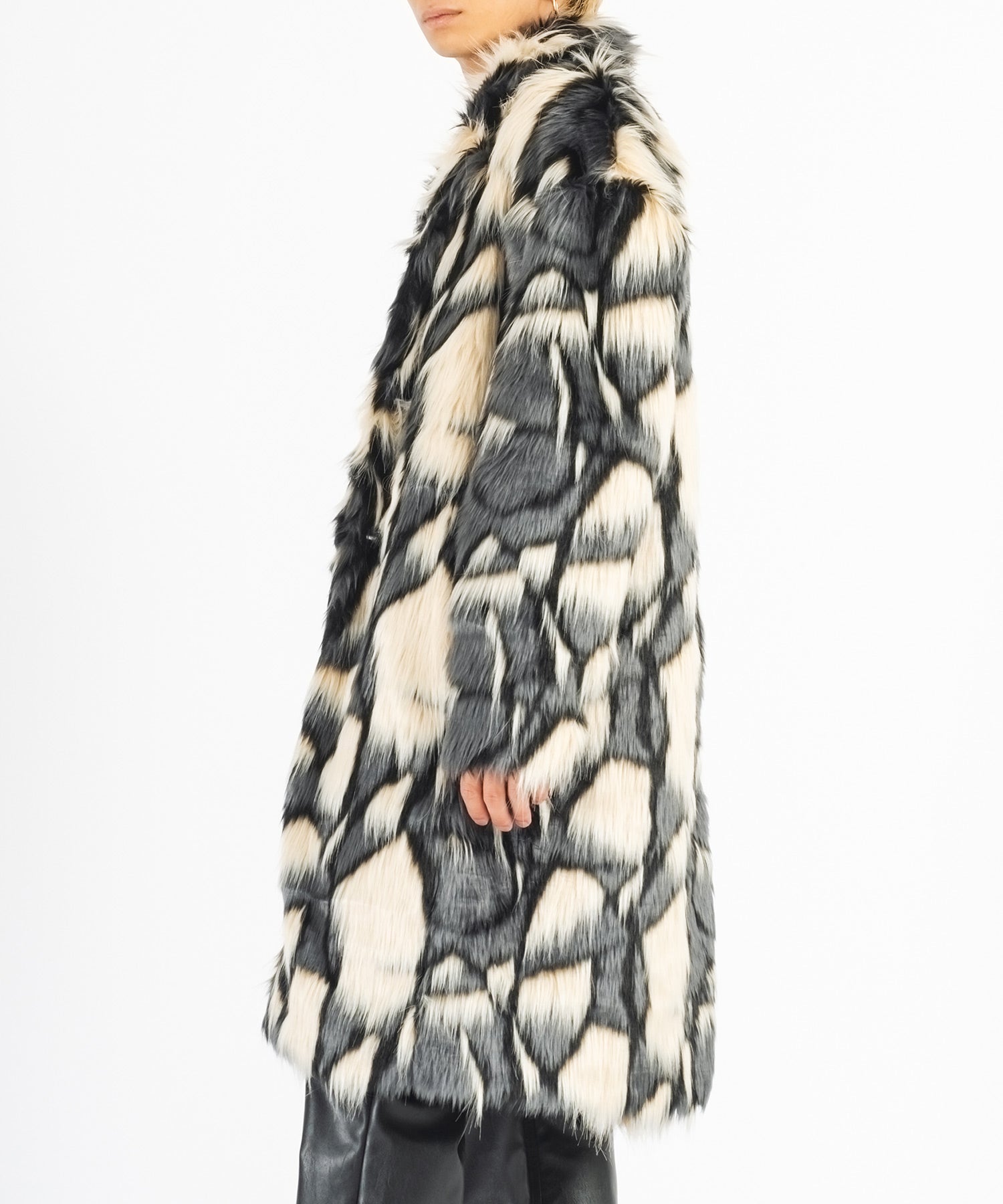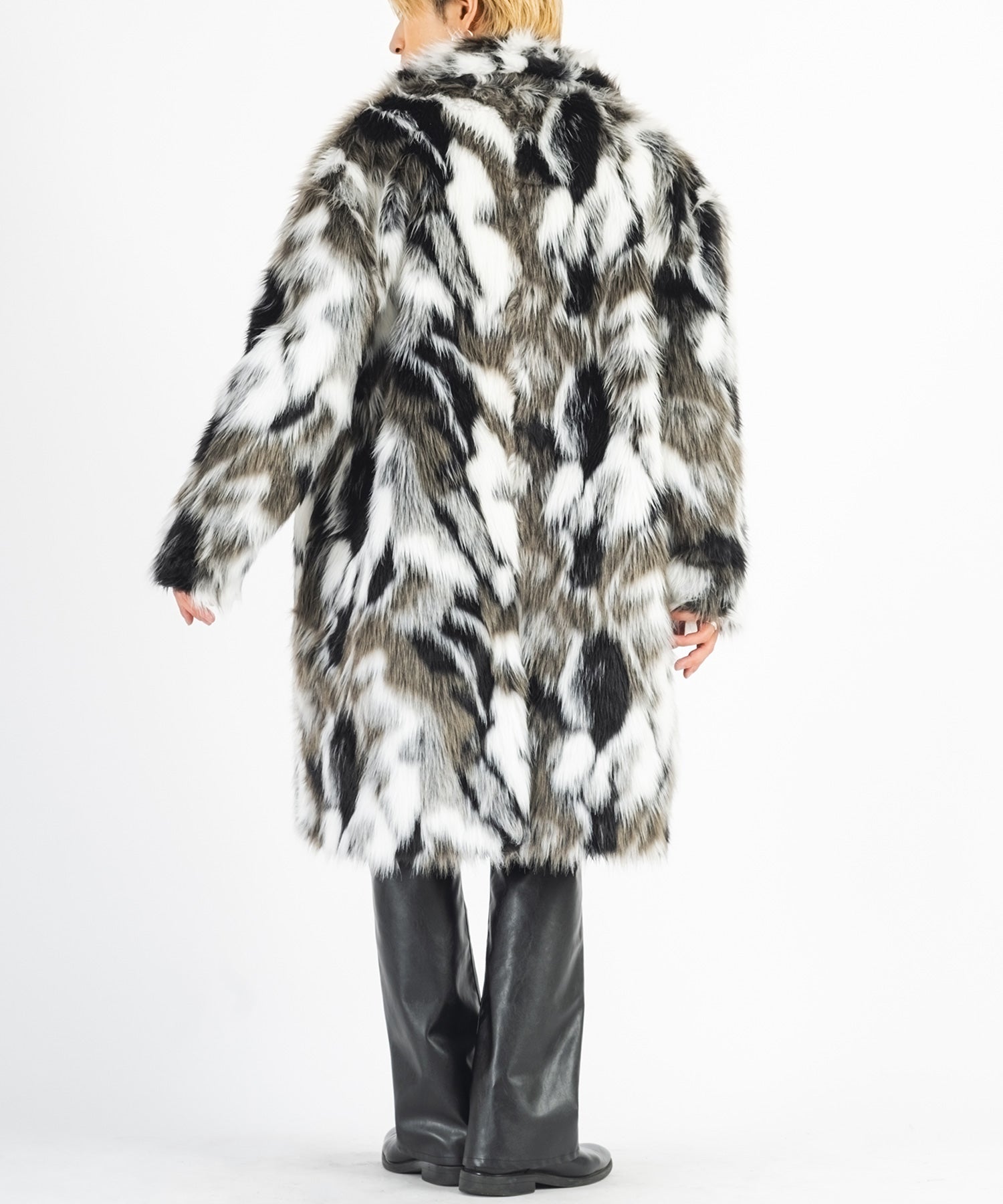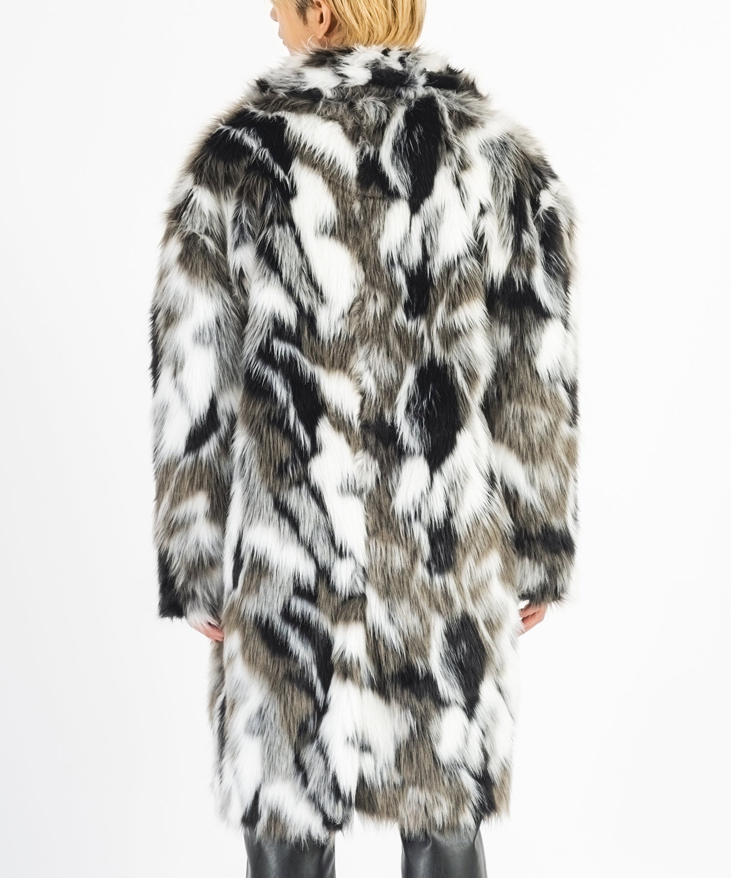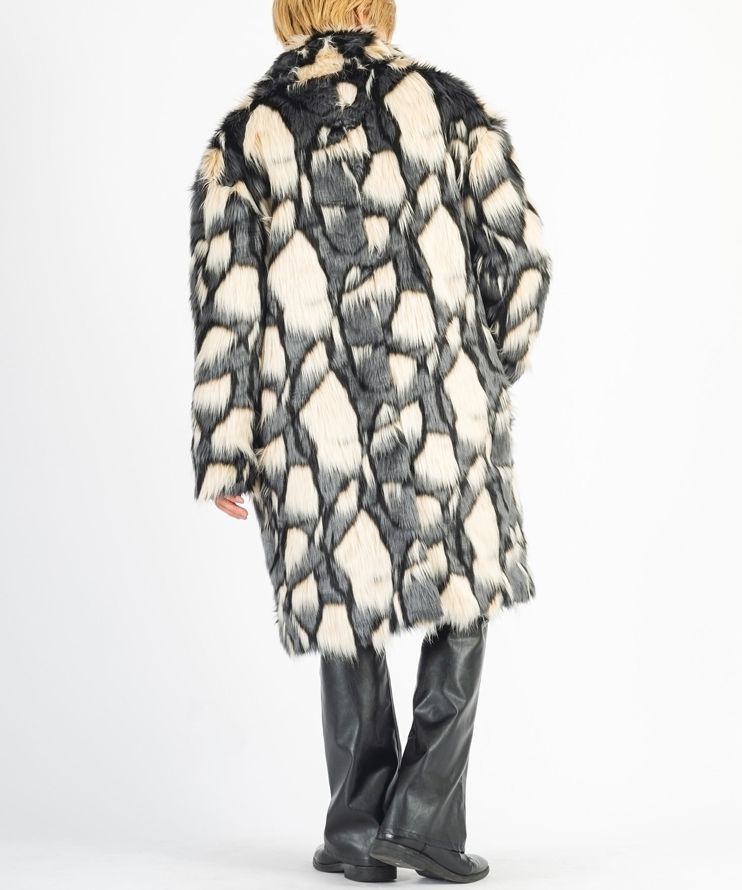 毛足の長いポリエステルのファーは、一本一本の繊維が細く滑らかな光沢感があり、エアリーな質感が暖かさとフワフワの肌触りの気持ちよさを実現しています。