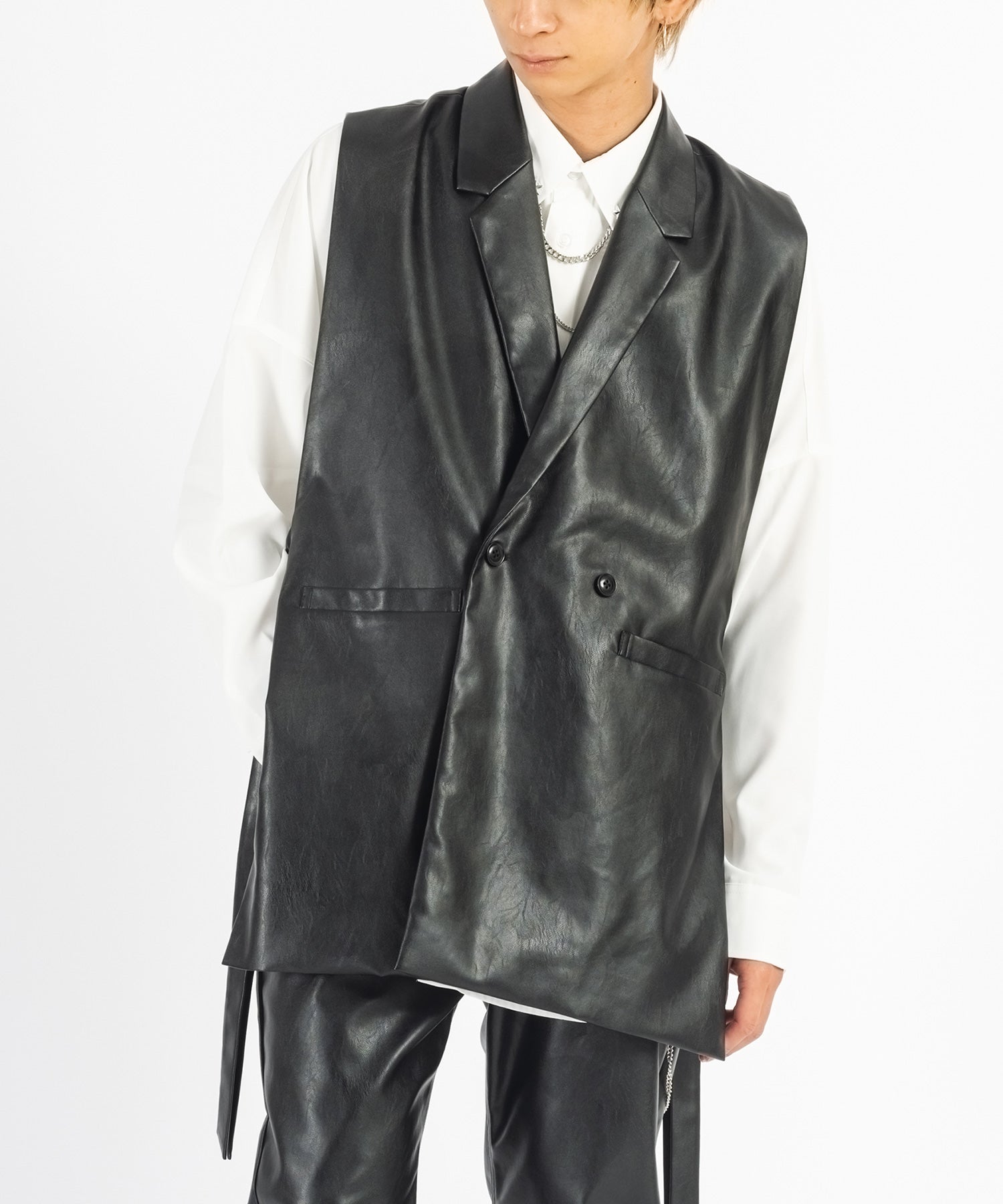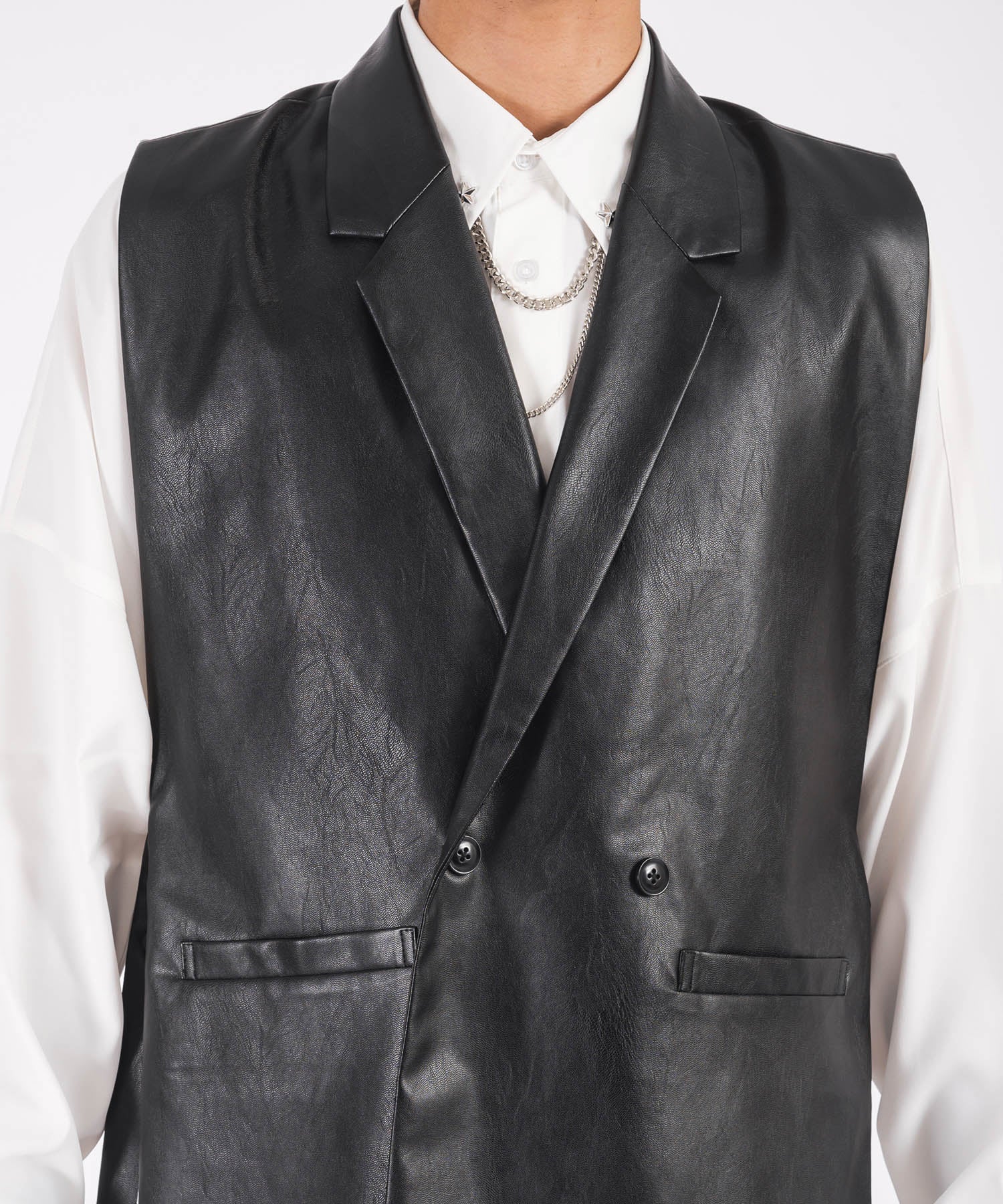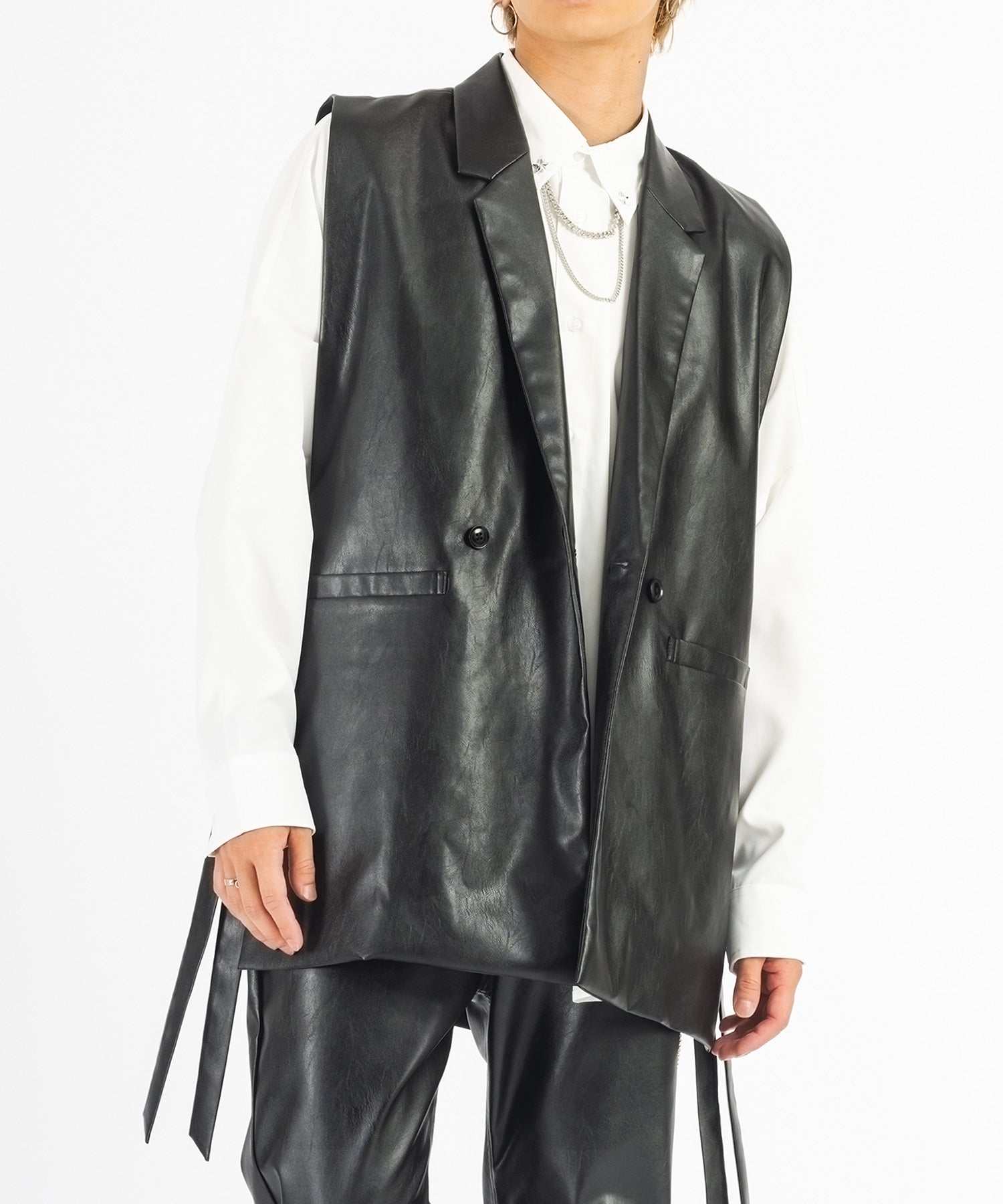 ダブルの2つボタンでテーラードジャケットの様なラペルを備えているので、言わば袖なしのジャケットとも言えます。