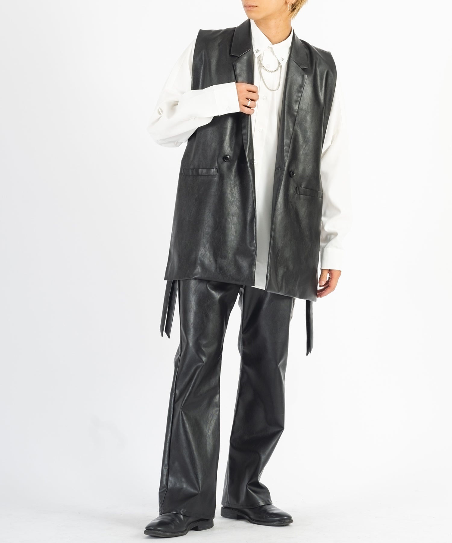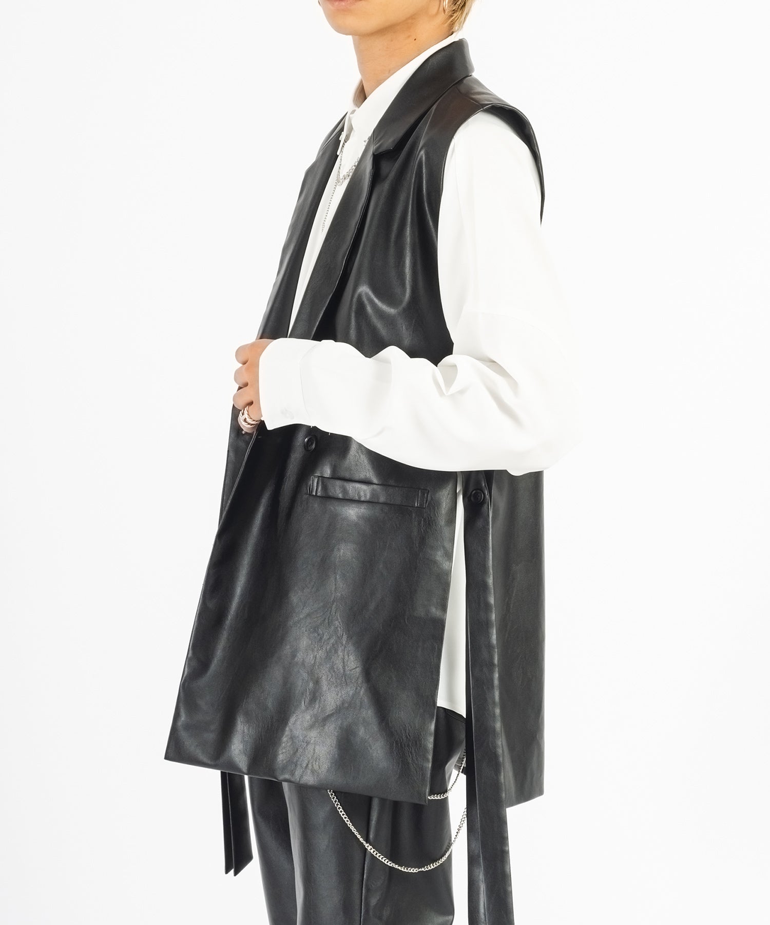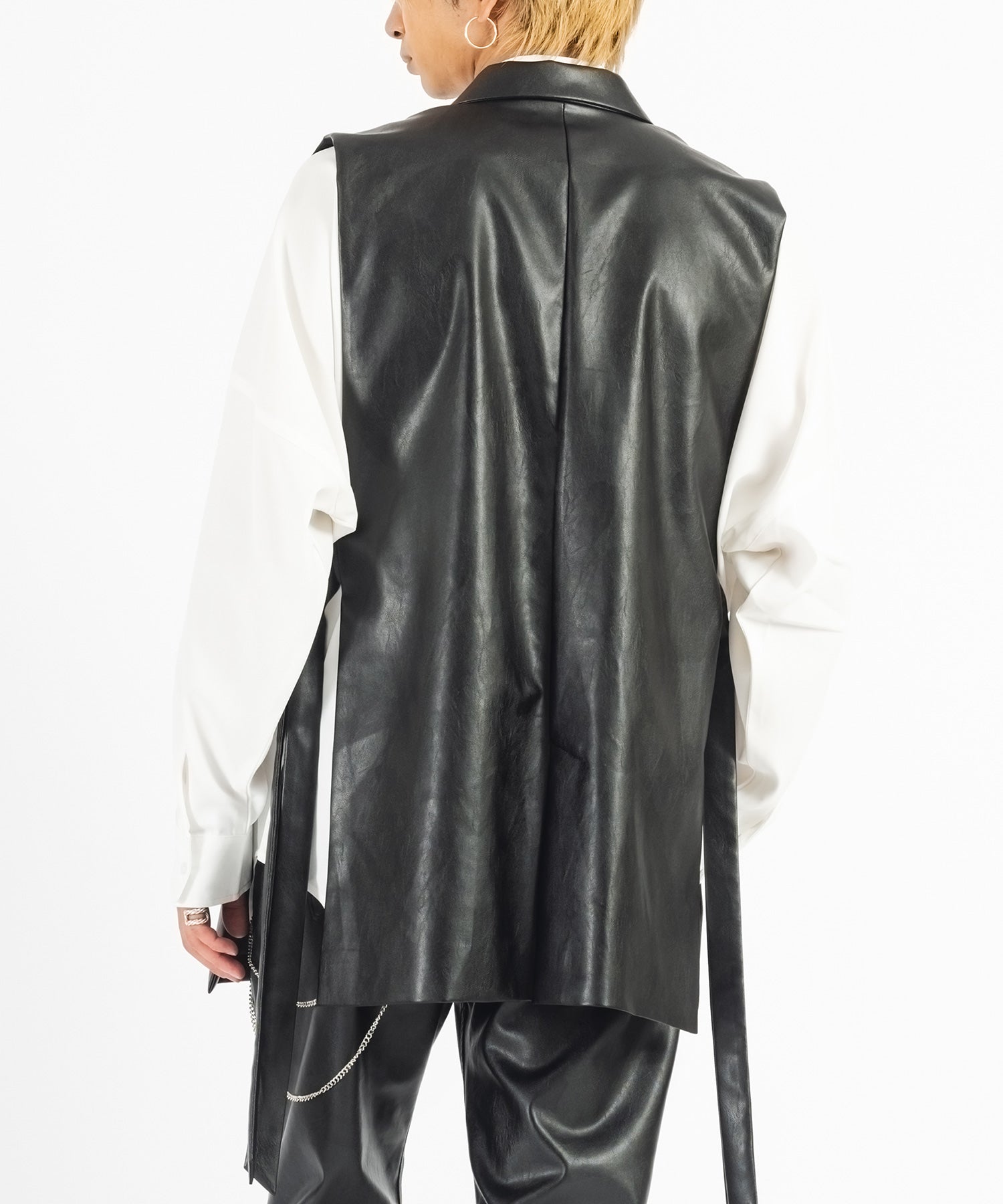 ダブルの2つボタンでテーラードジャケットの様なラペルを備えているので、言わば袖なしのジャケットとも言えます。
