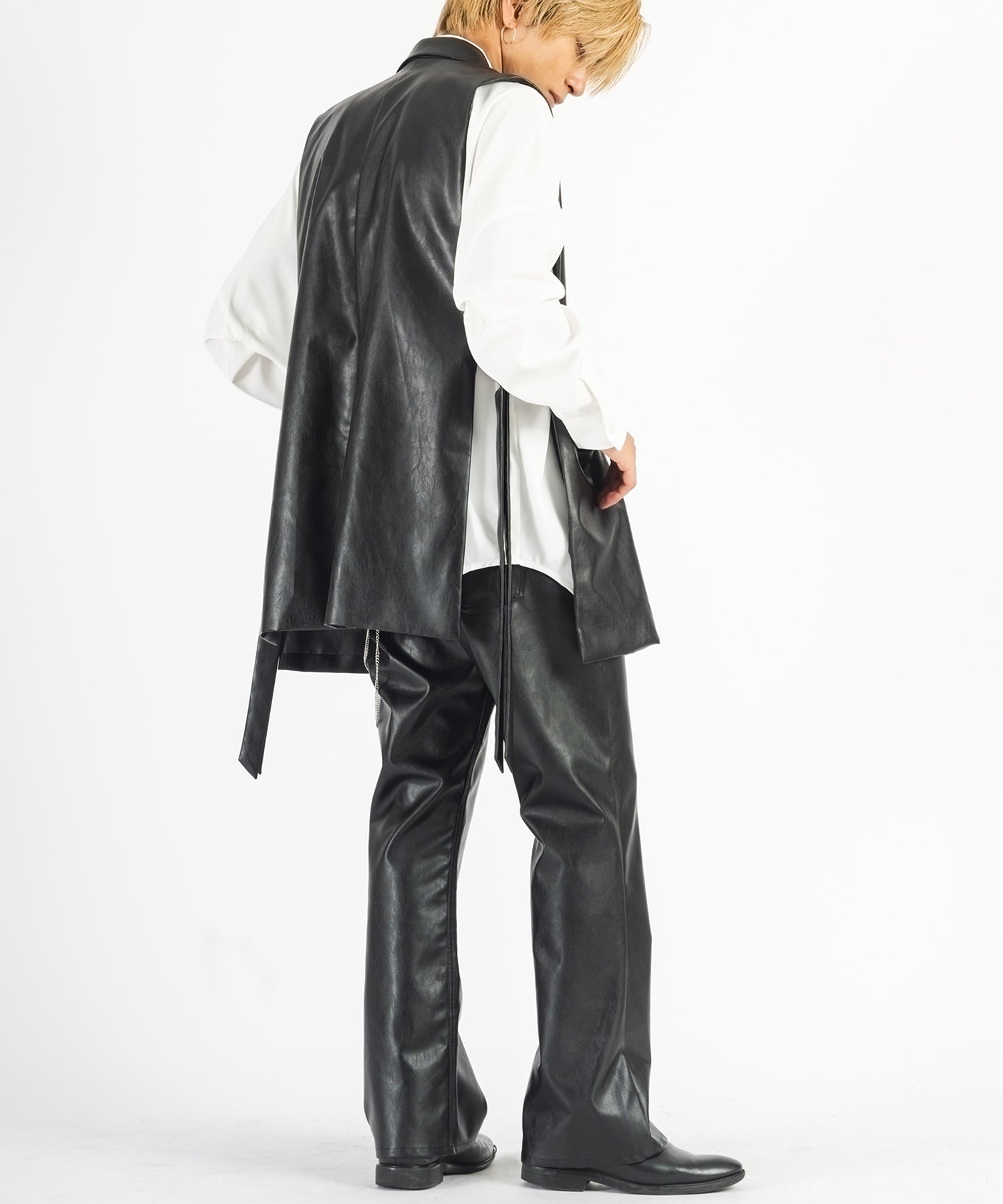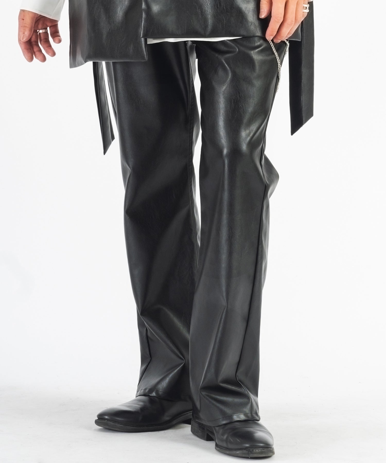 フェイクレザーフレアパンツ