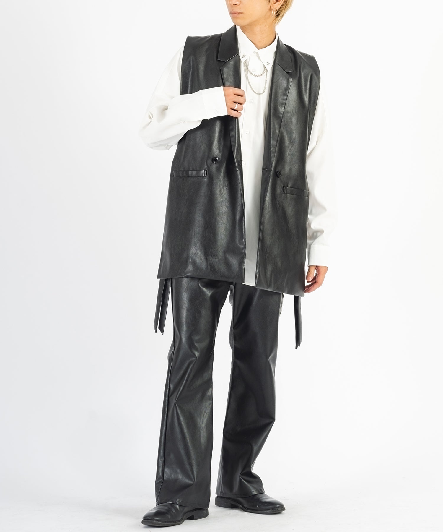 男らしくハードな雰囲気でも着回せ、同素材のジレとセットアップにしてかっこよく着こなすことも可能です。
