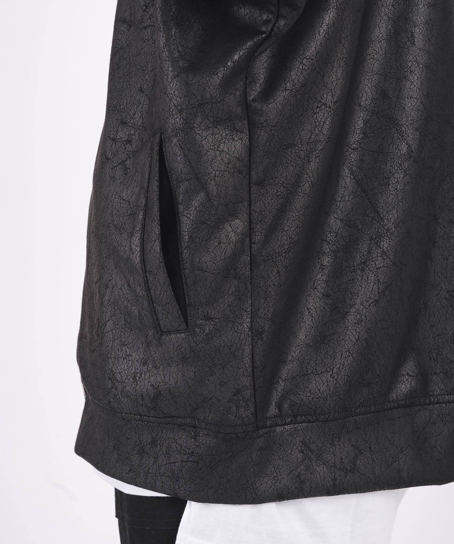 レザーの様な表面感を感じさせるプリントを施した生地は、ストレッチ性のあるポリエステル素材で、軽くて動きやすい素材です。