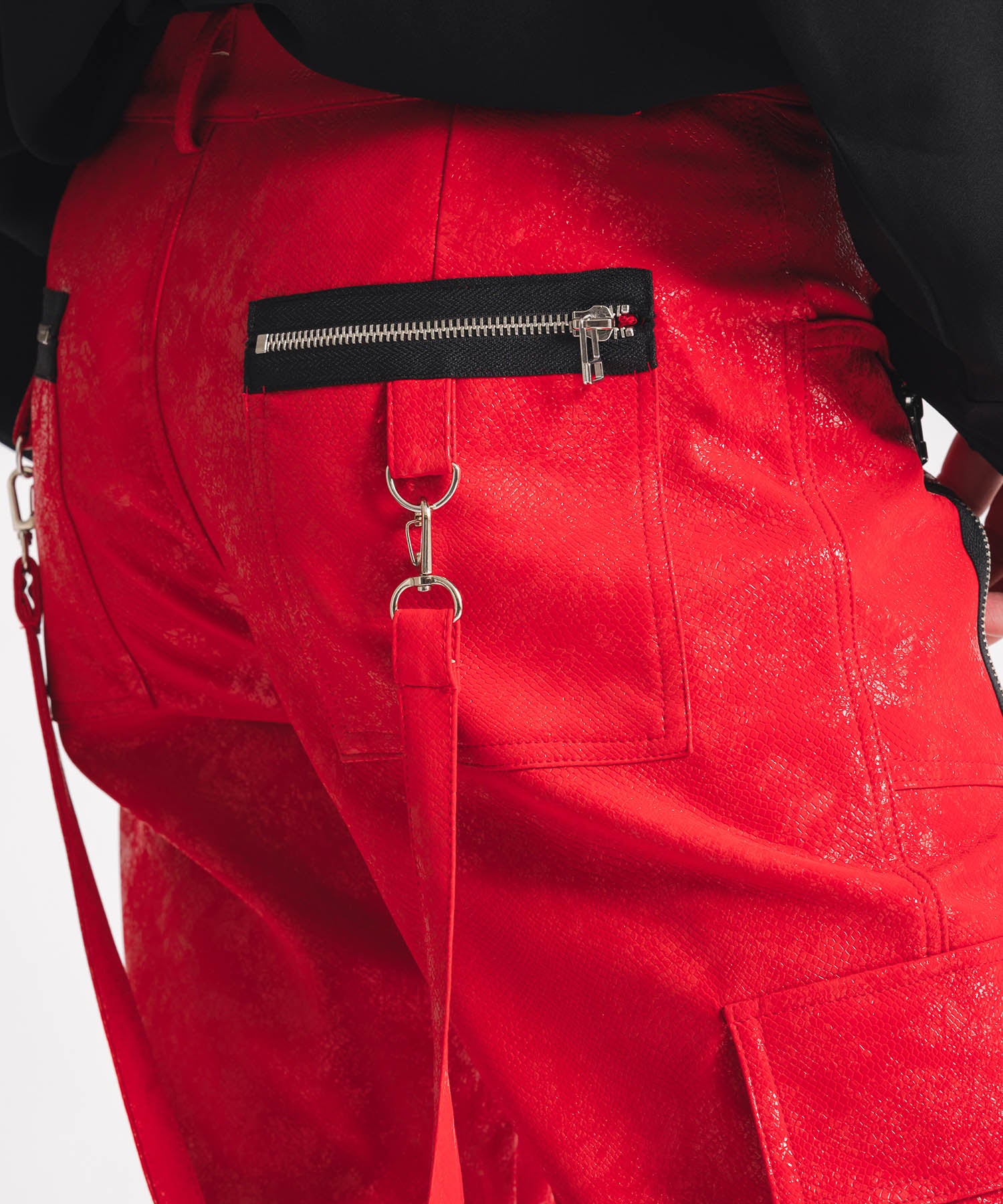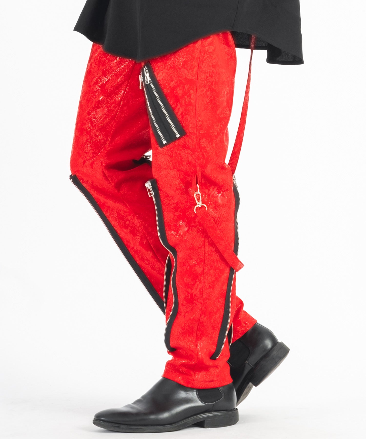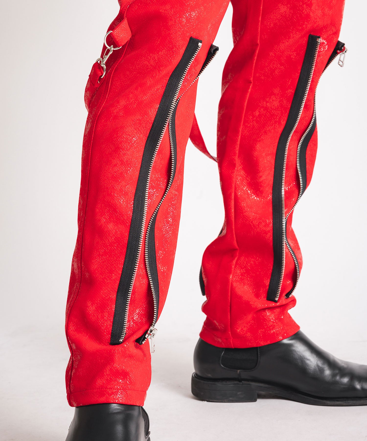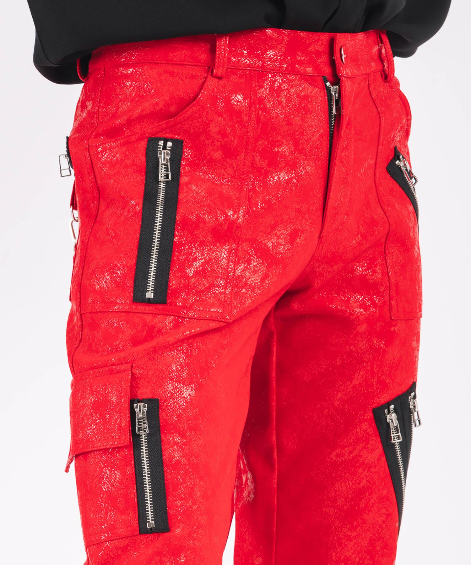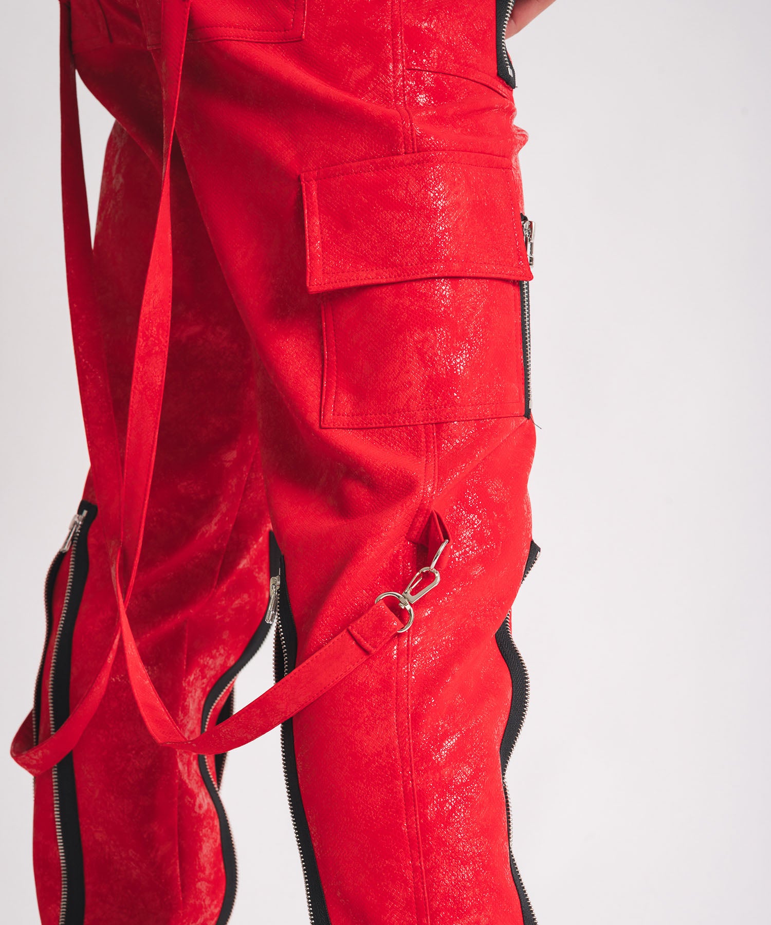 レザー調の素材とマッチしたタイトシルエットのボンテージパンツです。