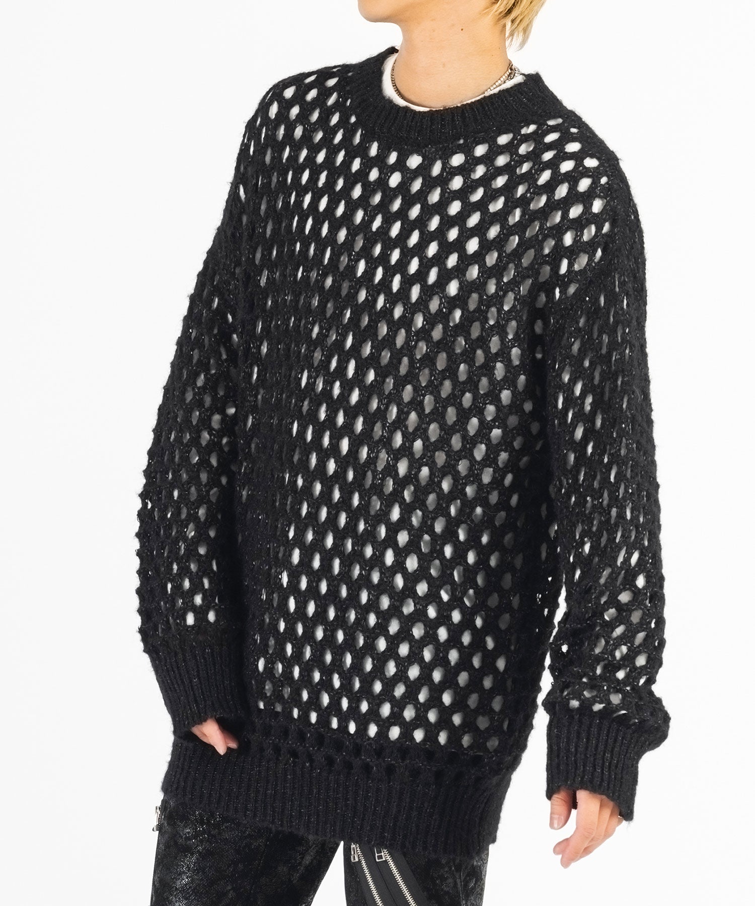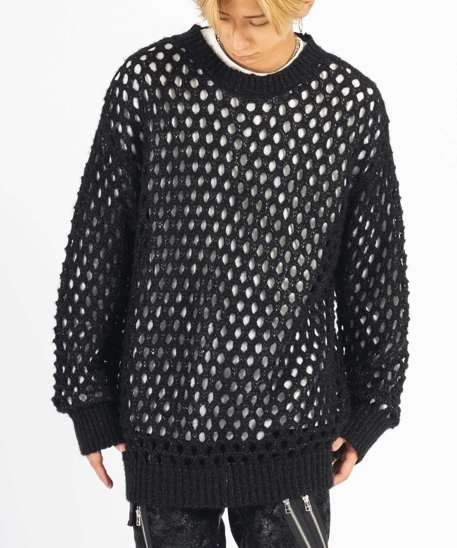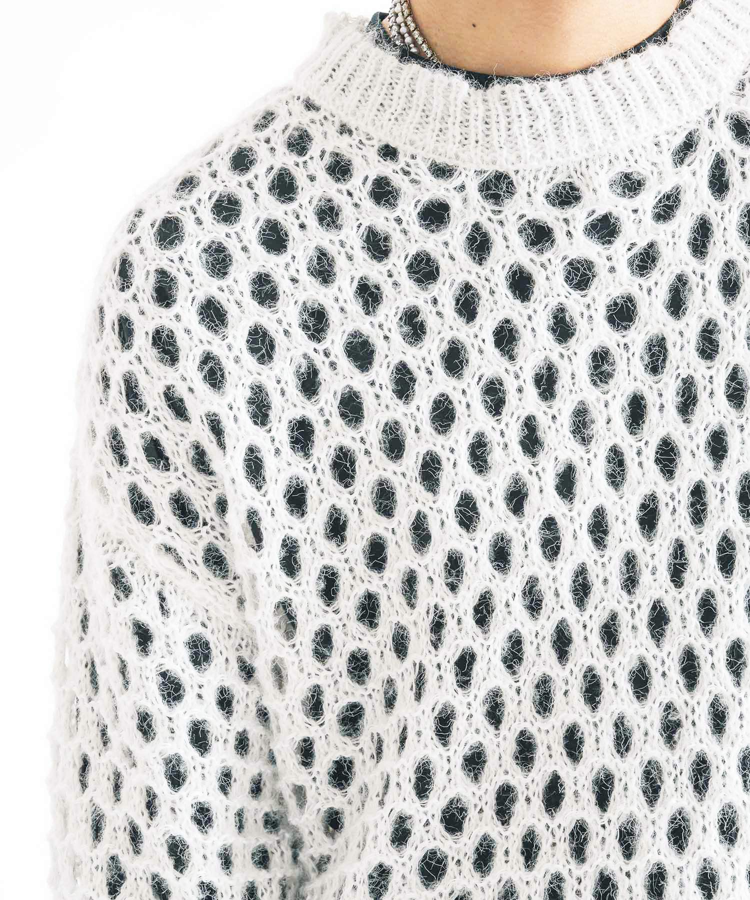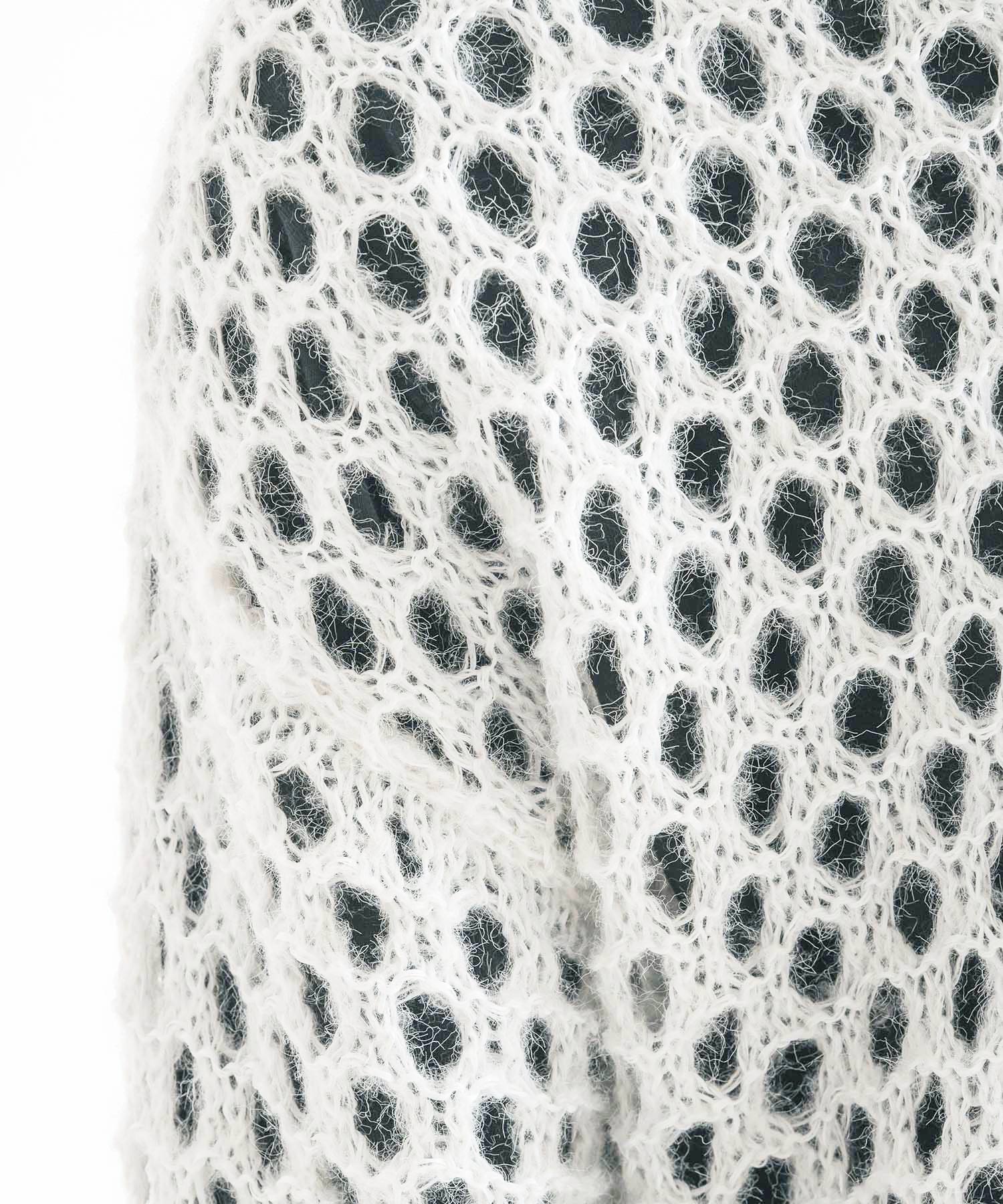 向こう側が見通せる程編み目を大きくしたニットと、インナーとして着られるロンTがセットになったアイテムです。