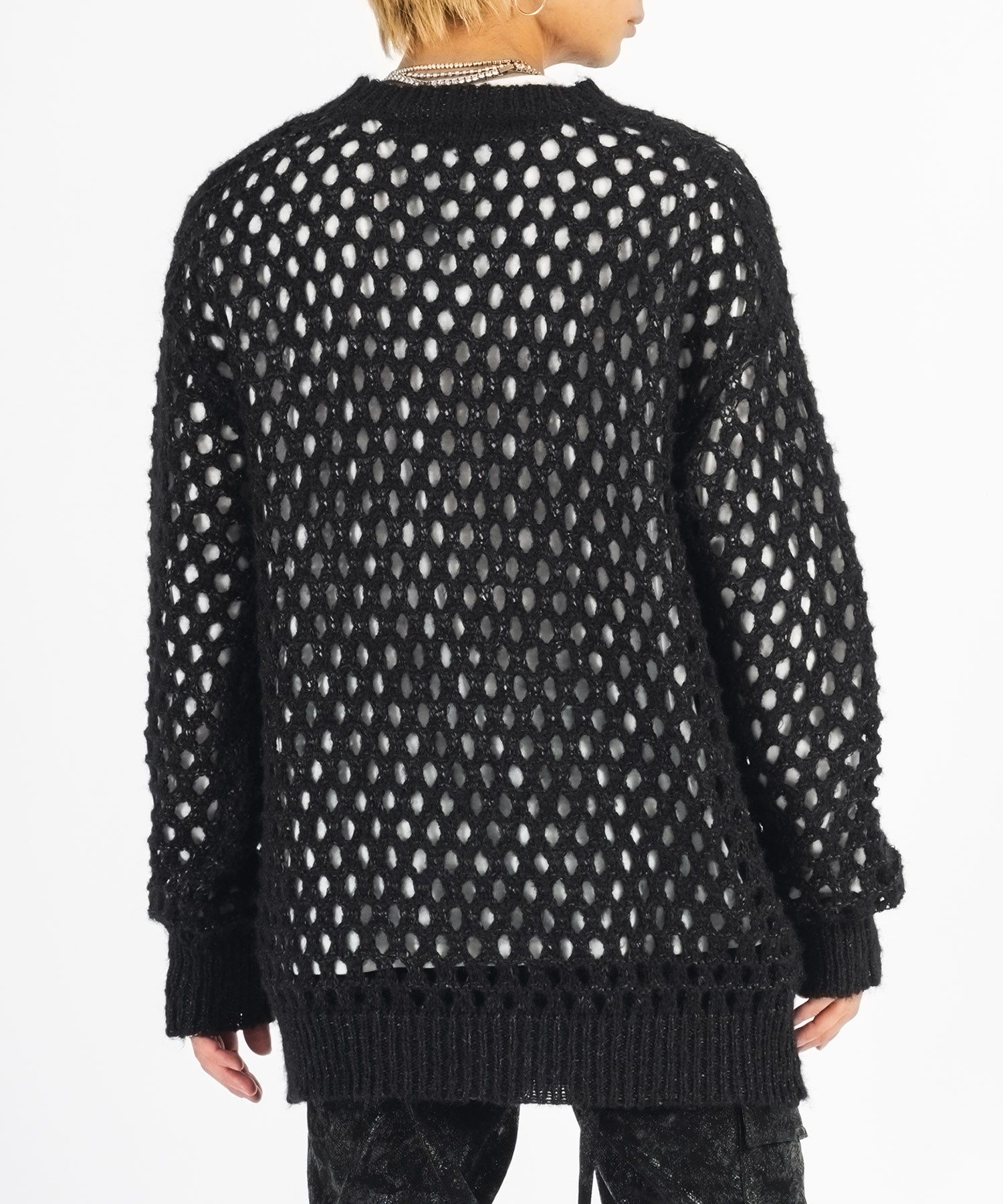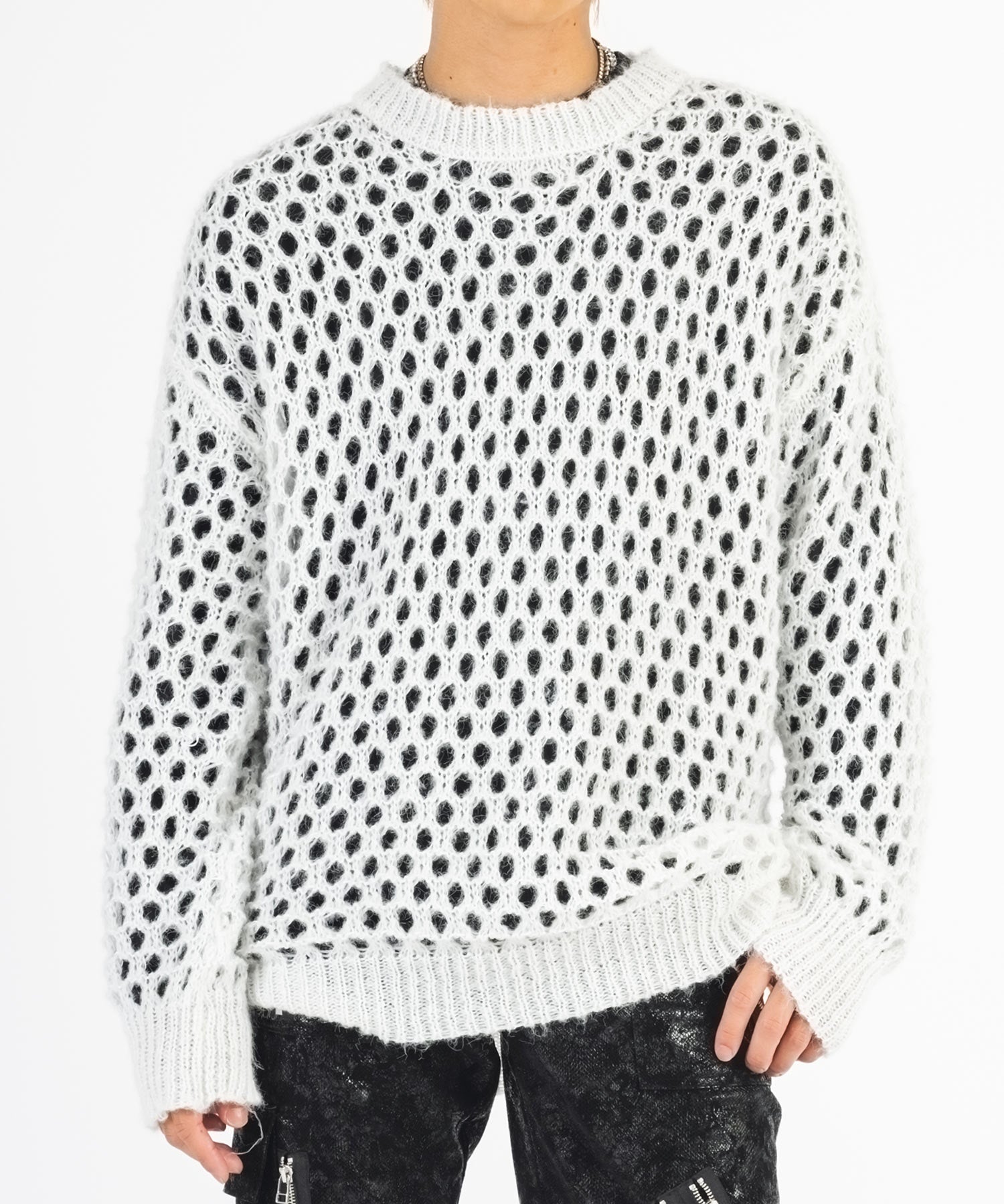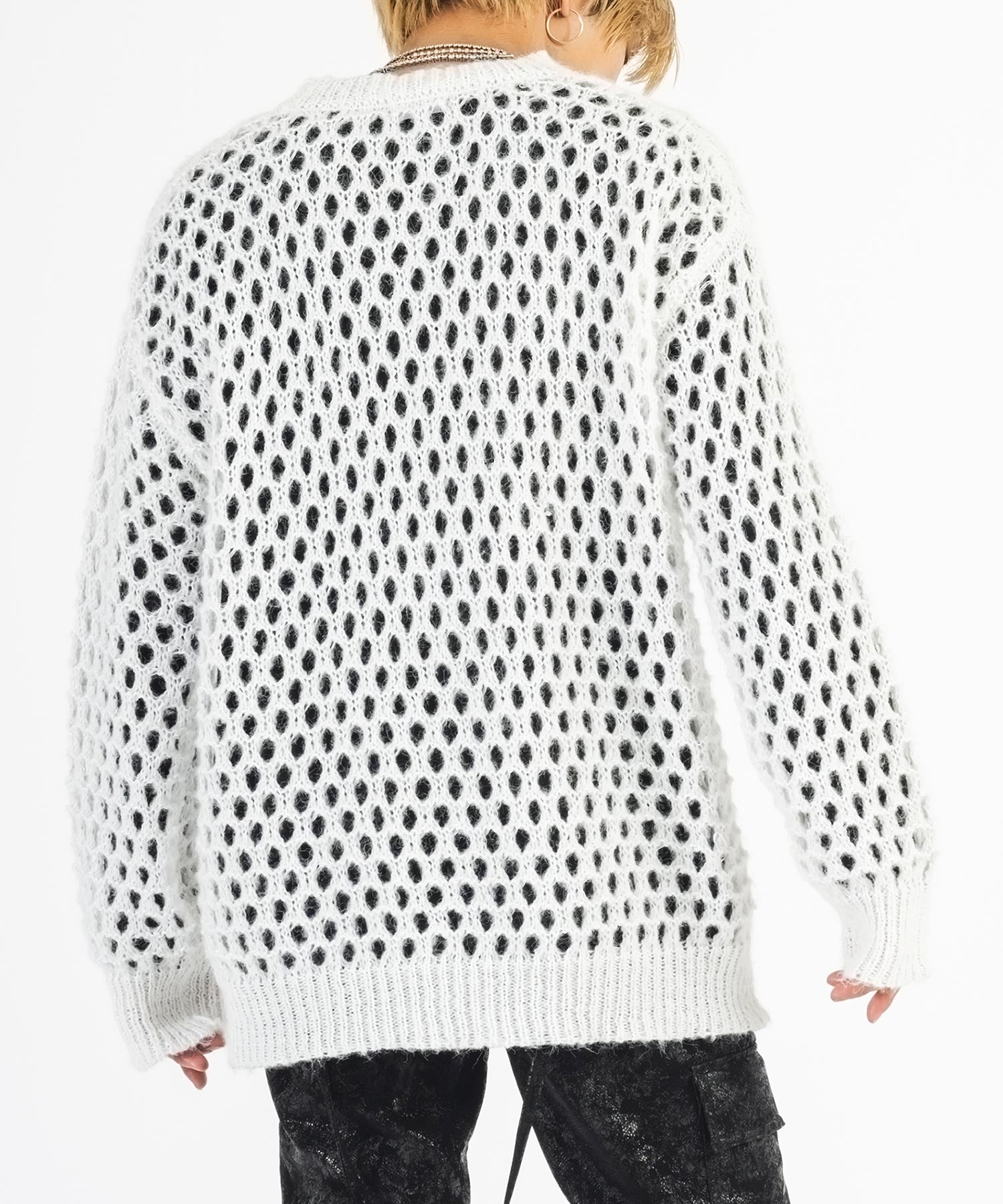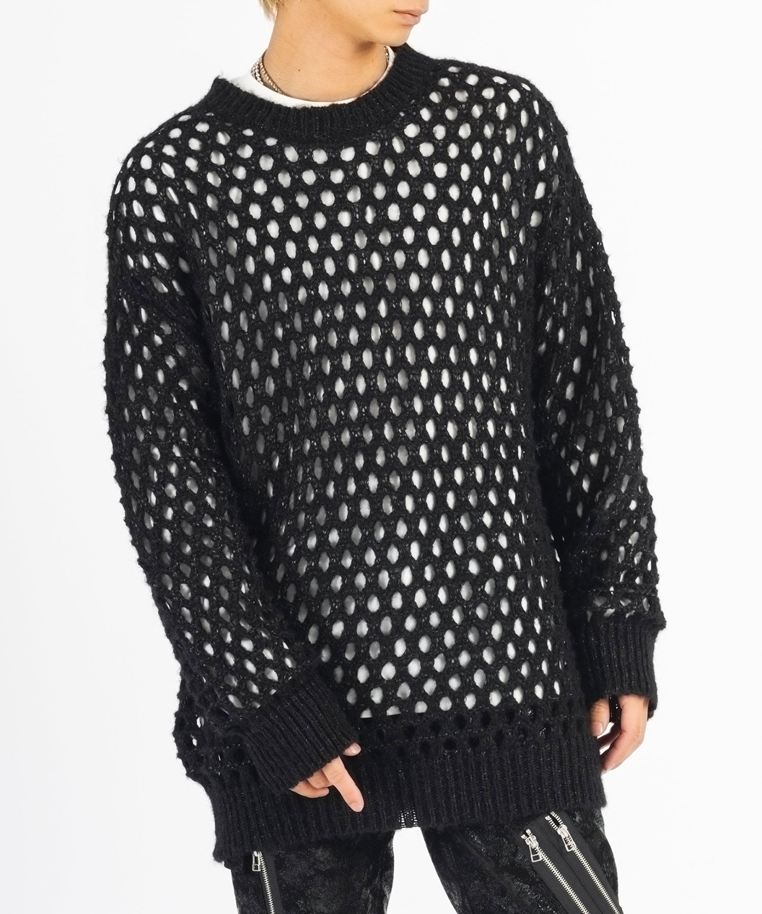 向こう側が見通せる程編み目を大きくしたニットと、インナーとして着られるロンTがセットになったアイテムです。