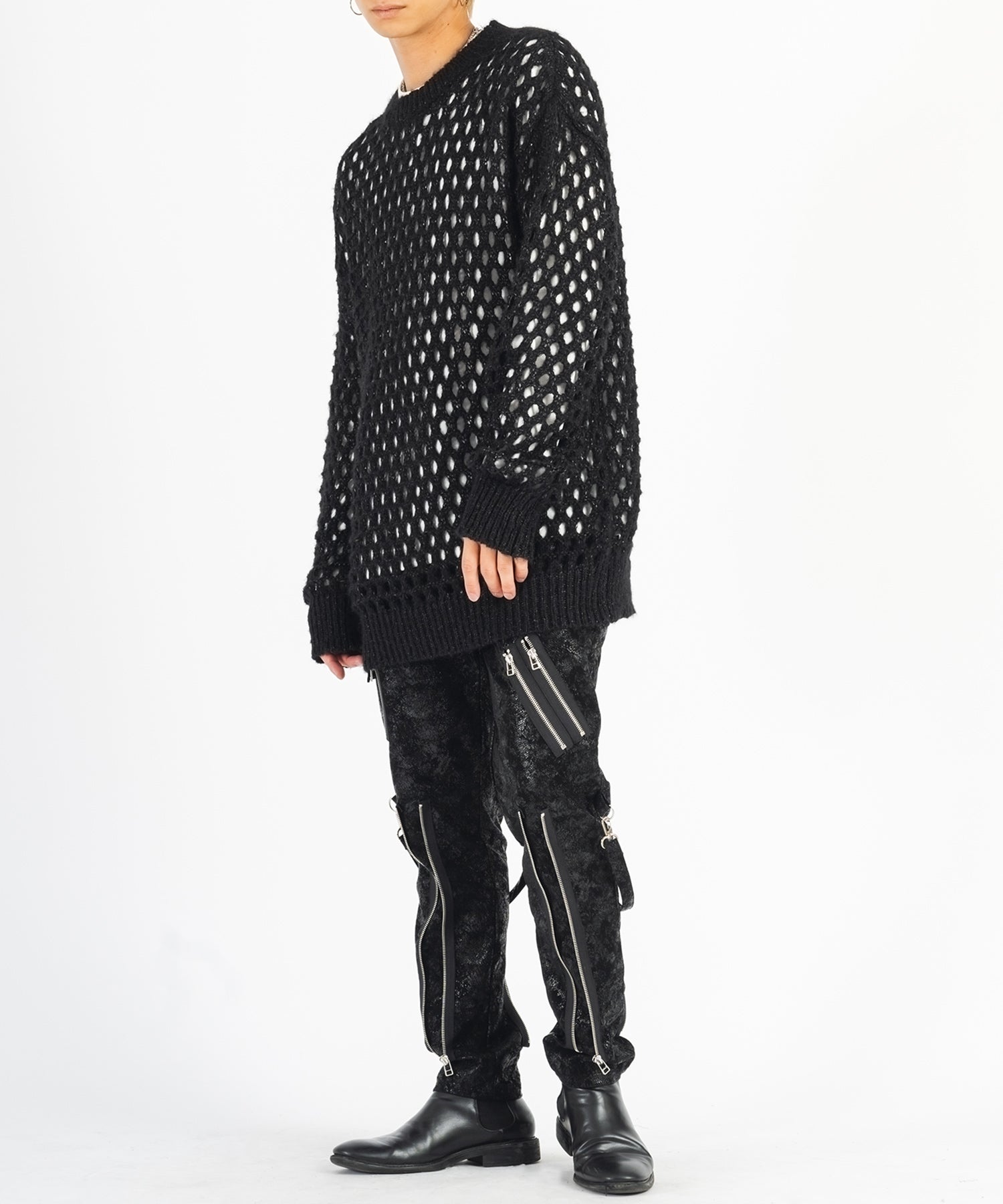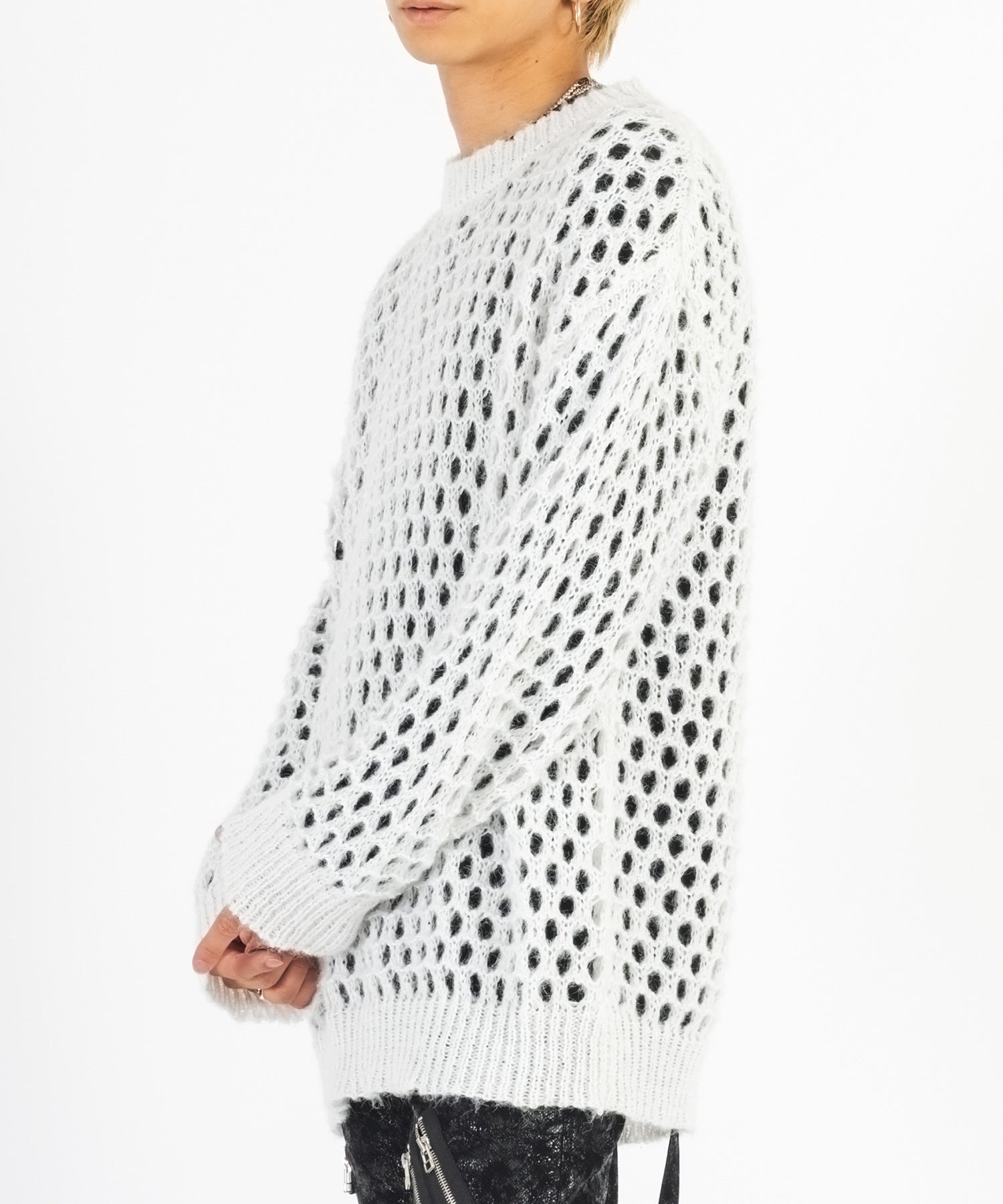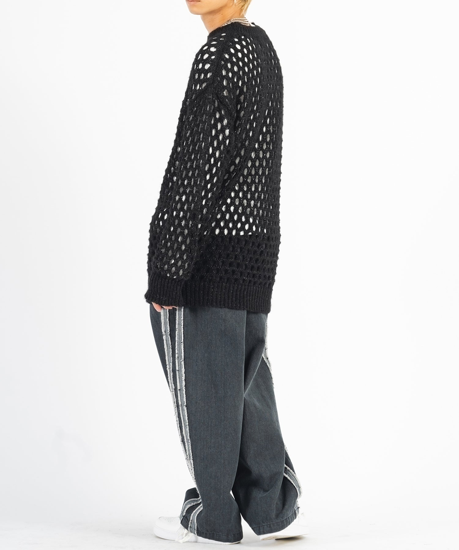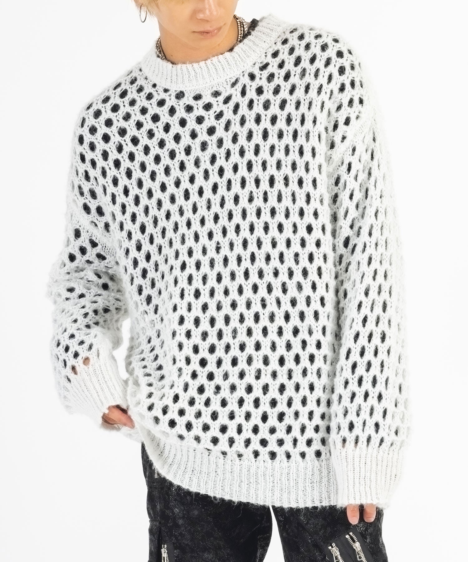 向こう側が見通せる程編み目を大きくしたニットと、インナーとして着られるロンTがセットになったアイテムです。