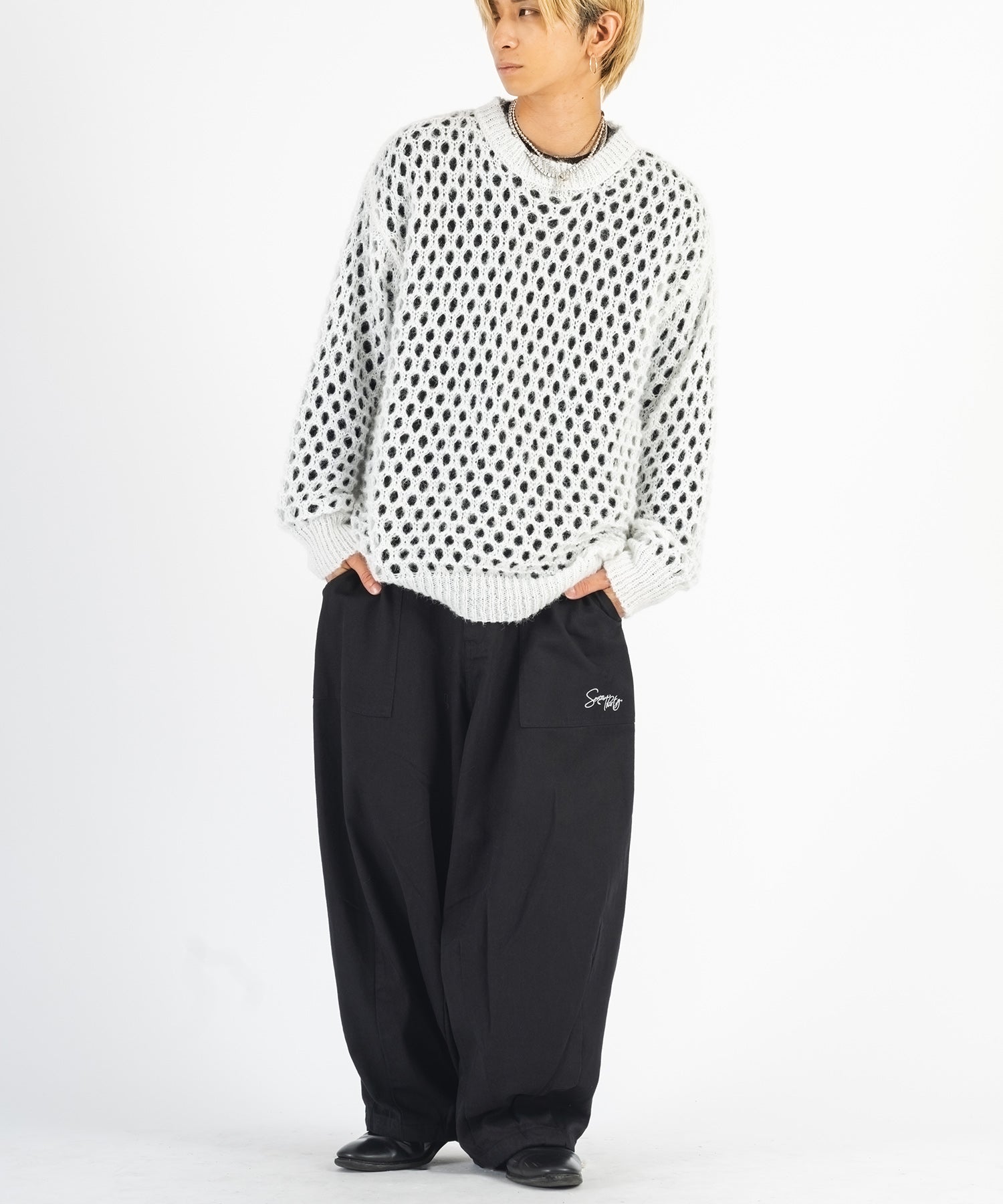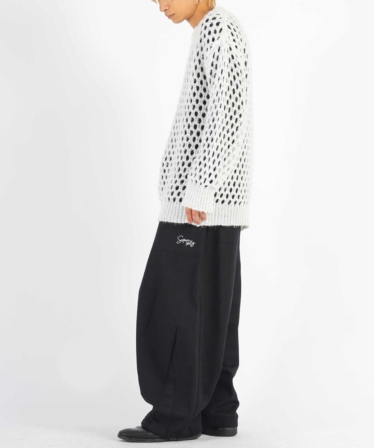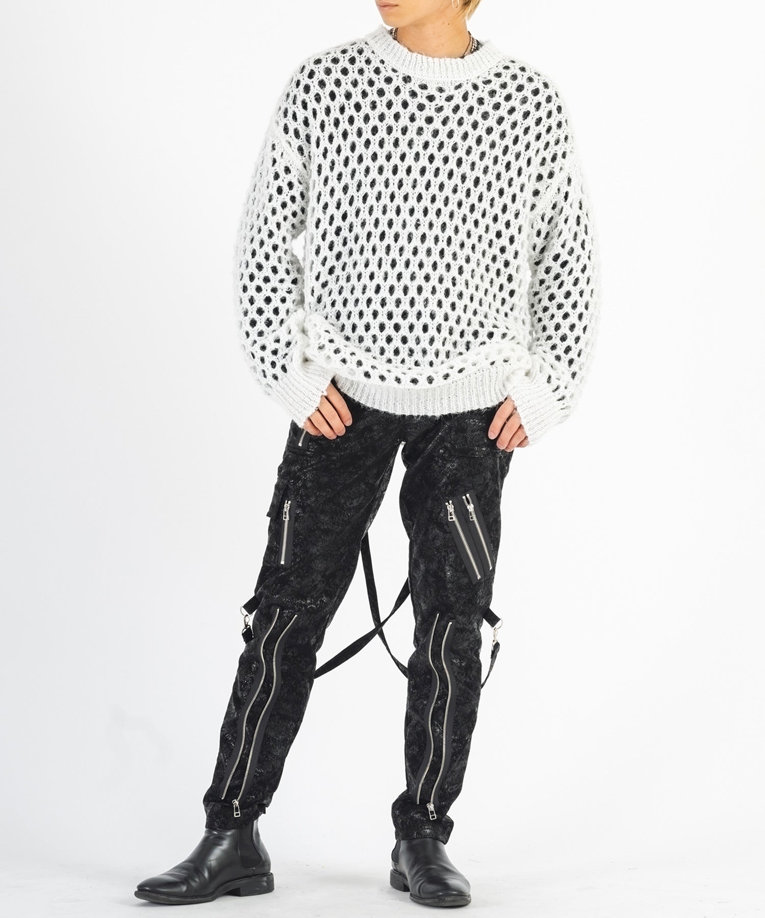 白のニットには黒のロンT、黒のニットには白のロンTが付属しており、重ねた時に生まれる微妙な陰影がクールです。