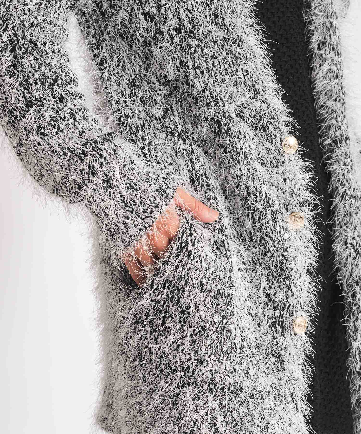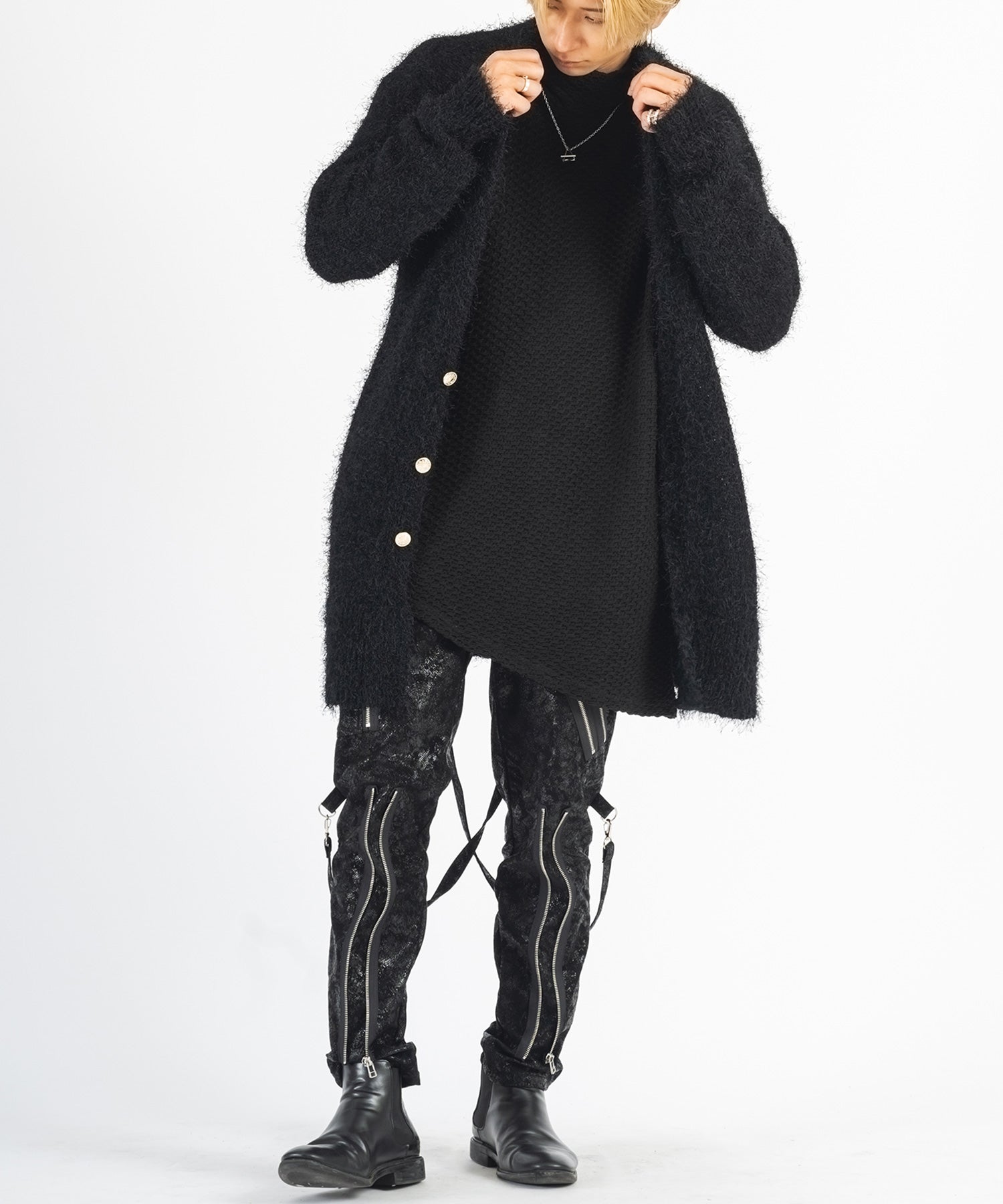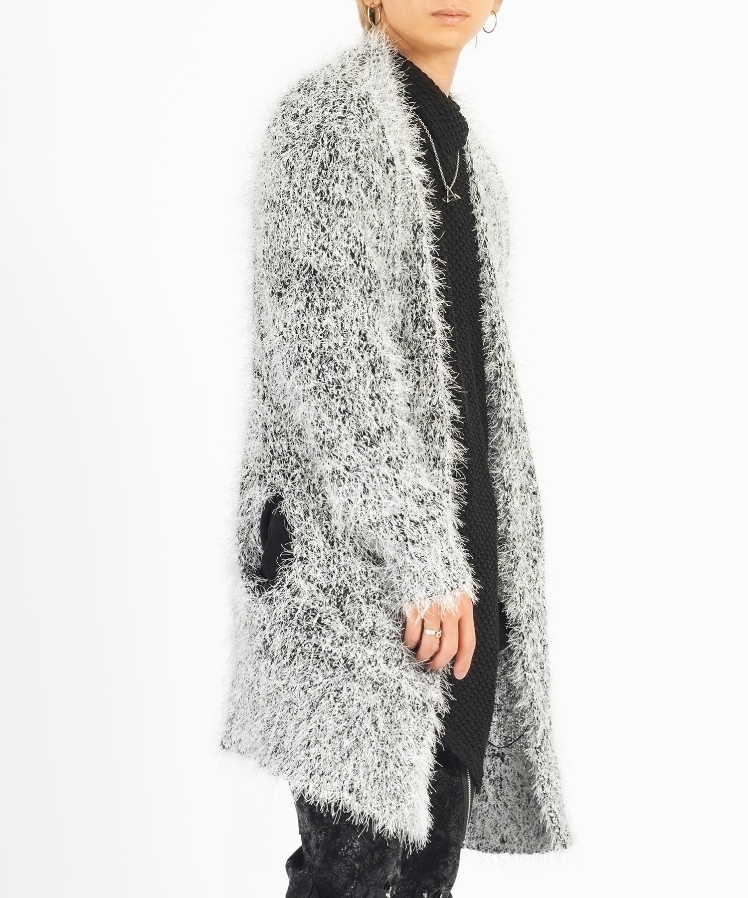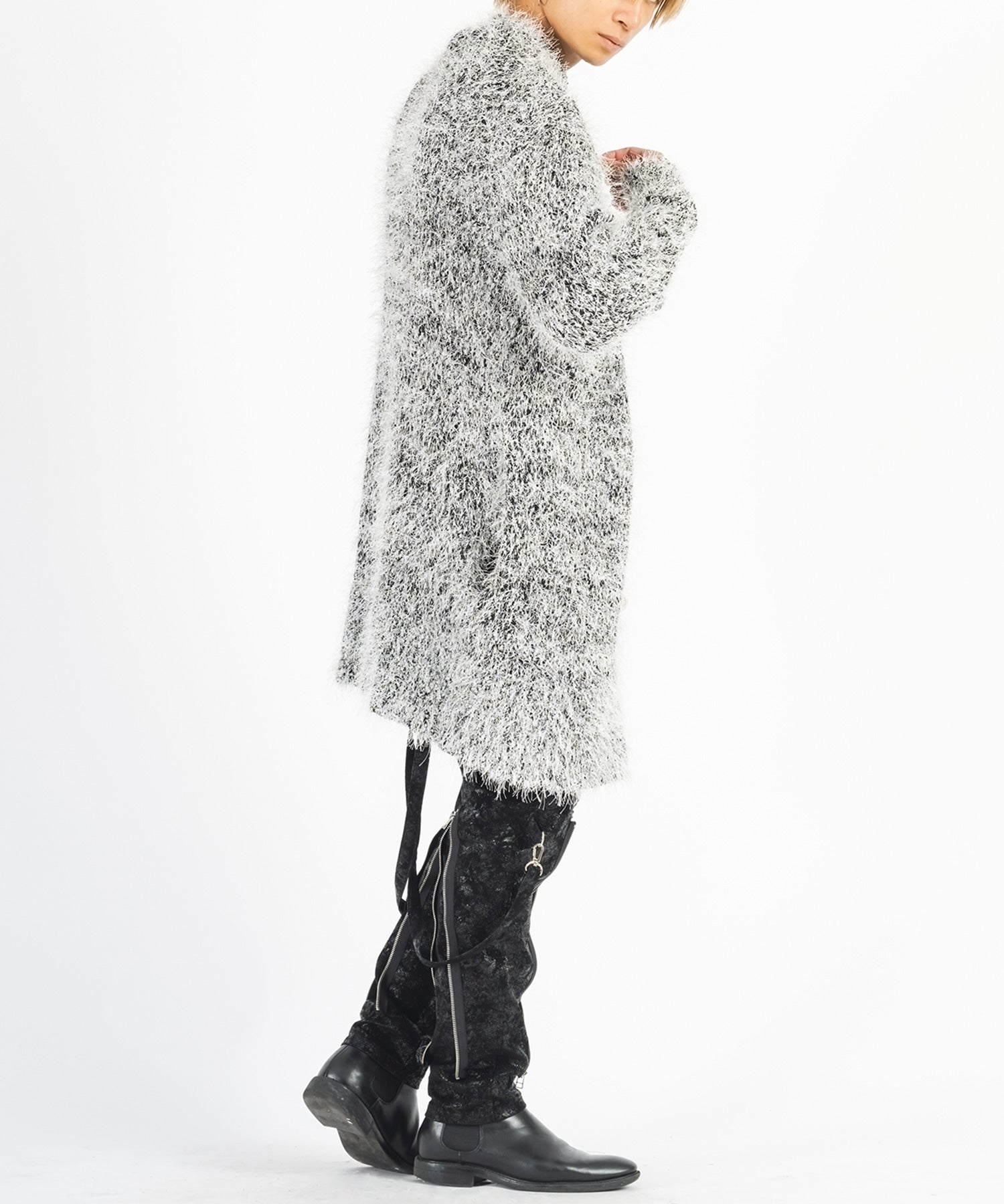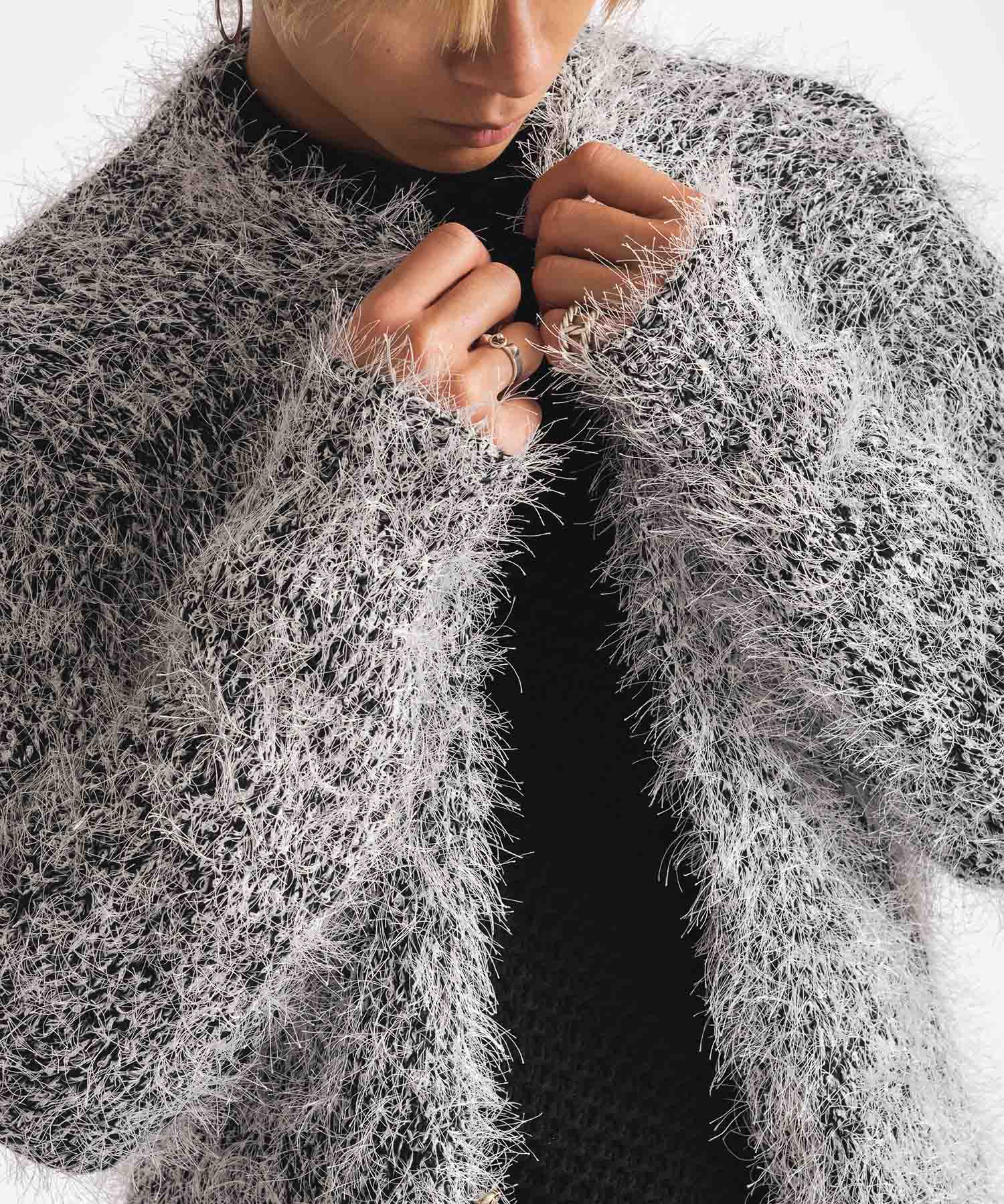 印象的なシャギーな素材ですが、非常に柔らかく気持ちい肌触りと高いストレッチ性が包まれるような着心地です。