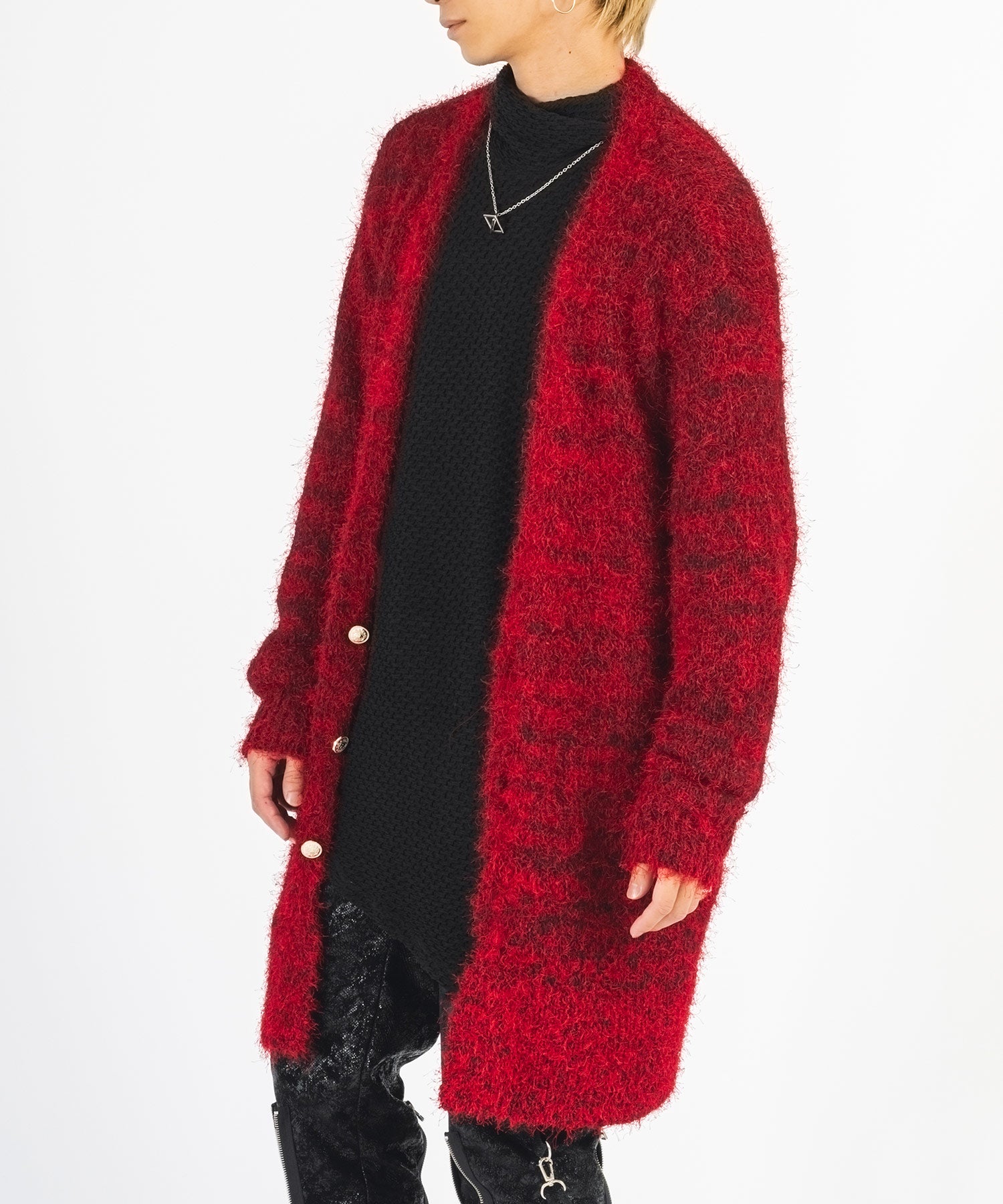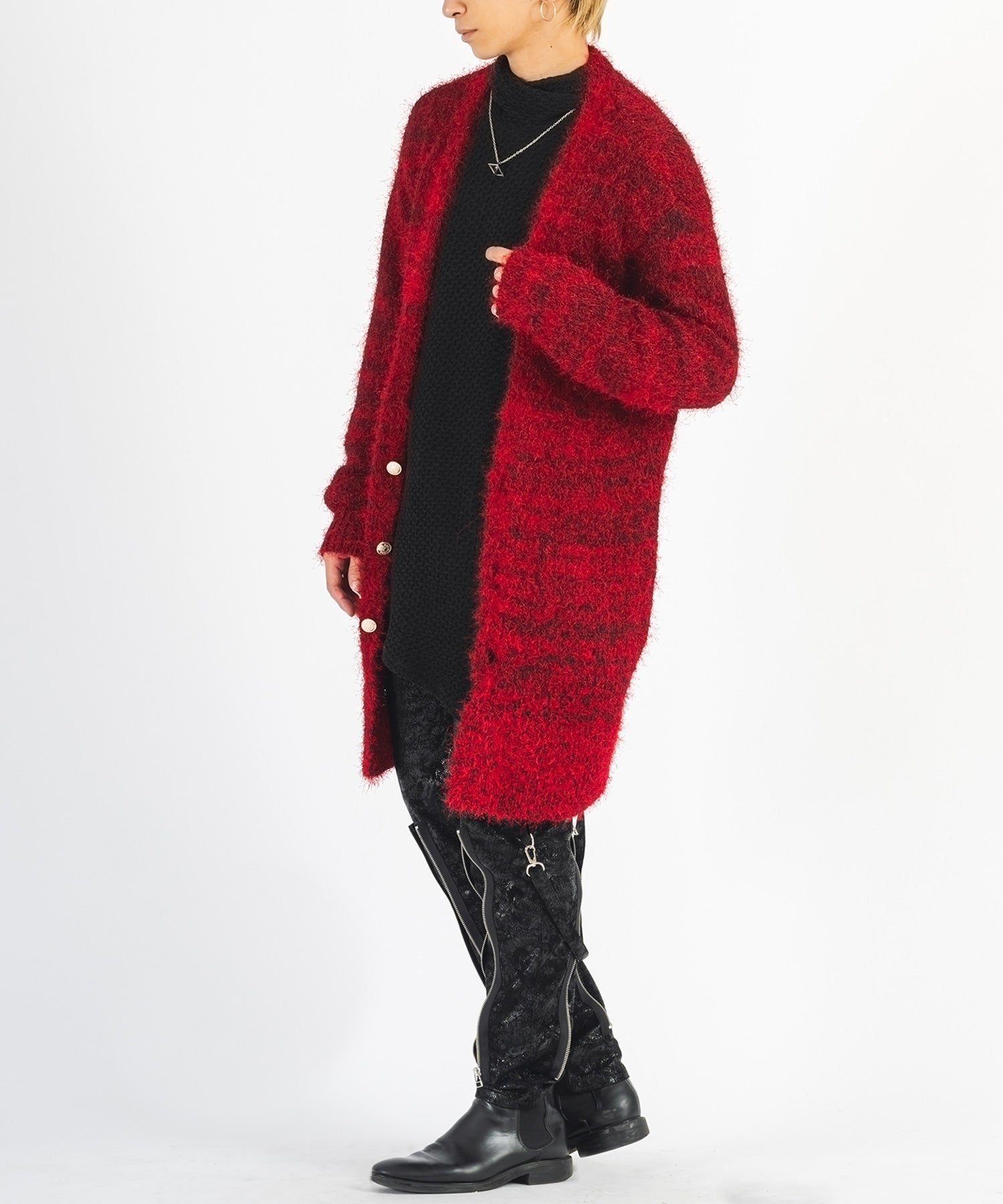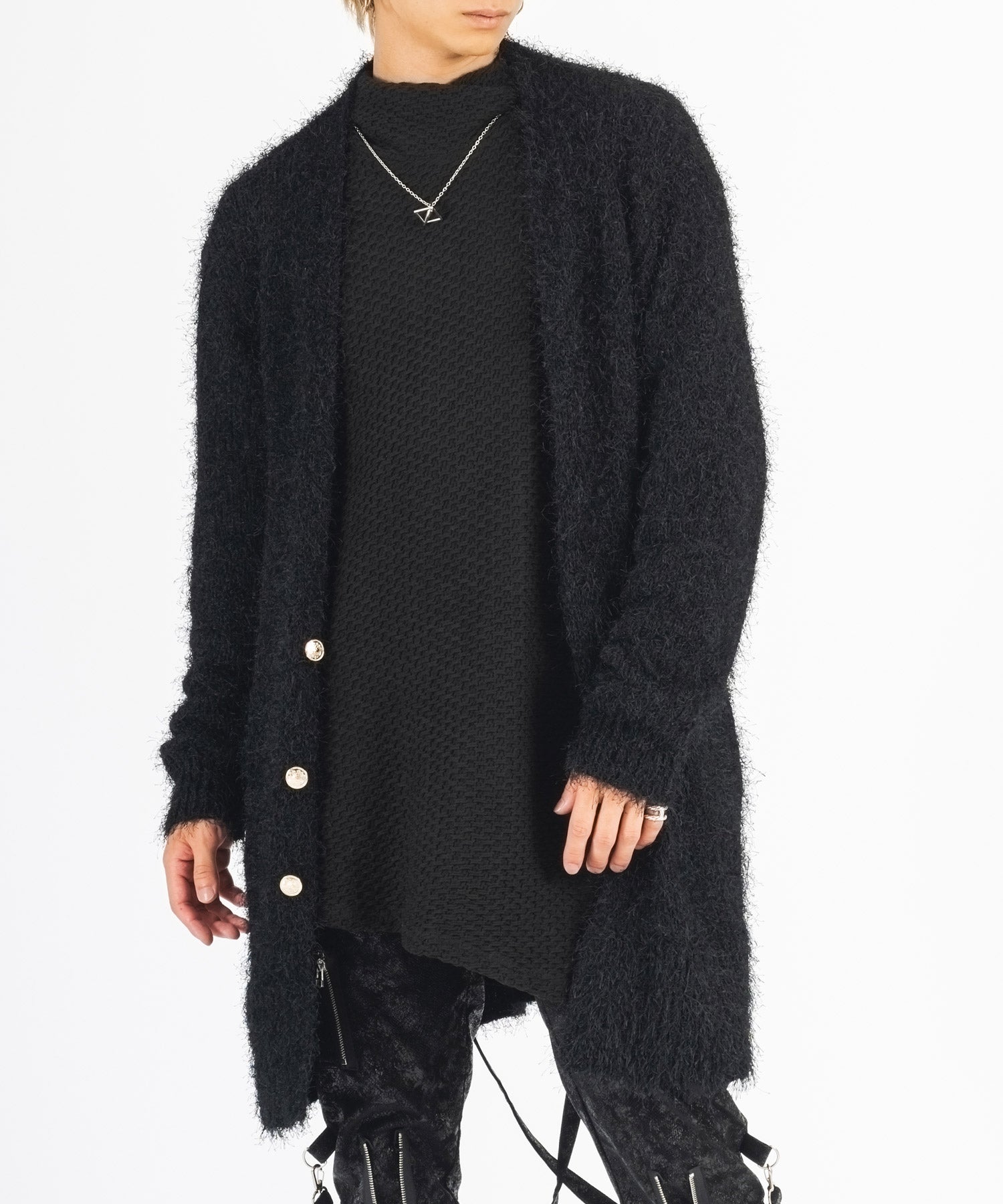 膝までかかる丈、低めのボタン位置、深いVゾーンがセクシーでコートの様に羽織れるロングシルエットのカーディガンです。