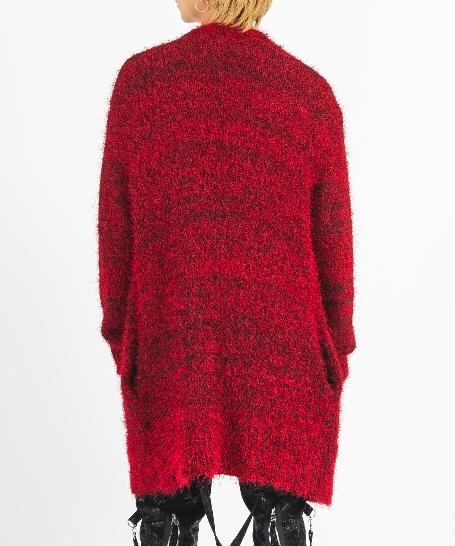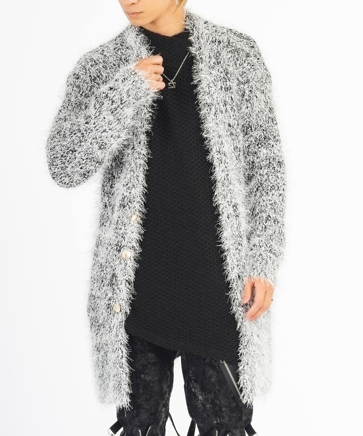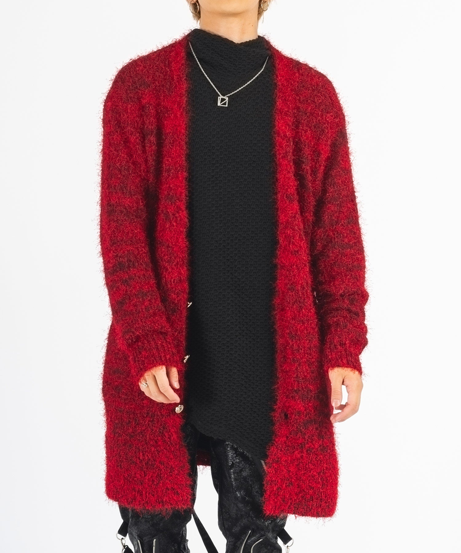 膝までかかる丈、低めのボタン位置、深いVゾーンがセクシーでコートの様に羽織れるロングシルエットのカーディガンです。