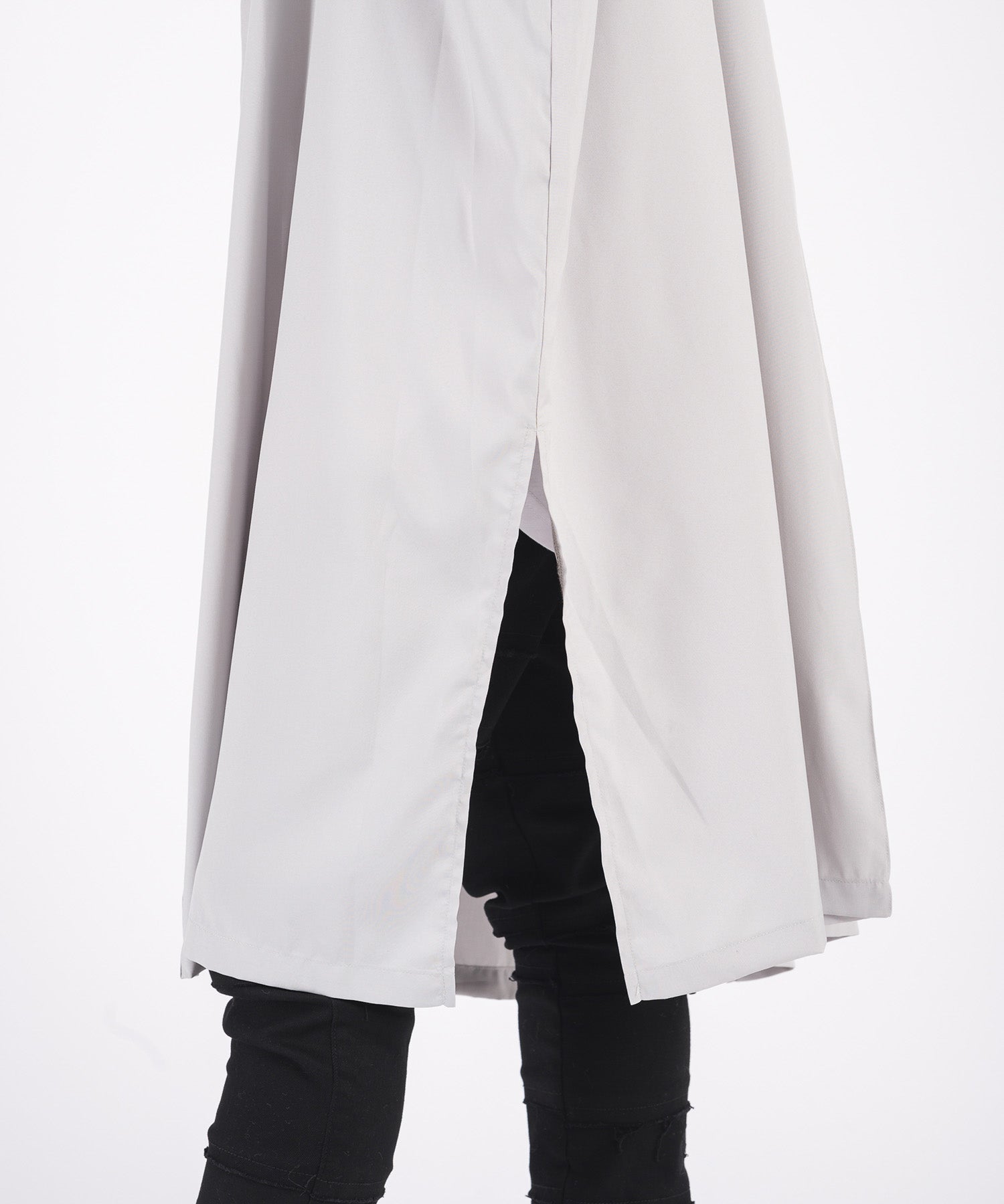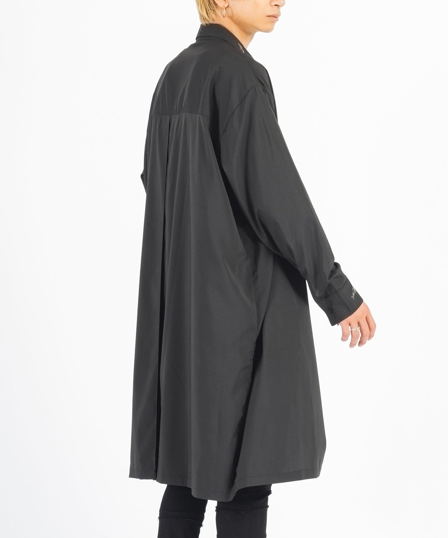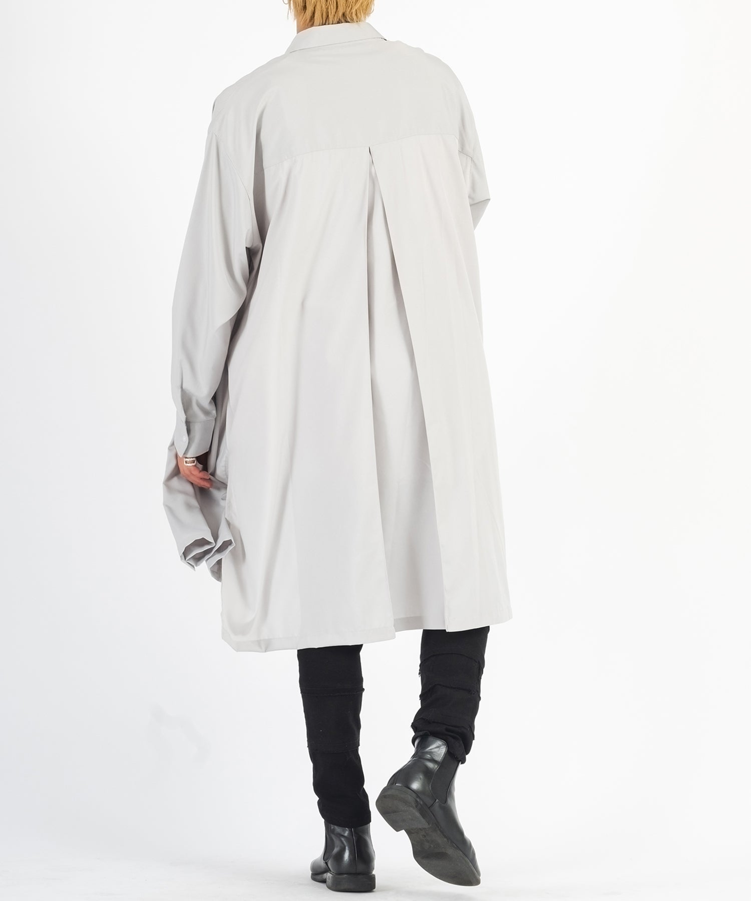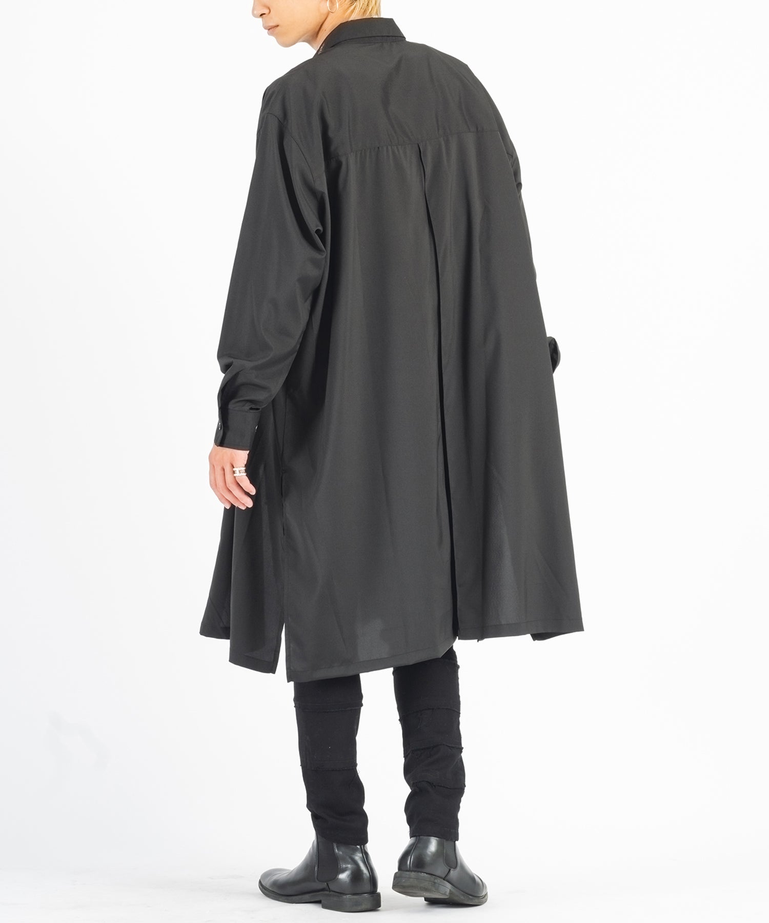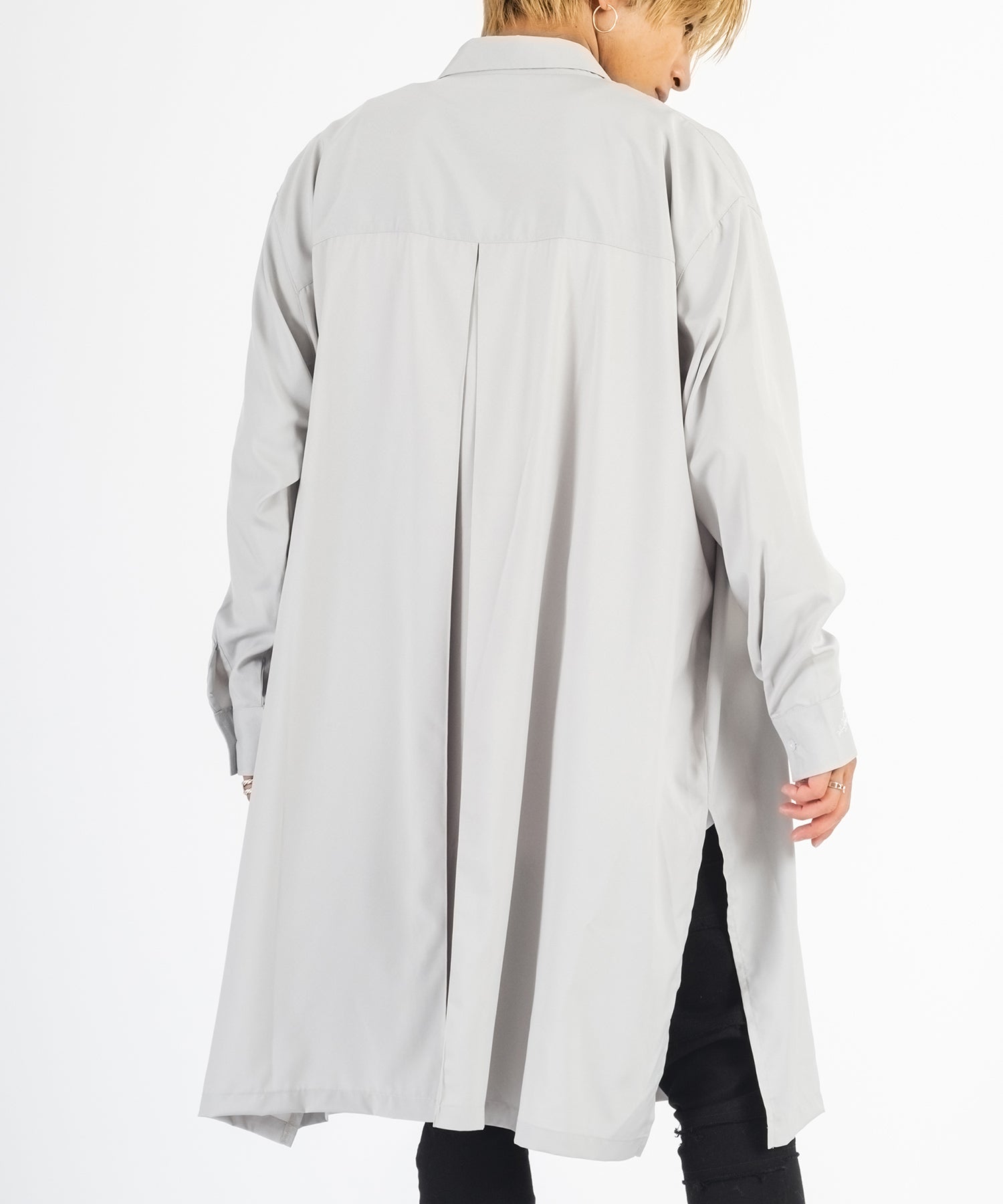 コートの様な膝丈の長さが特徴のロングシャツです。