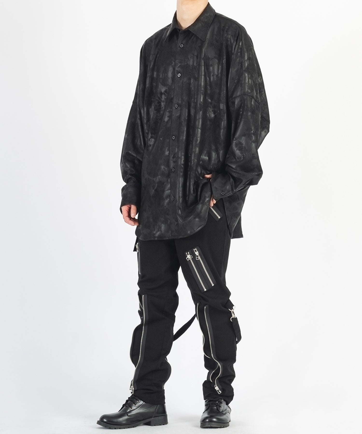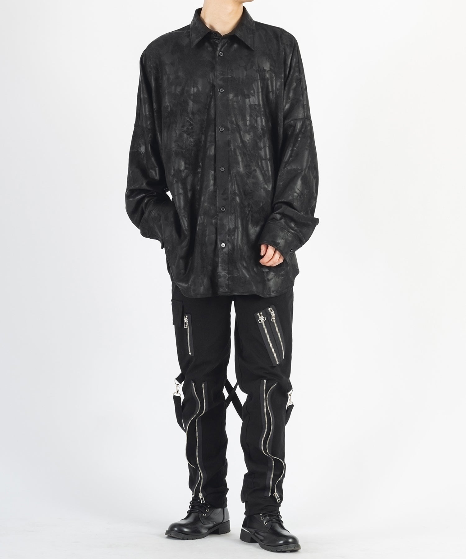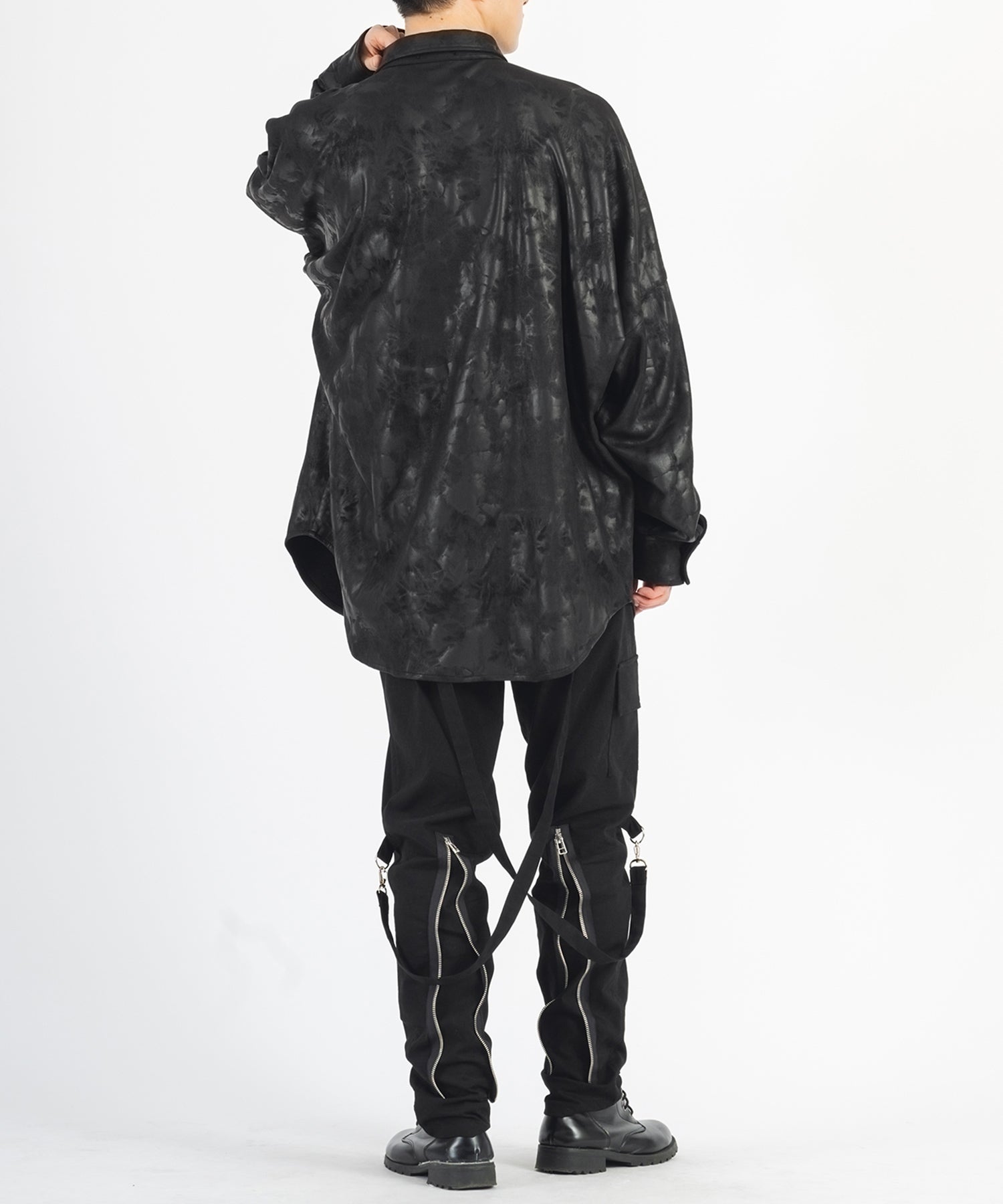Tシャツの上に軽く羽織るだけで映えるアイテムです。ブラックのスキニーが定番的な着こなしですが、ボンテージパンツと合わせるとよりトレンドなスタイルが演出できます。
