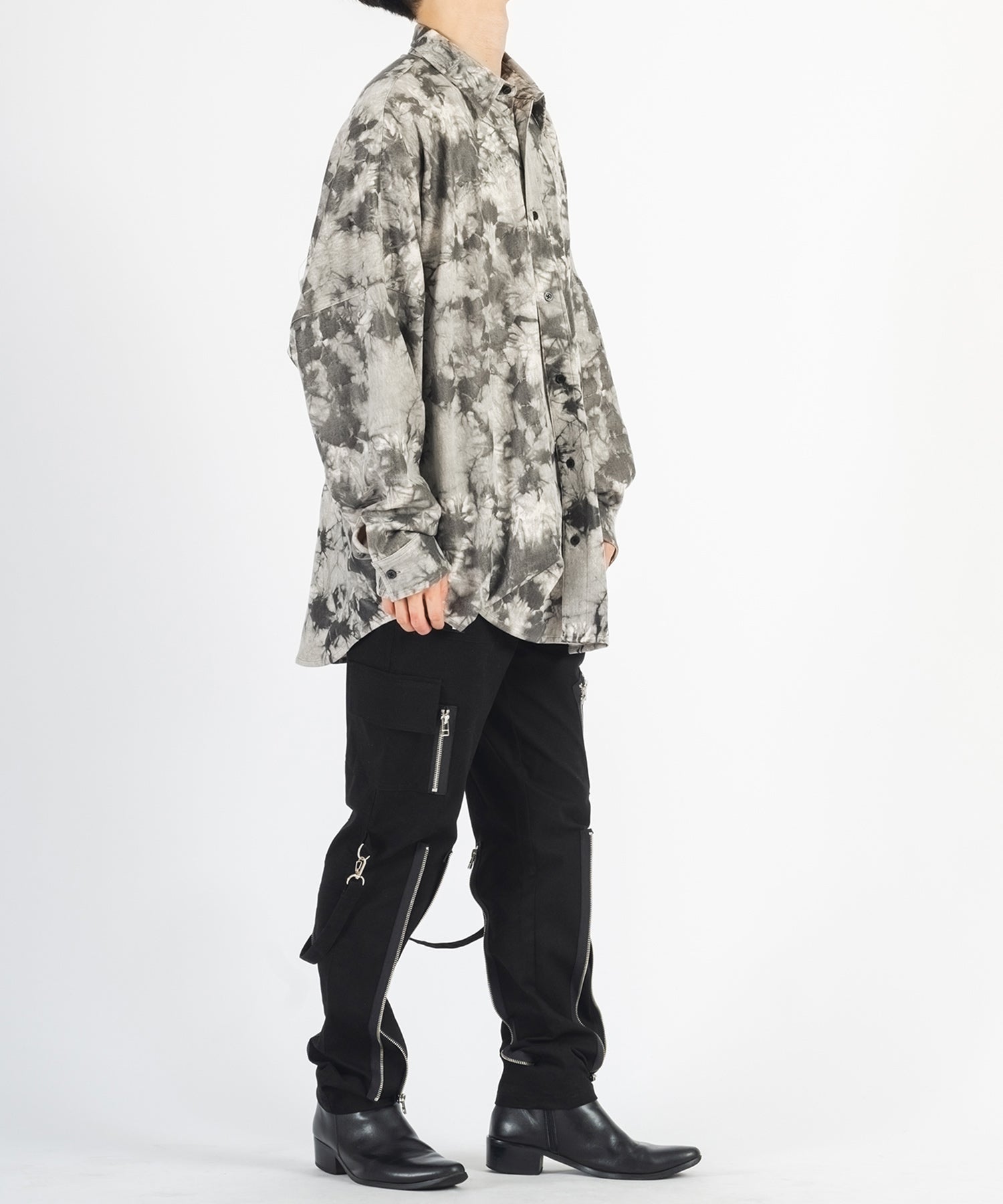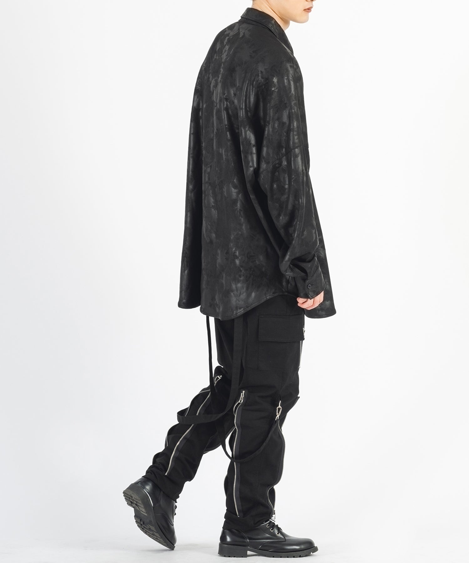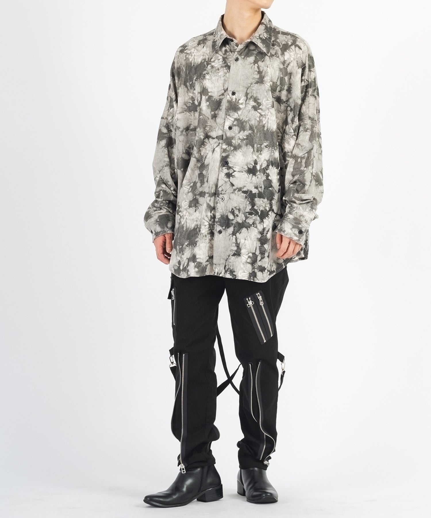 Tシャツの上に軽く羽織るだけで映えるアイテムです。ブラックのスキニーが定番的な着こなしですが、ボンテージパンツと合わせるとよりトレンドなスタイルが演出できます。