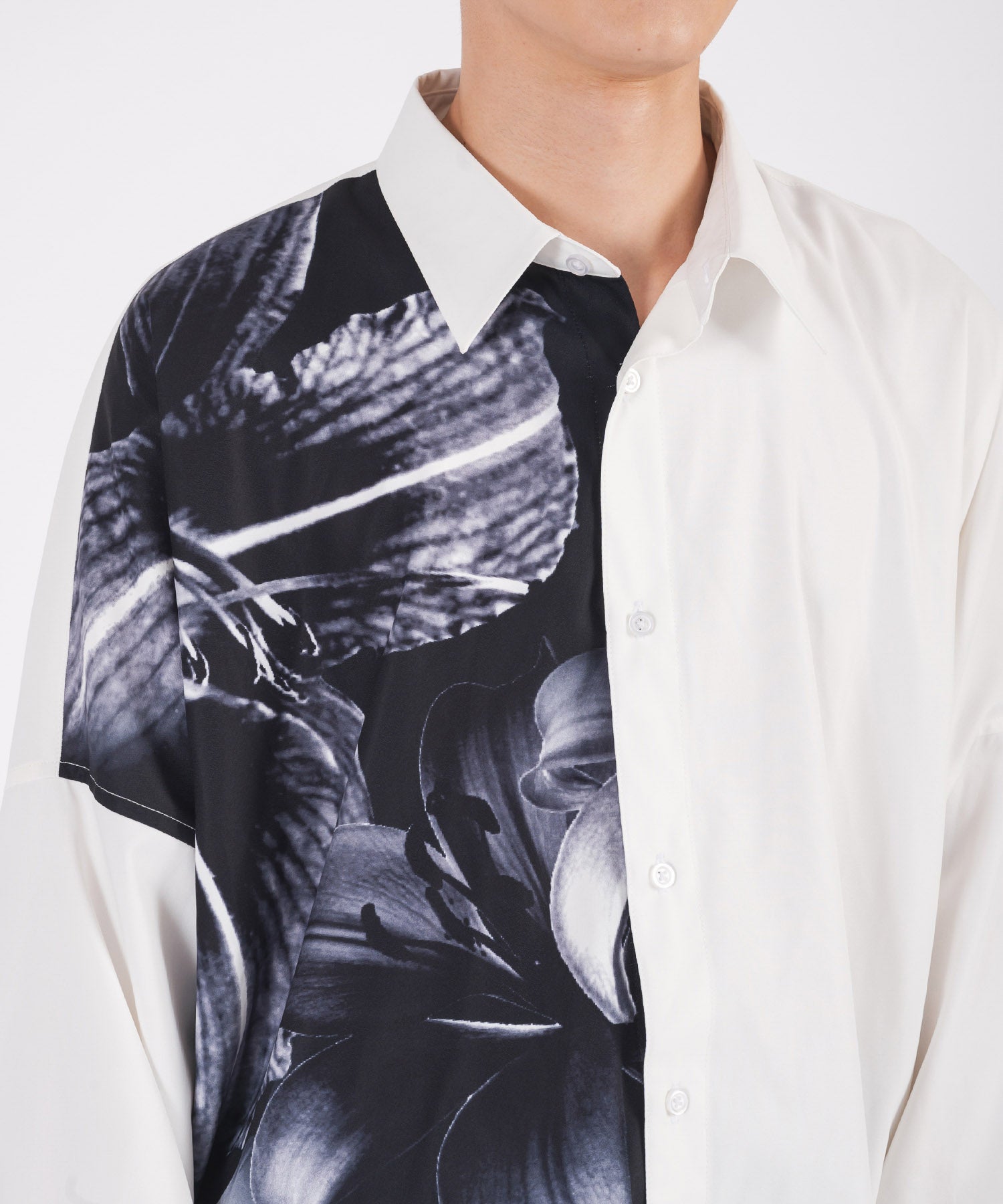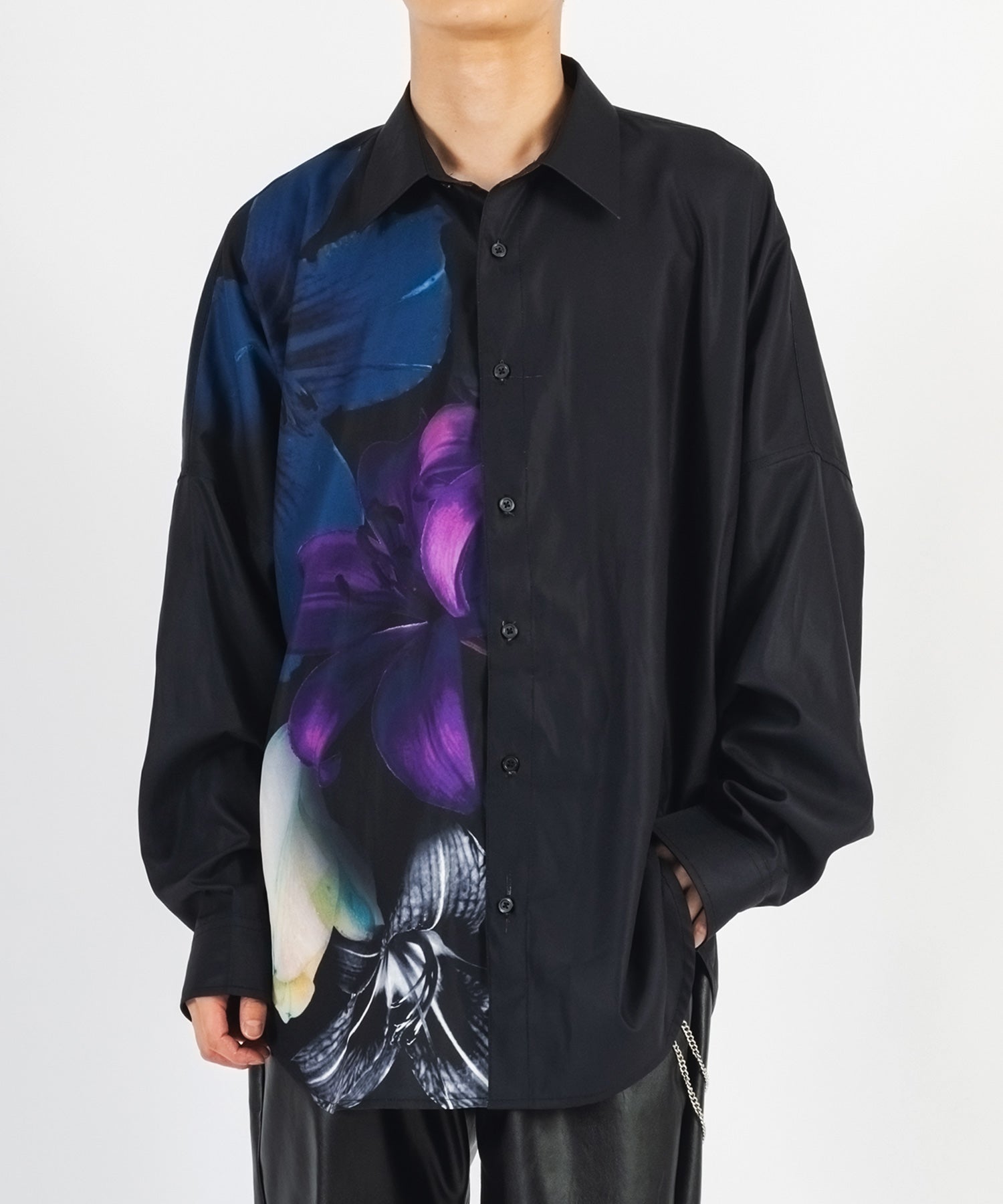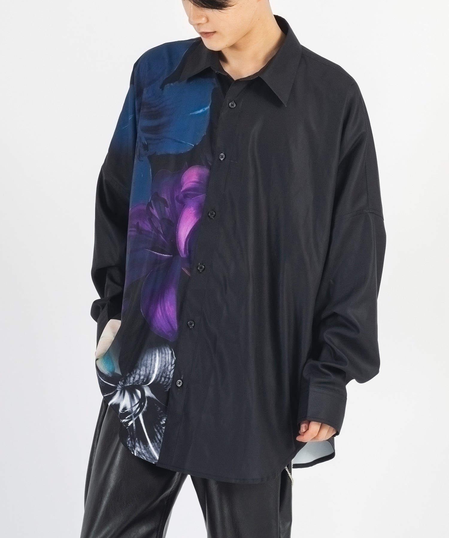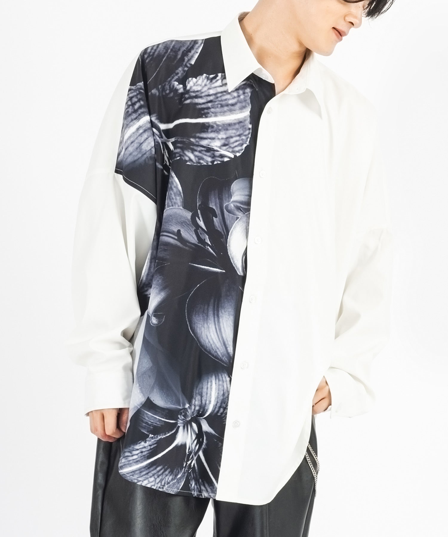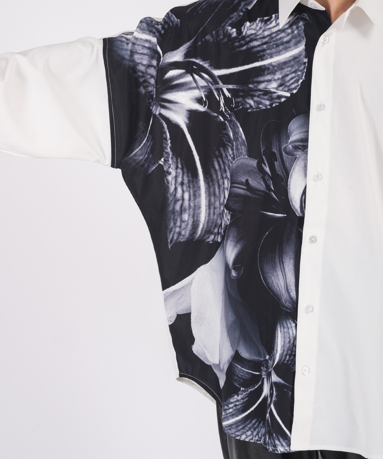 フラワープリントで切り替えたオーバーサイズのシャツです。