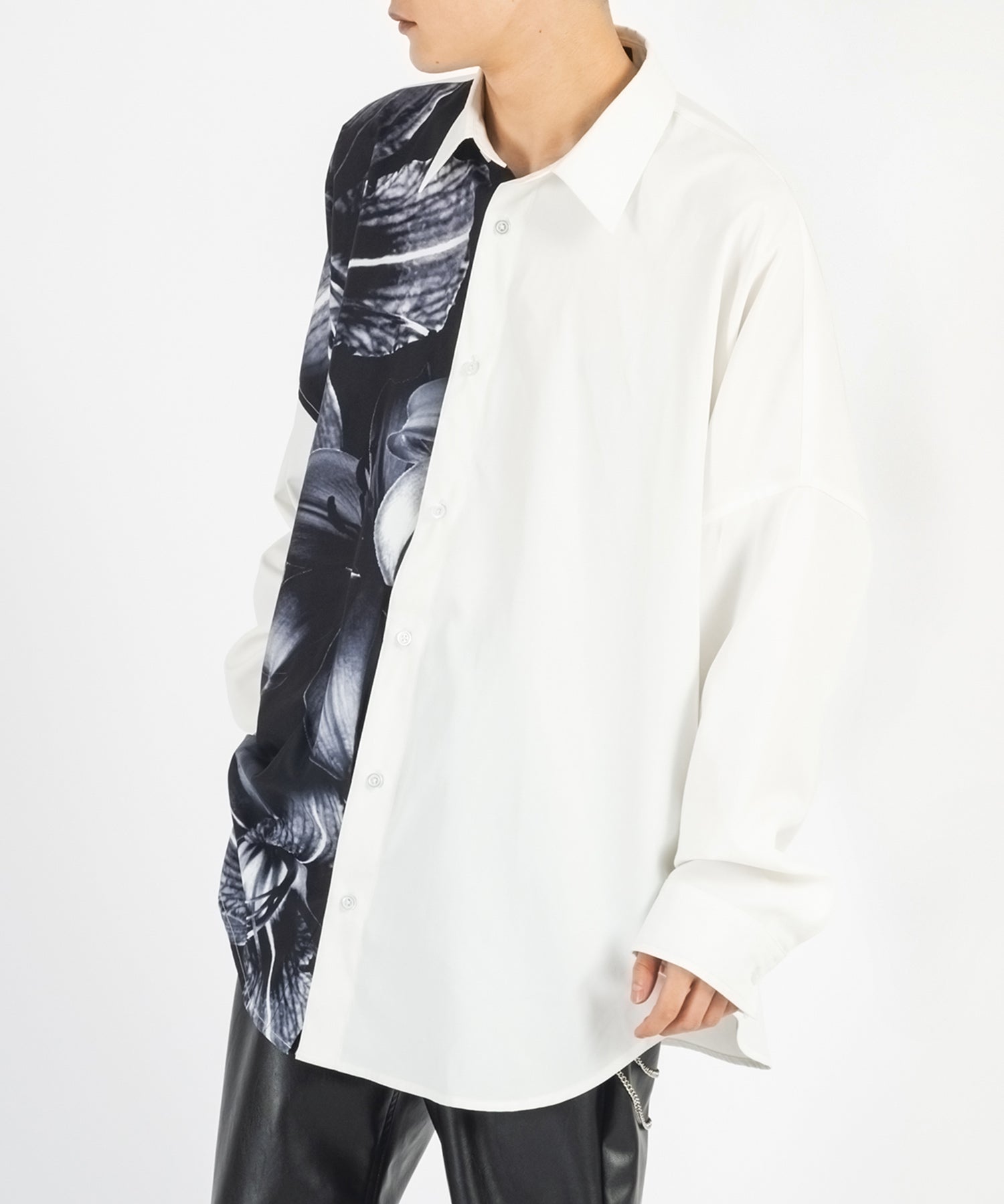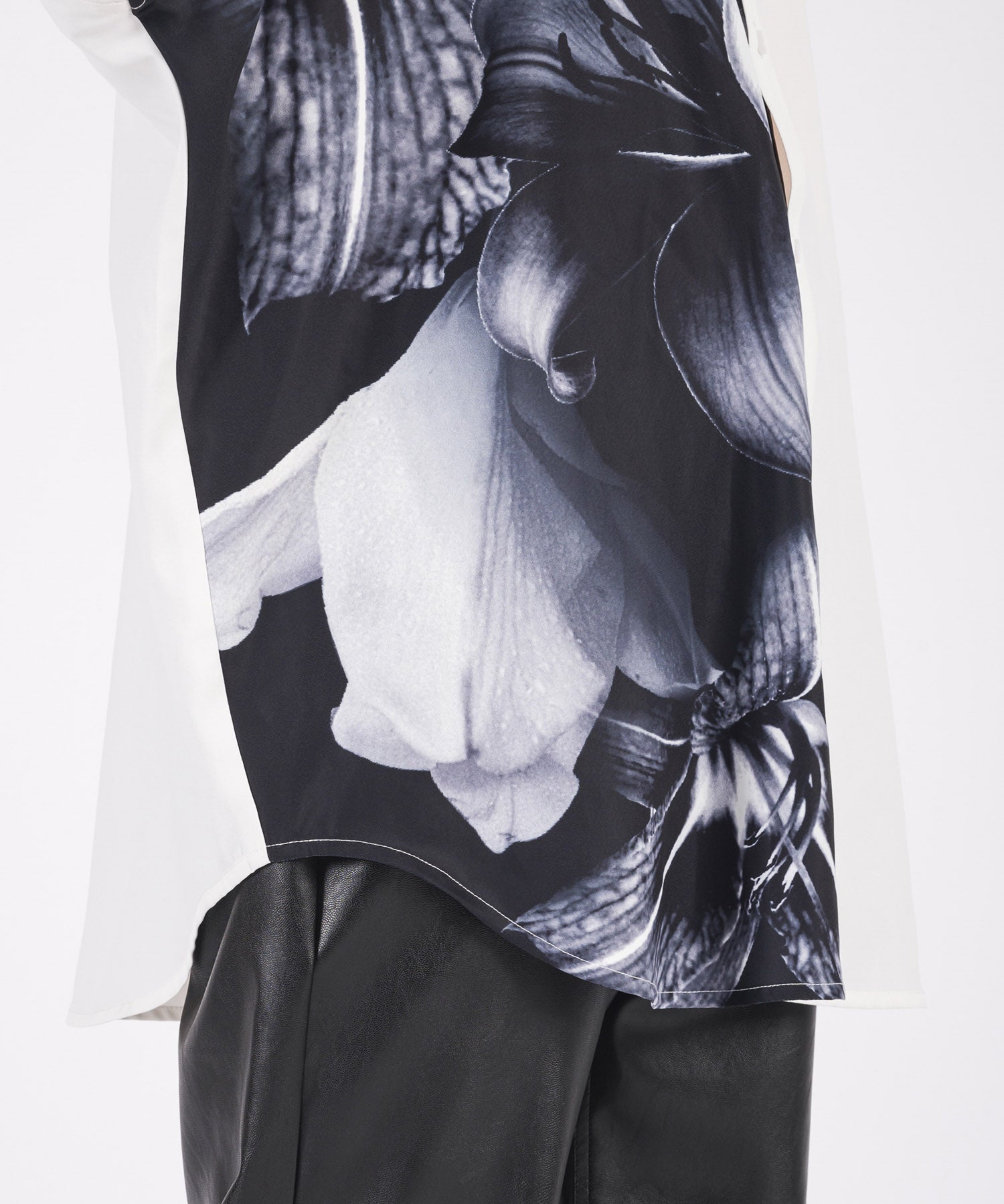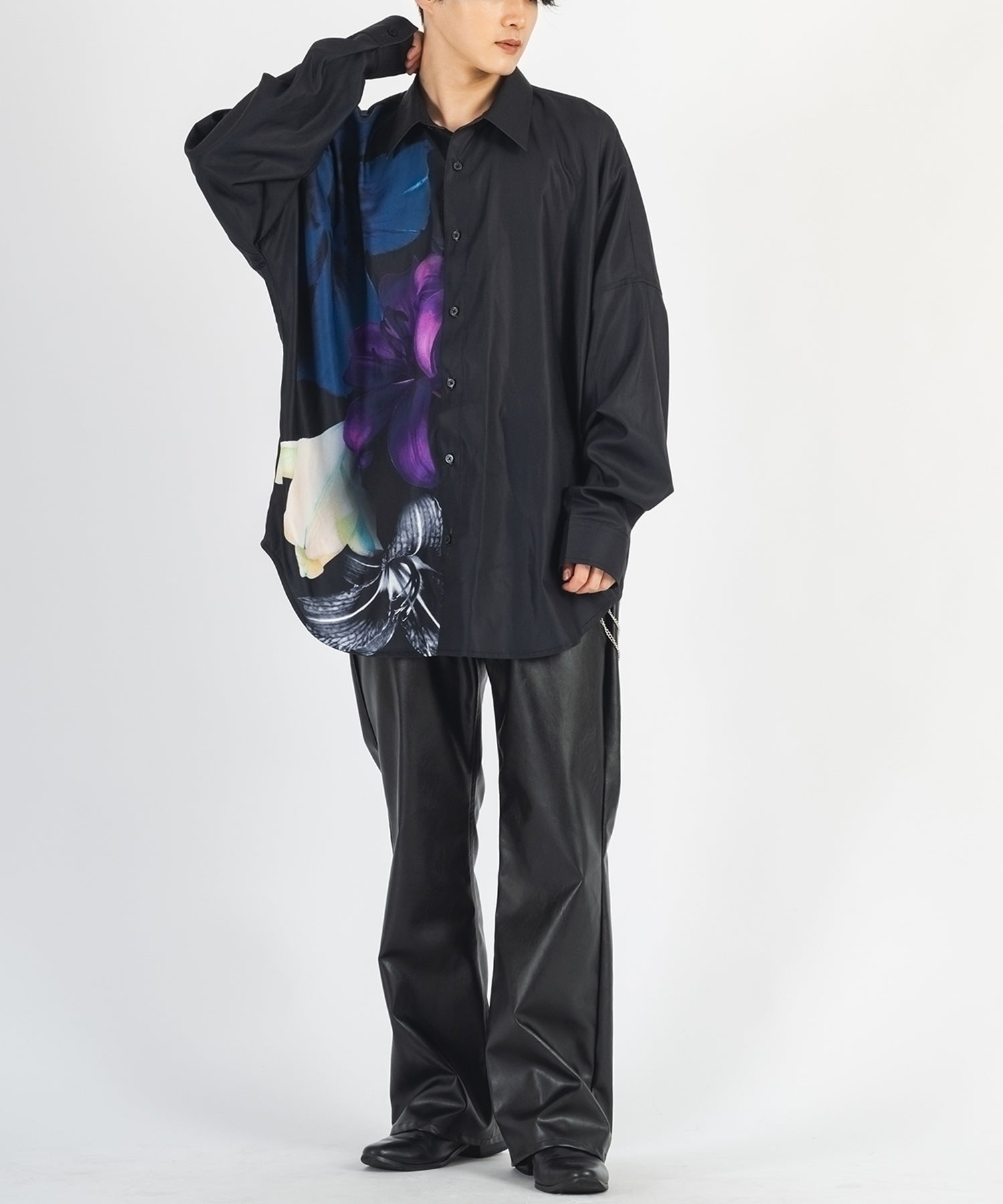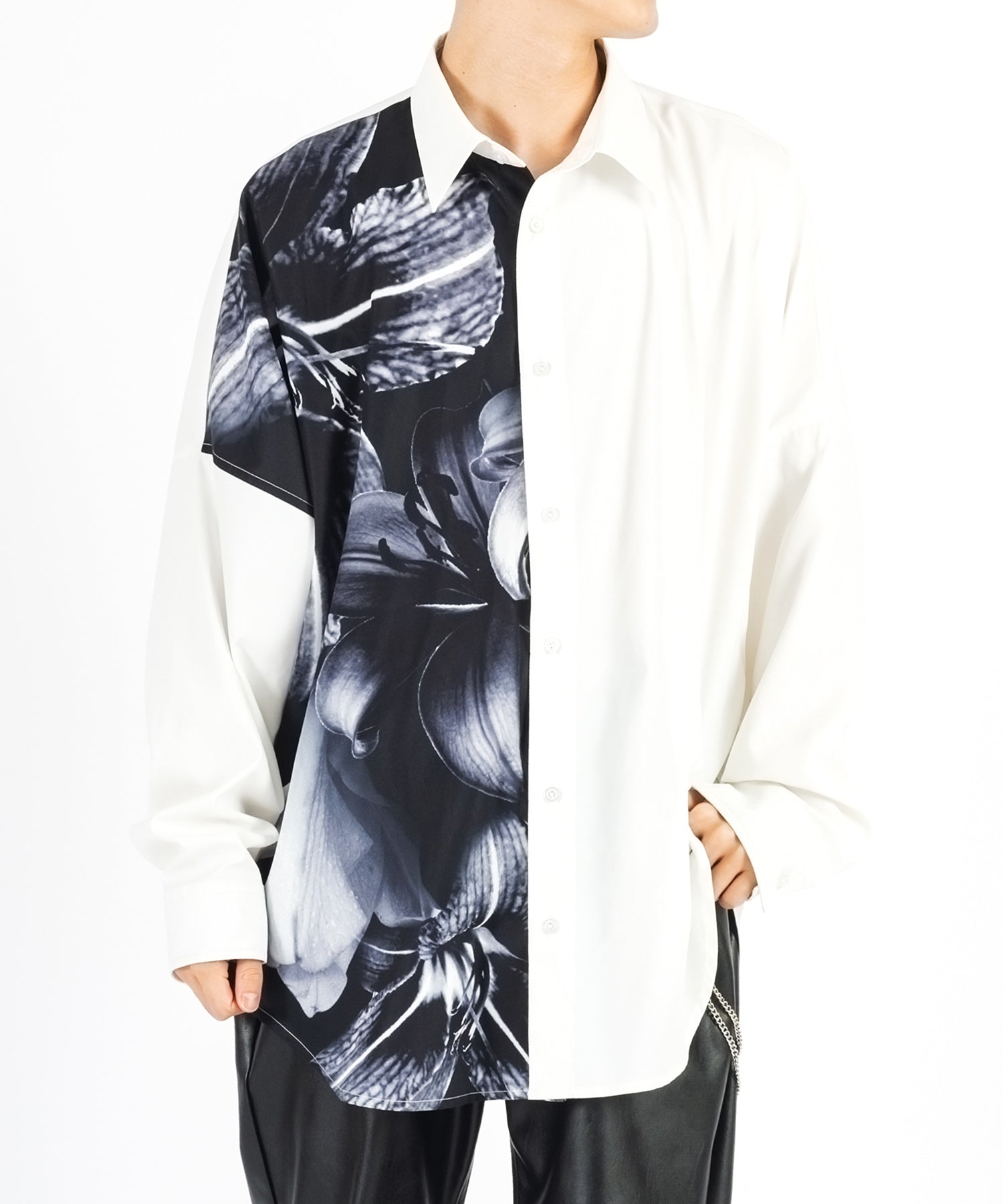 フラワープリントで切り替えたオーバーサイズのシャツです。
