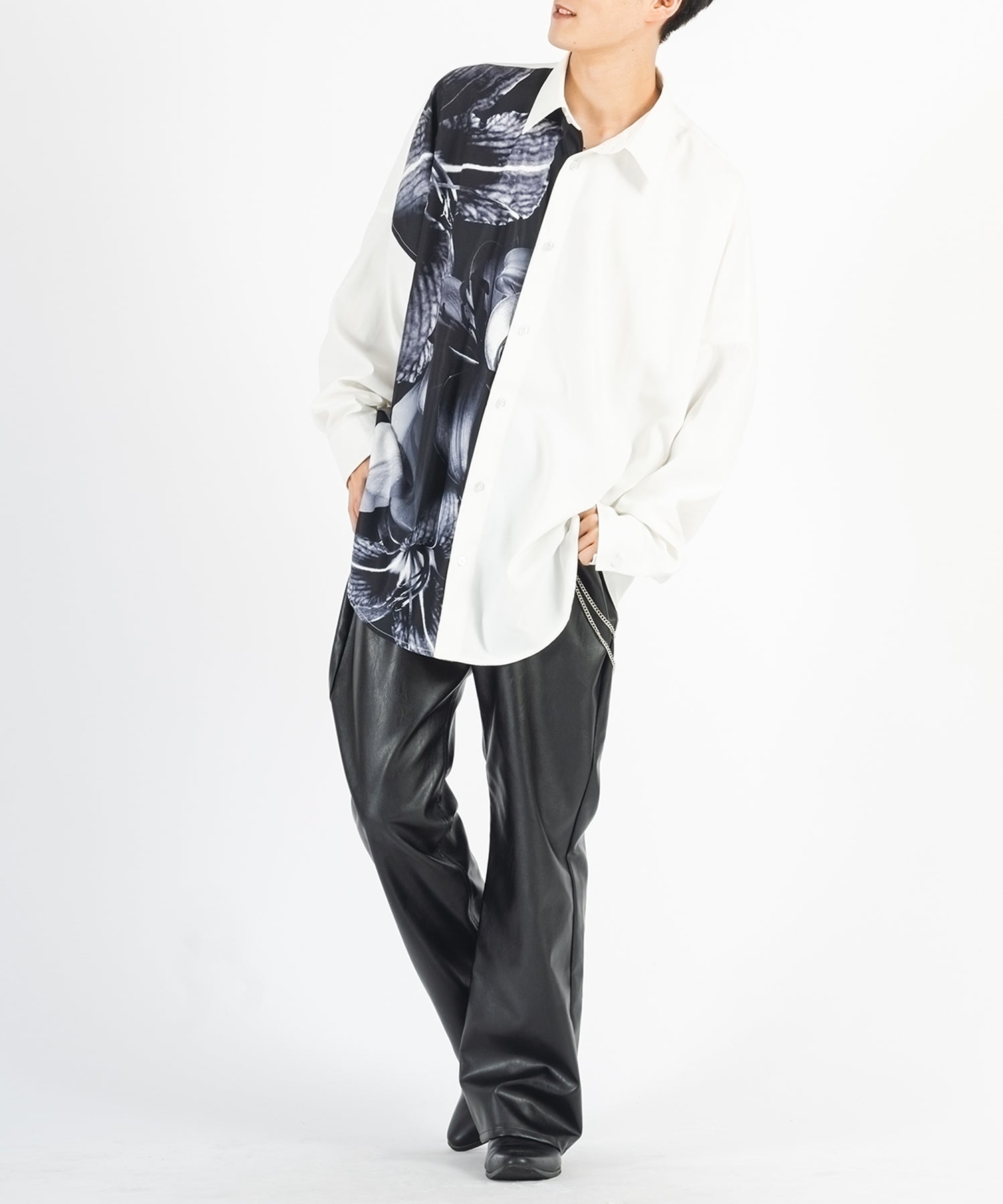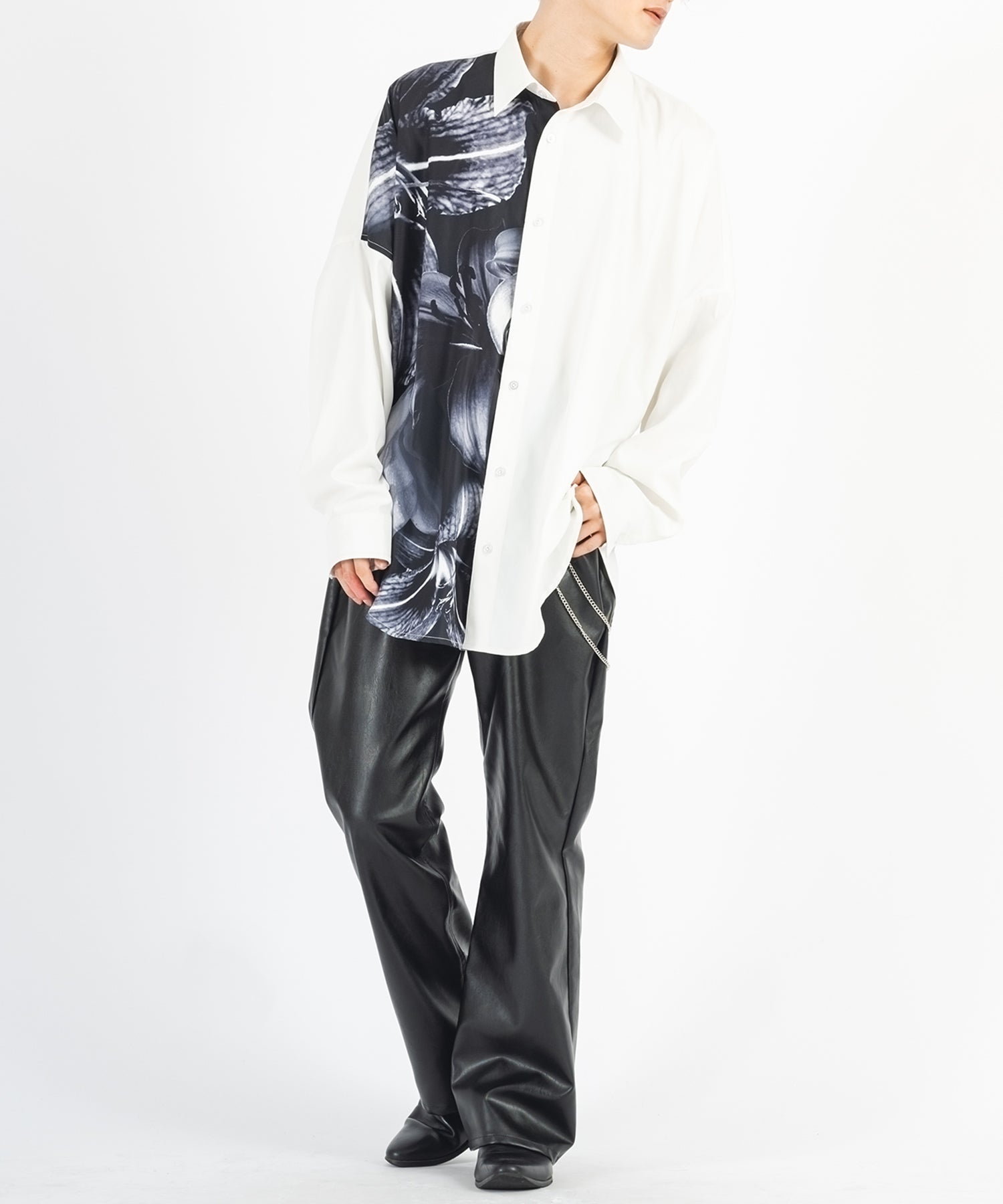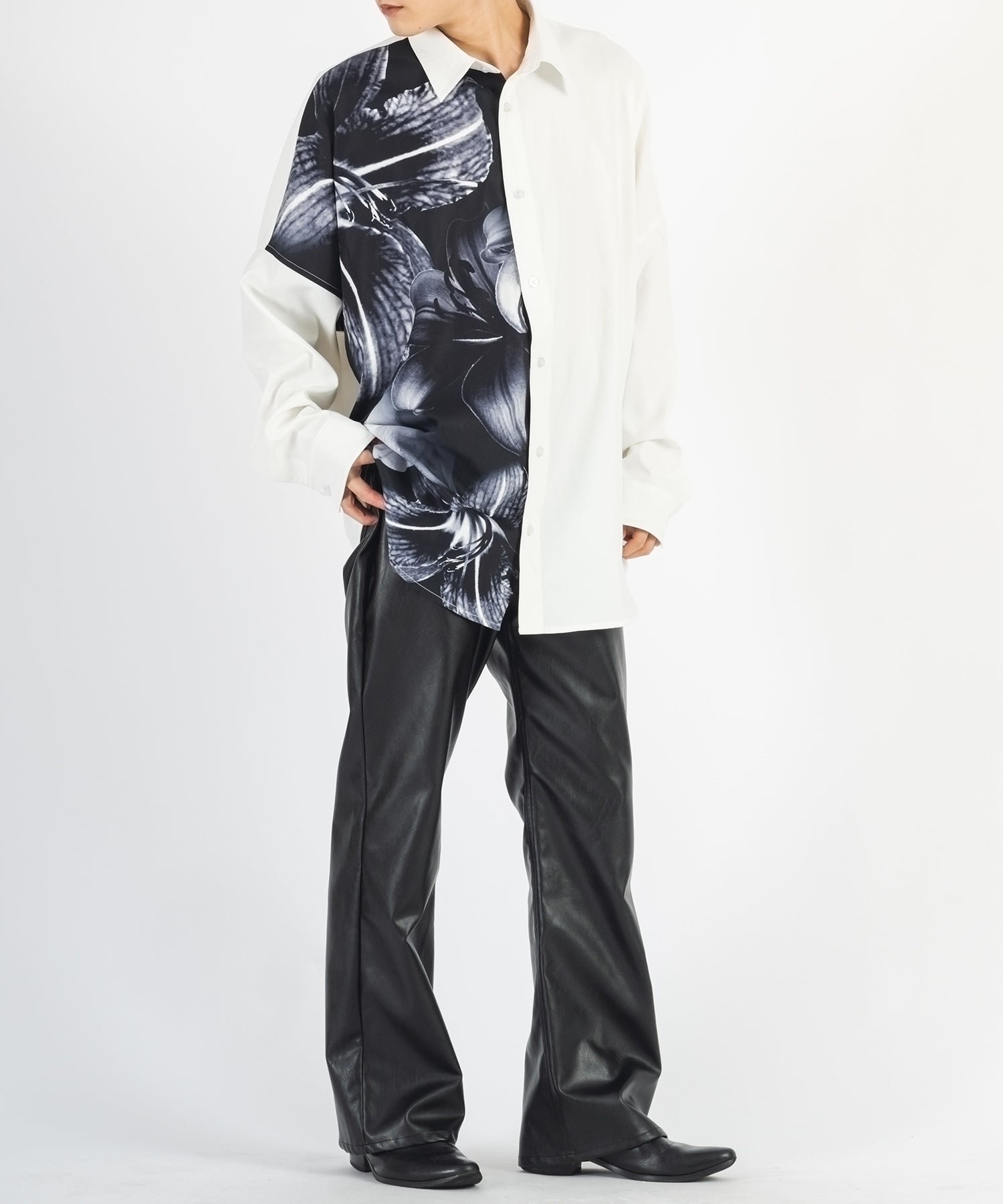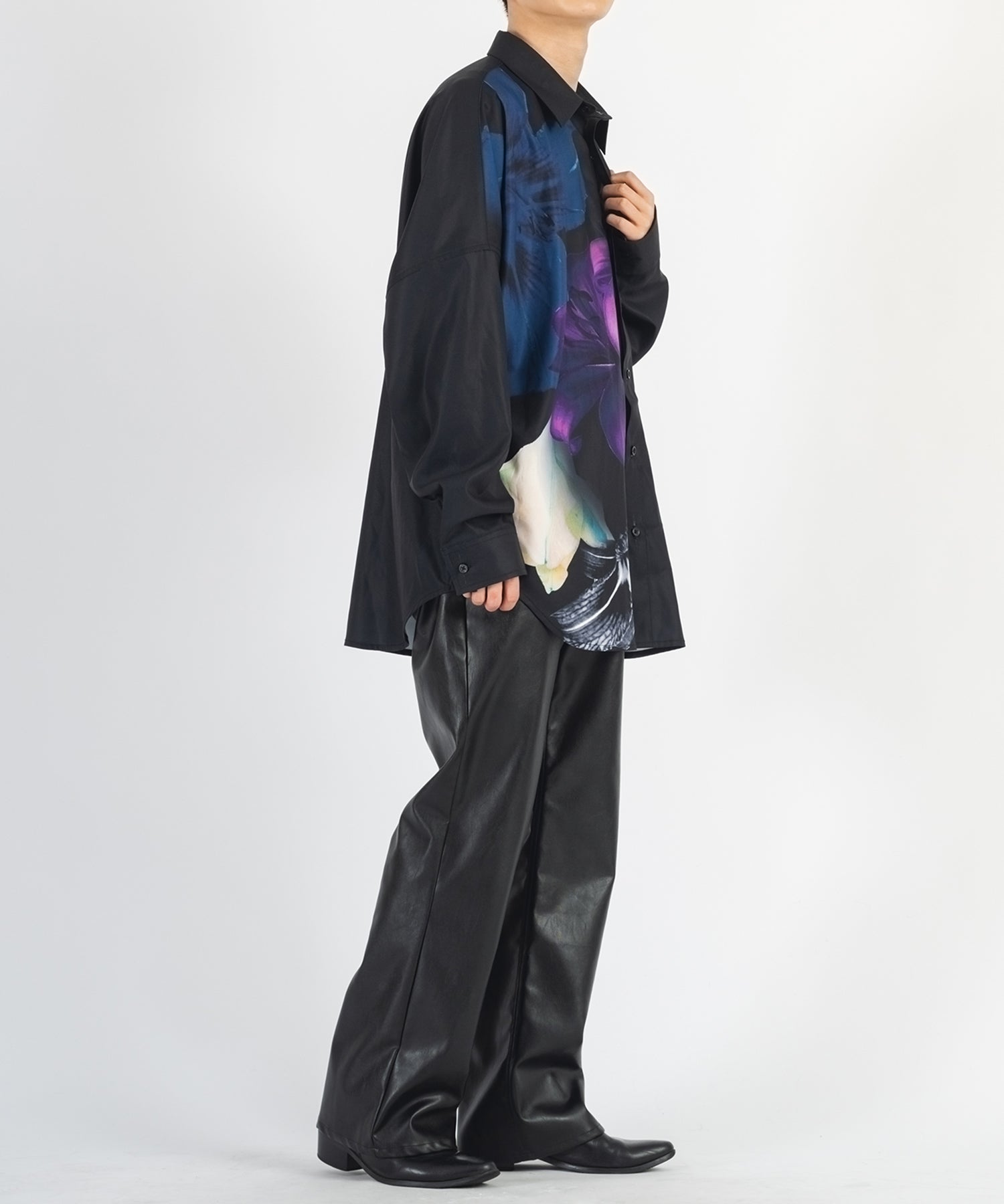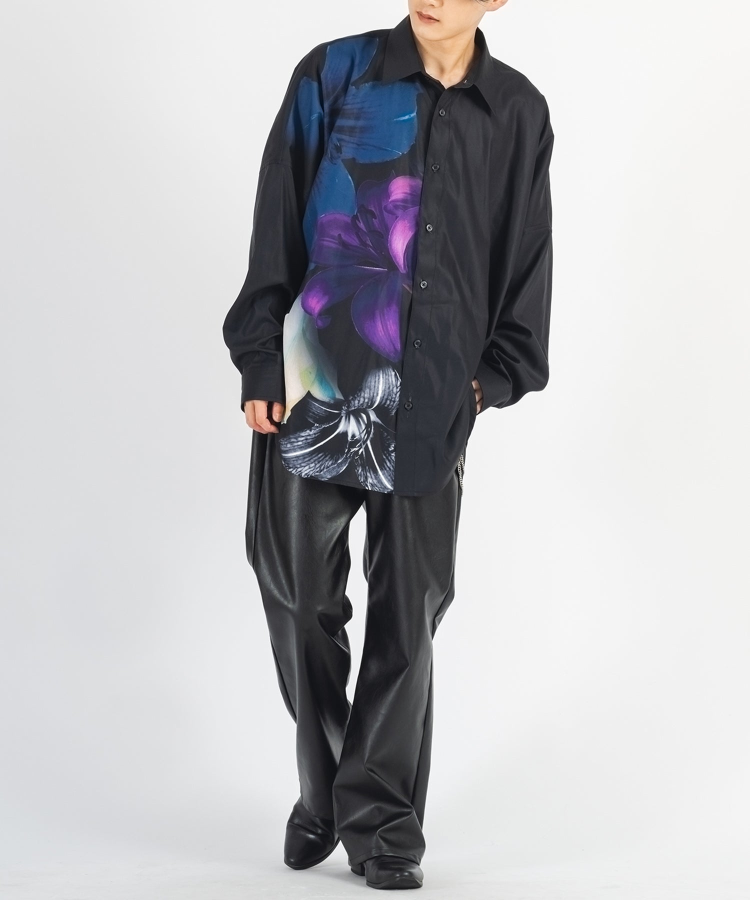 フラワープリントで切り替えたオーバーサイズのシャツです。