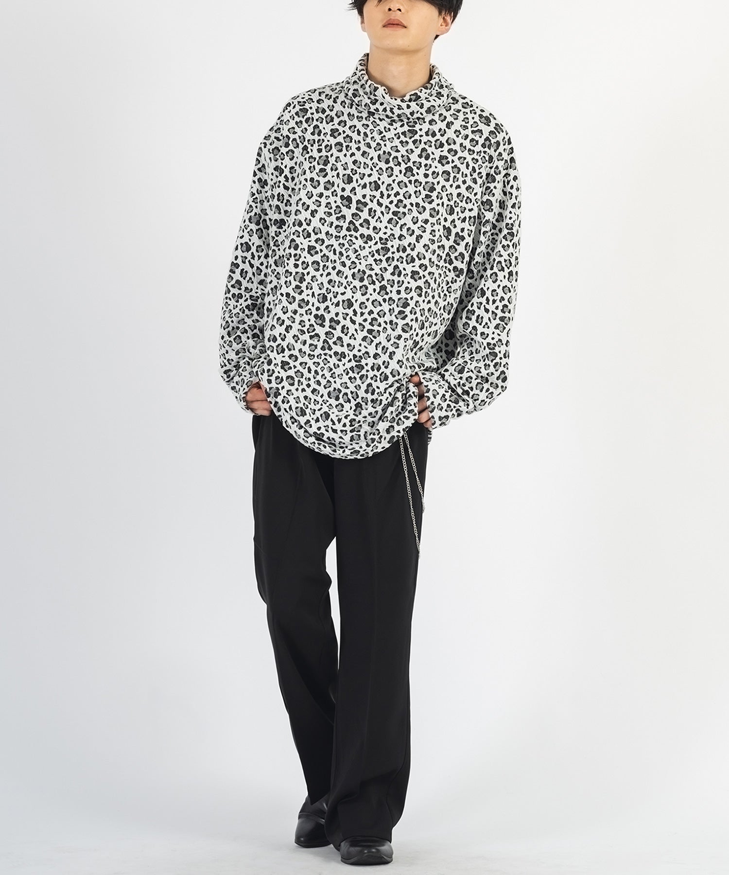 ヒョウ柄調のタートルネック長袖Tシャツです。