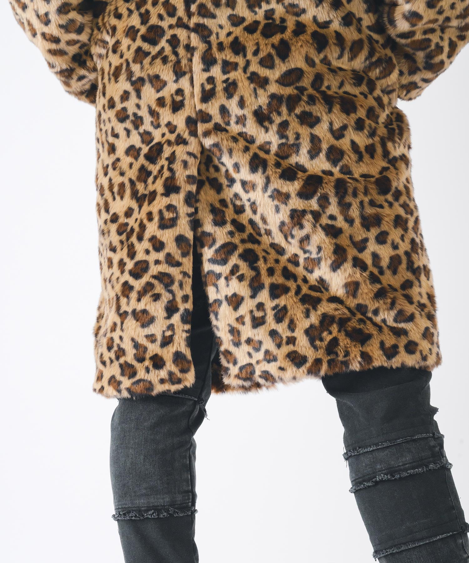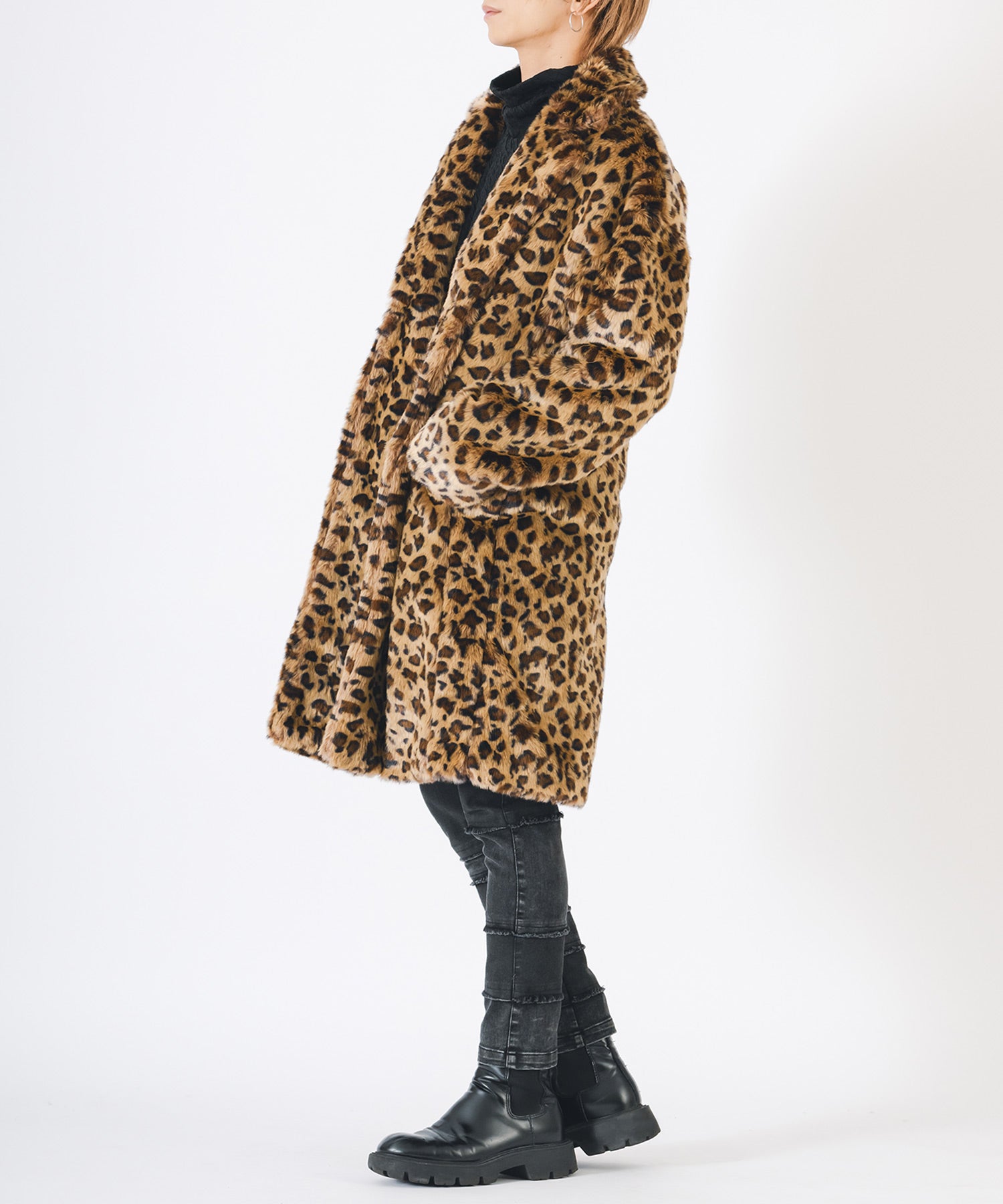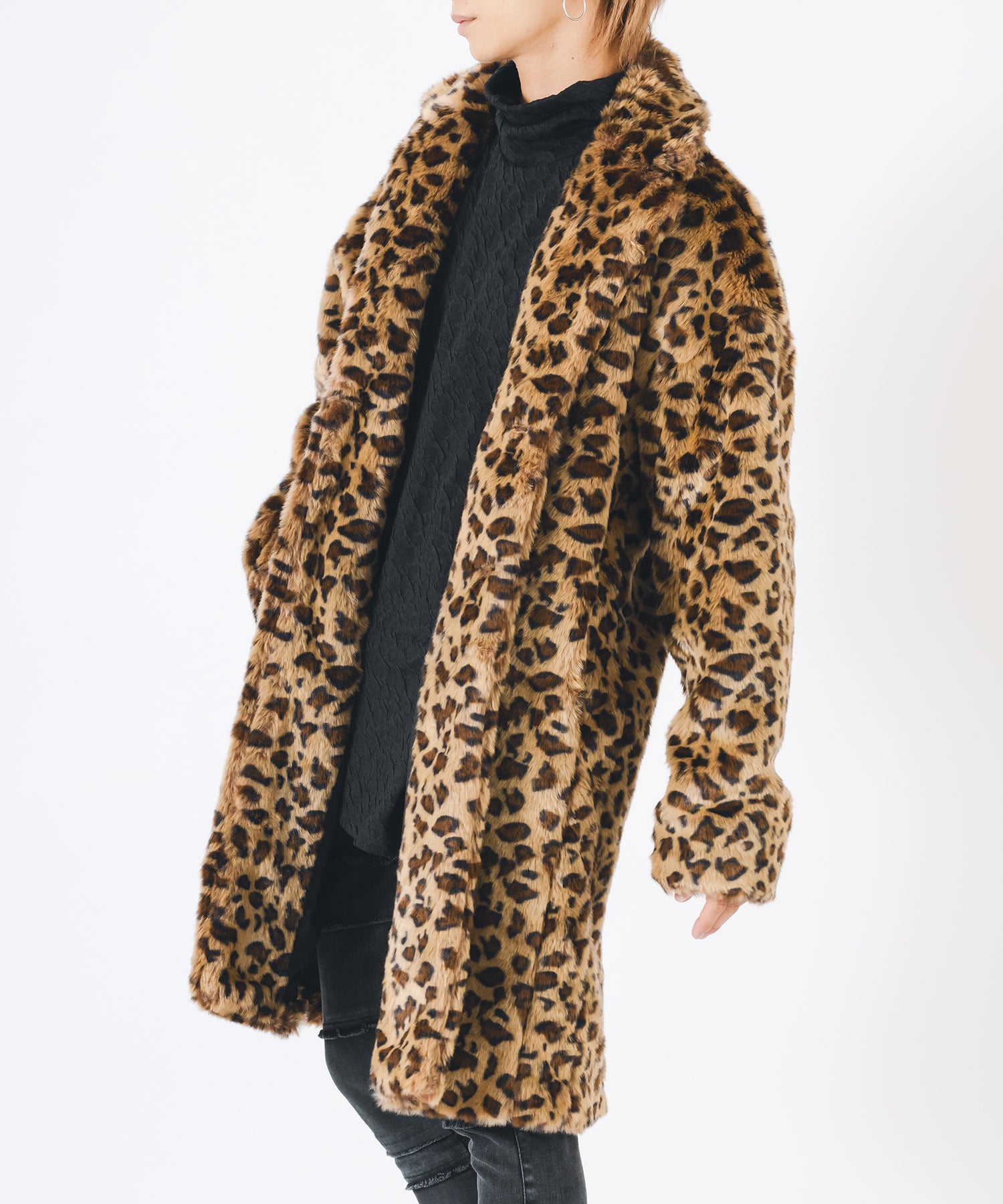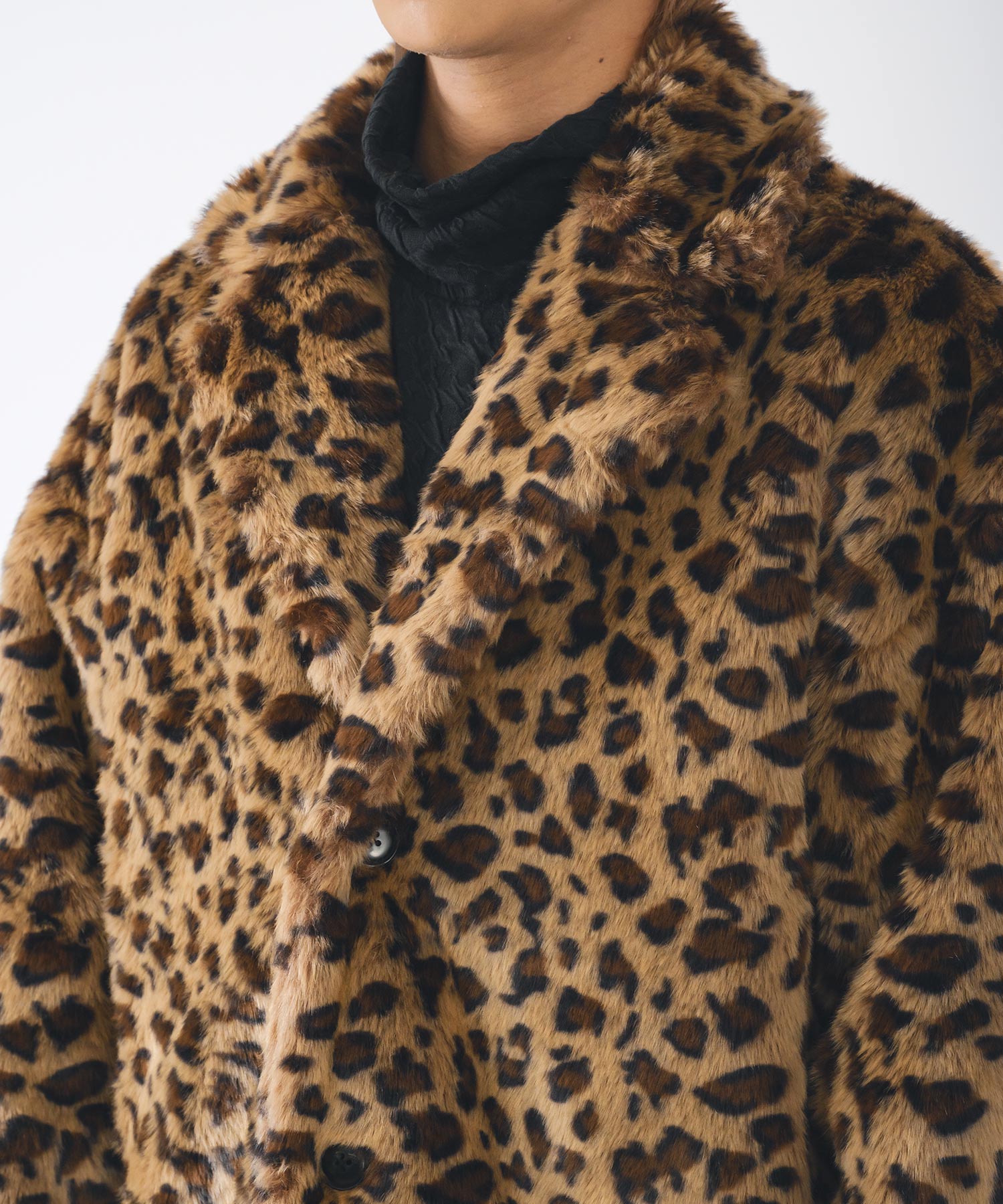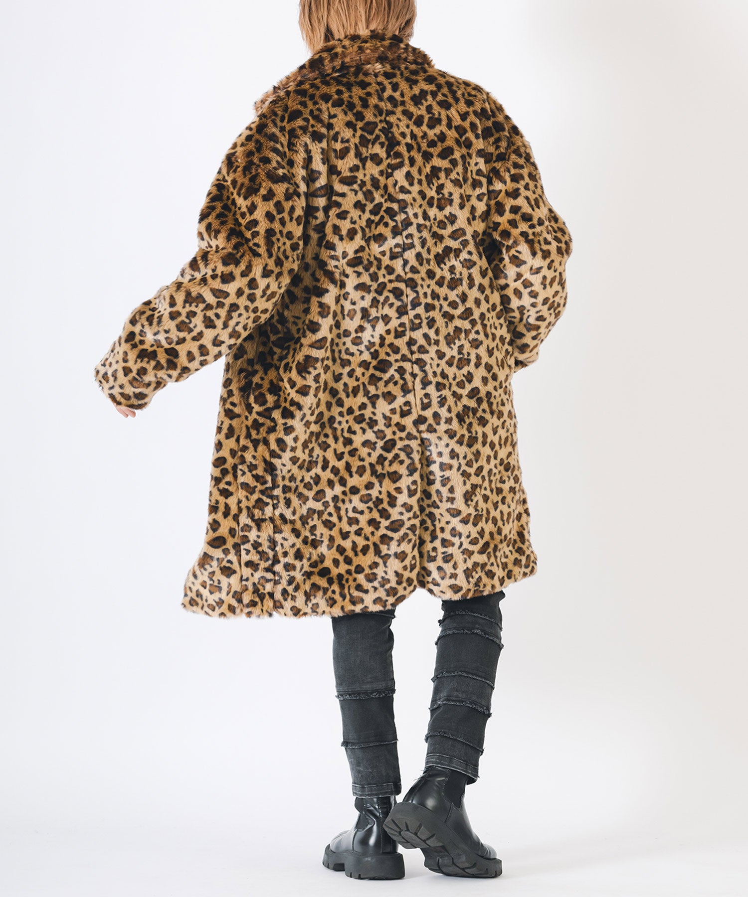 アニマル柄のファー素材を使用したオーバーコートです。