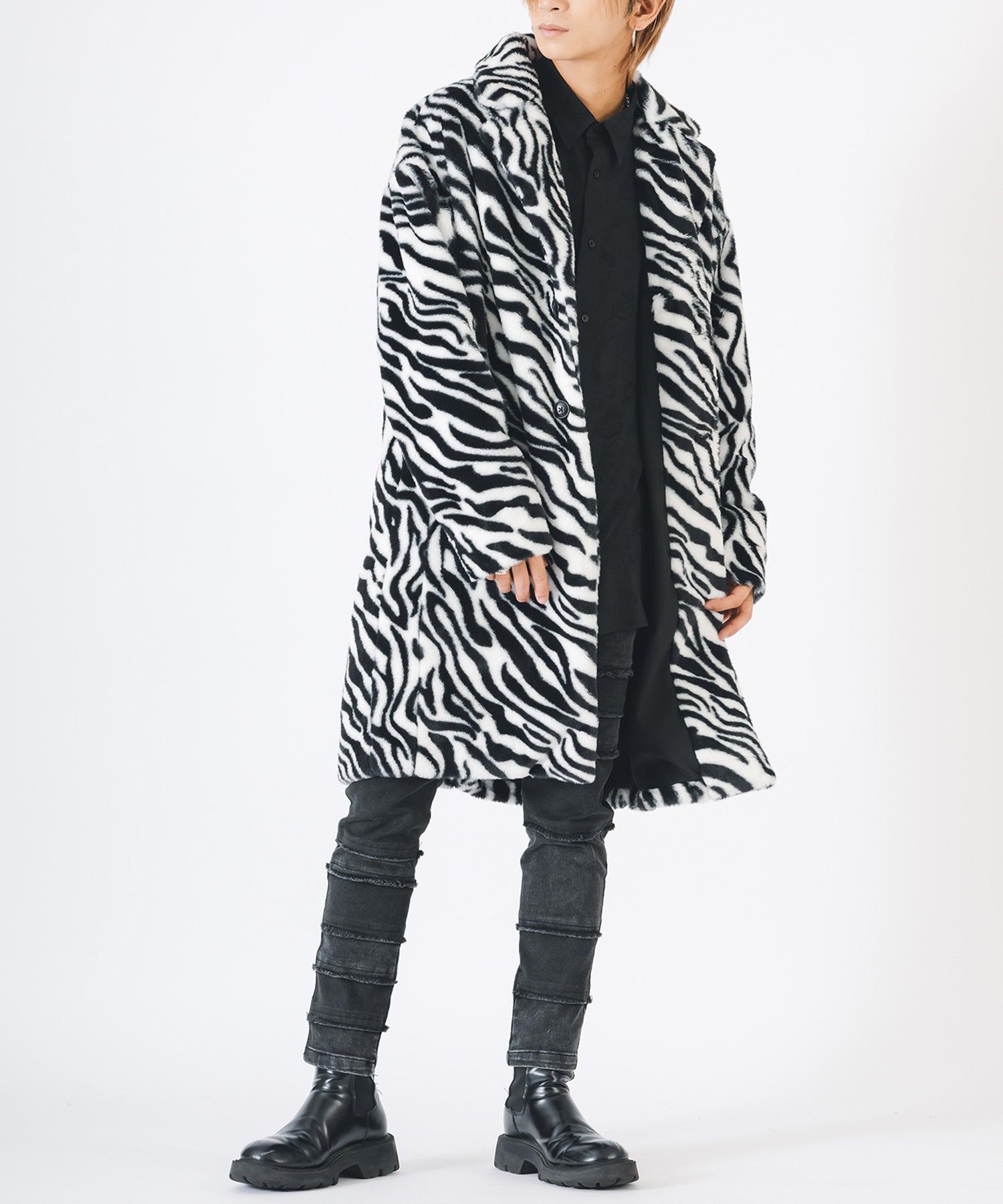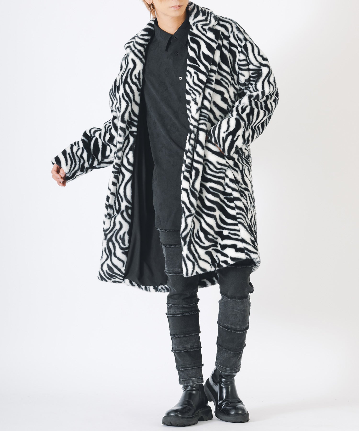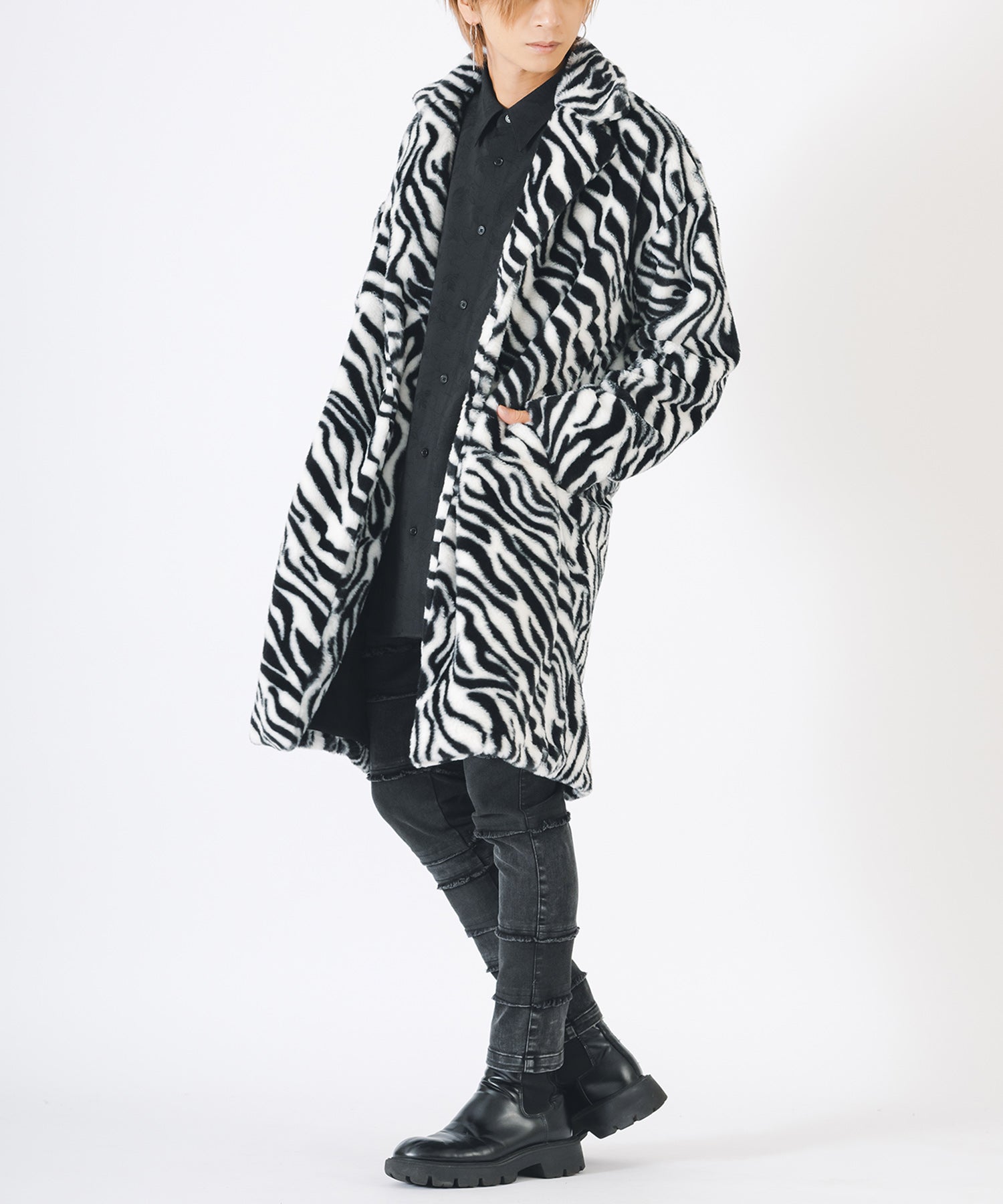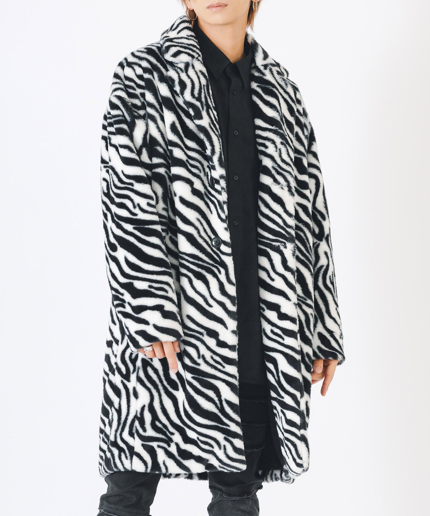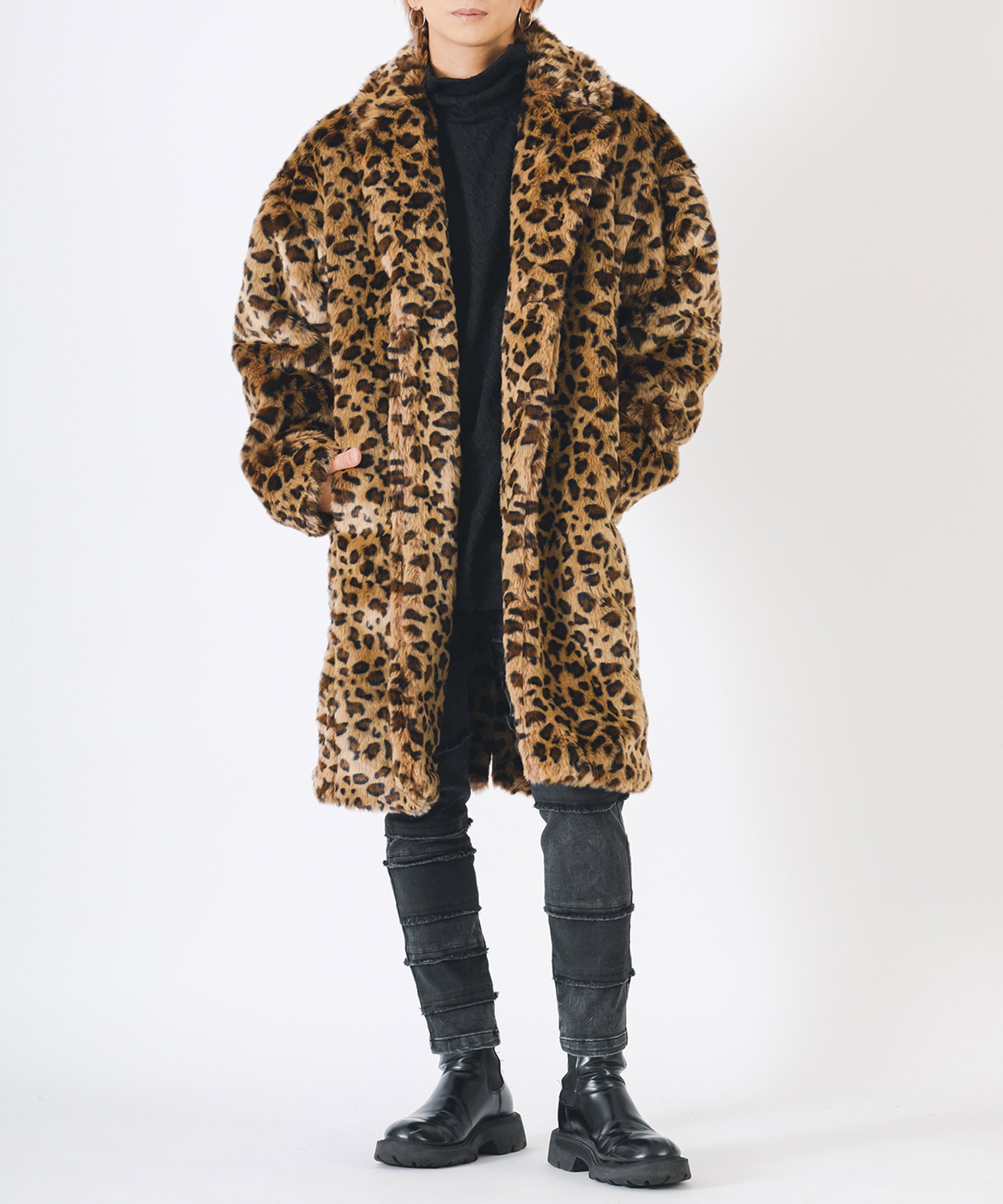 アニマル柄のファー素材を使用したオーバーコートです。