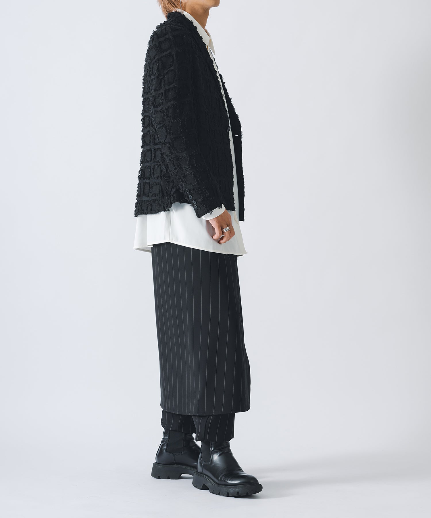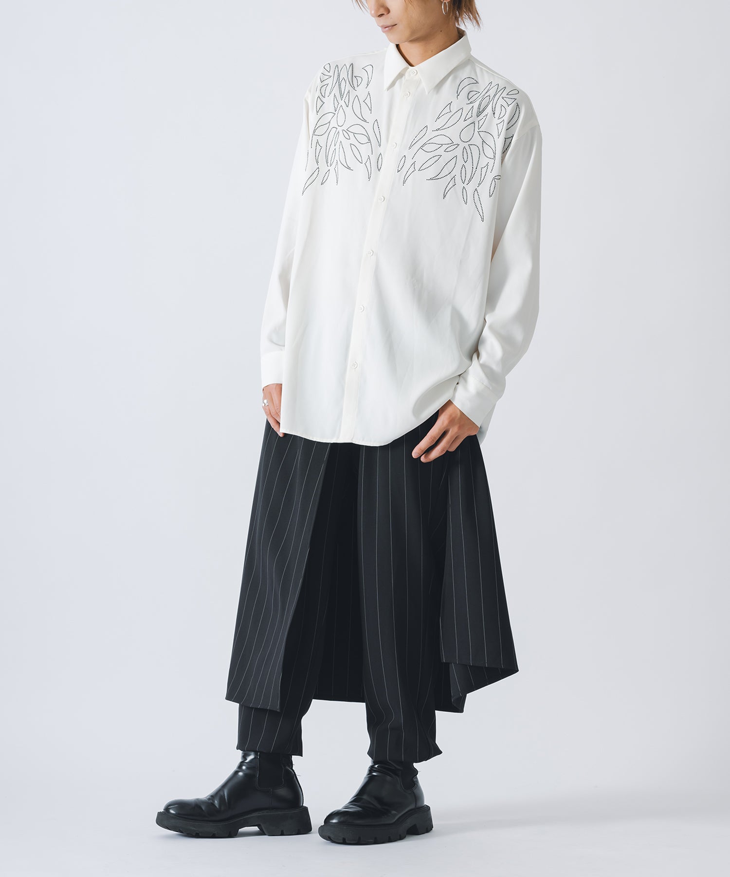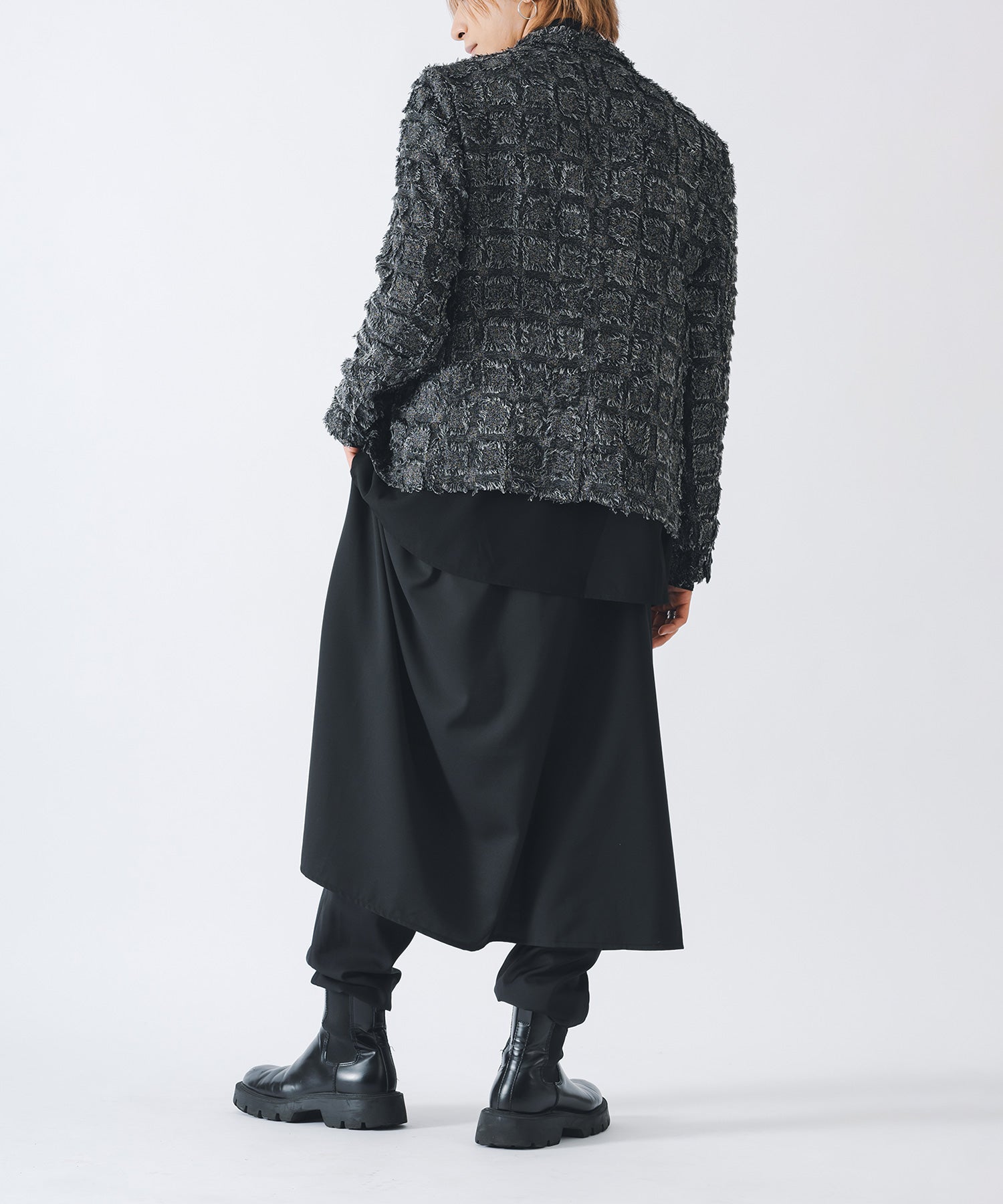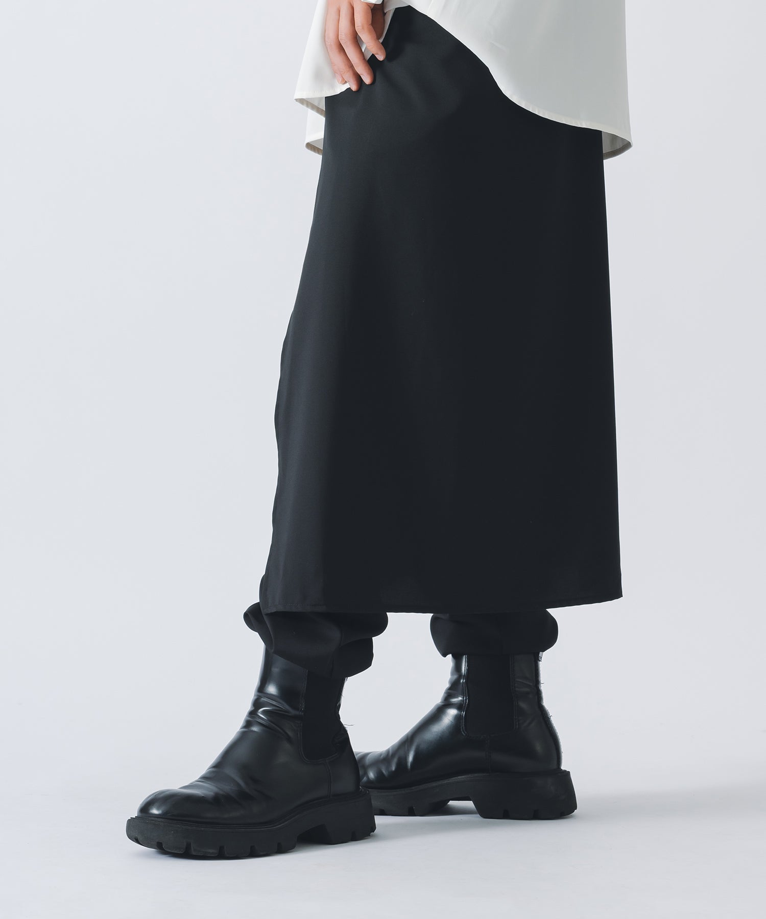レイヤードしたスカート部分が絶妙なシルエットを表現し全体のコーディネイトを引き立てます。